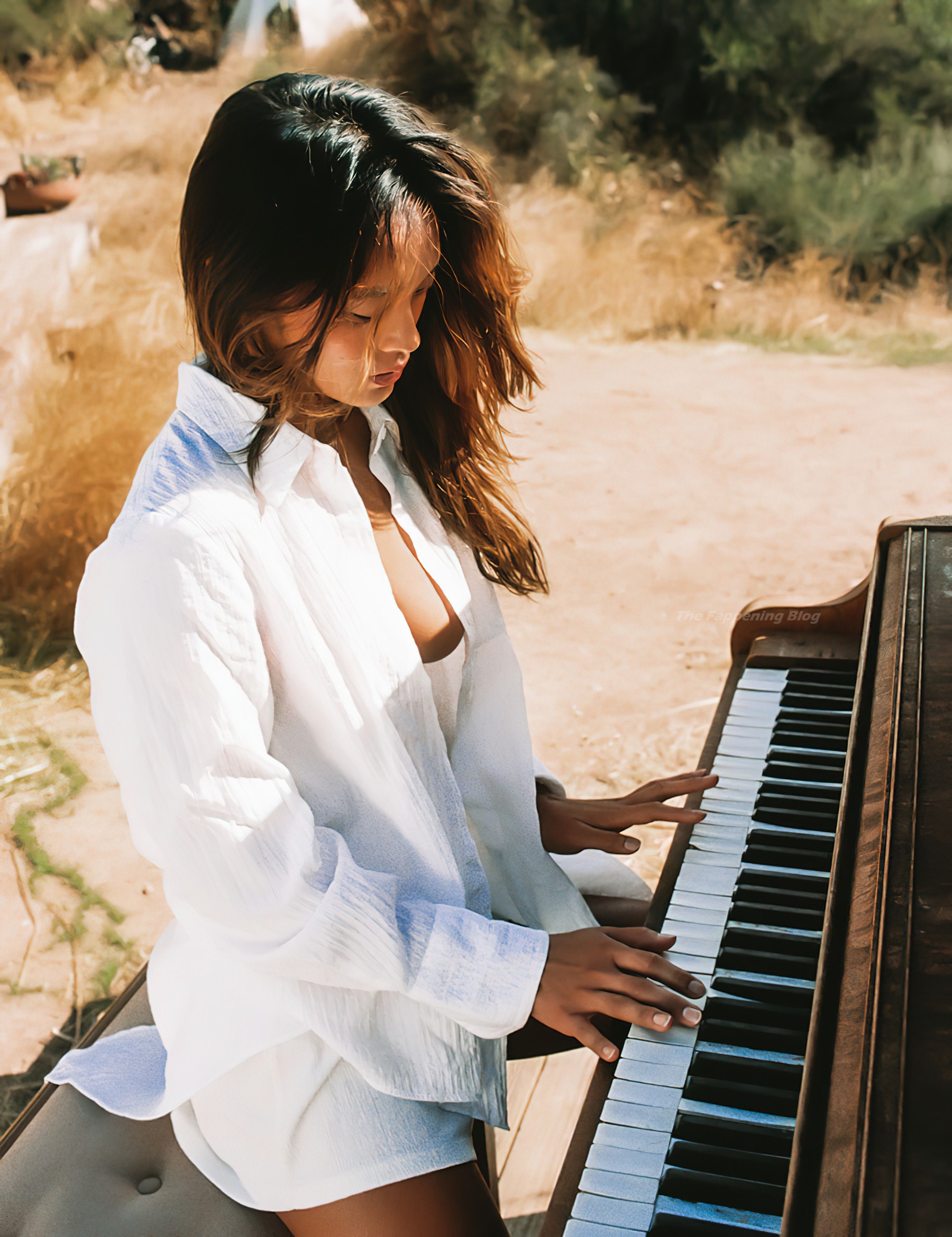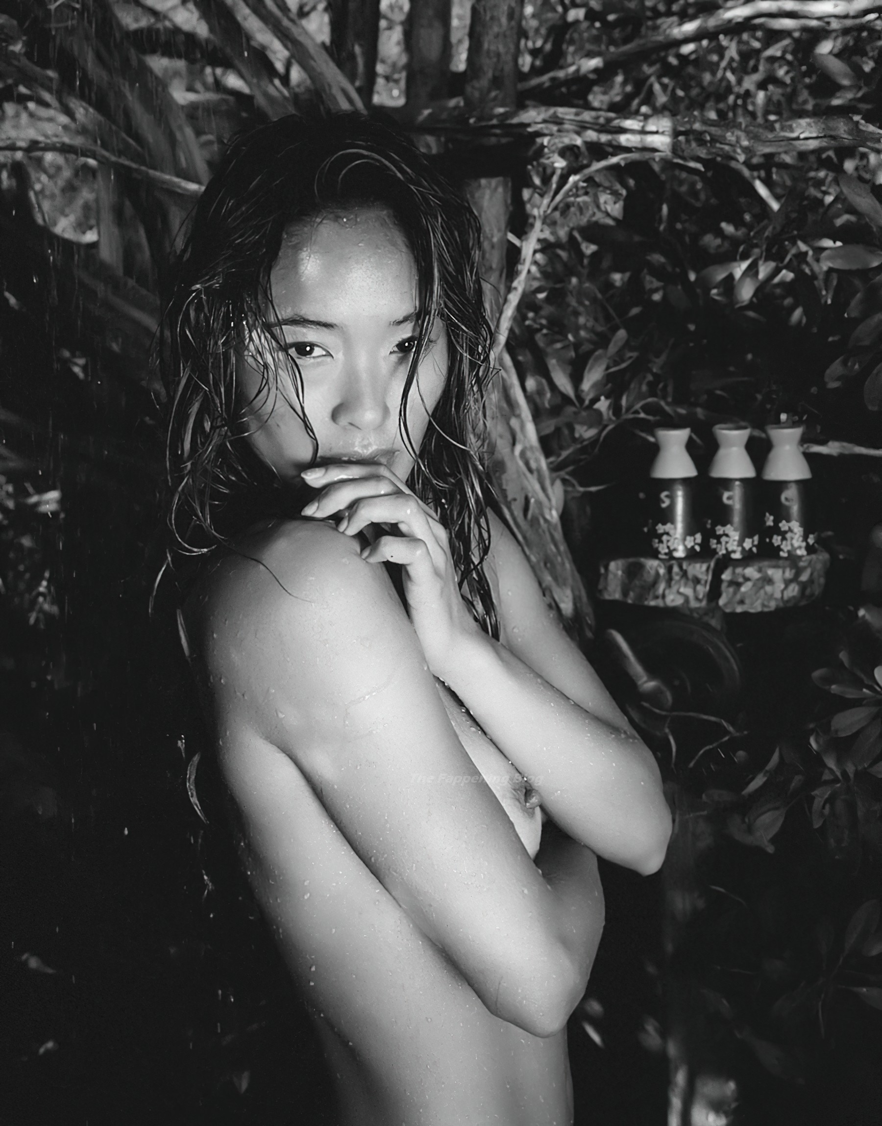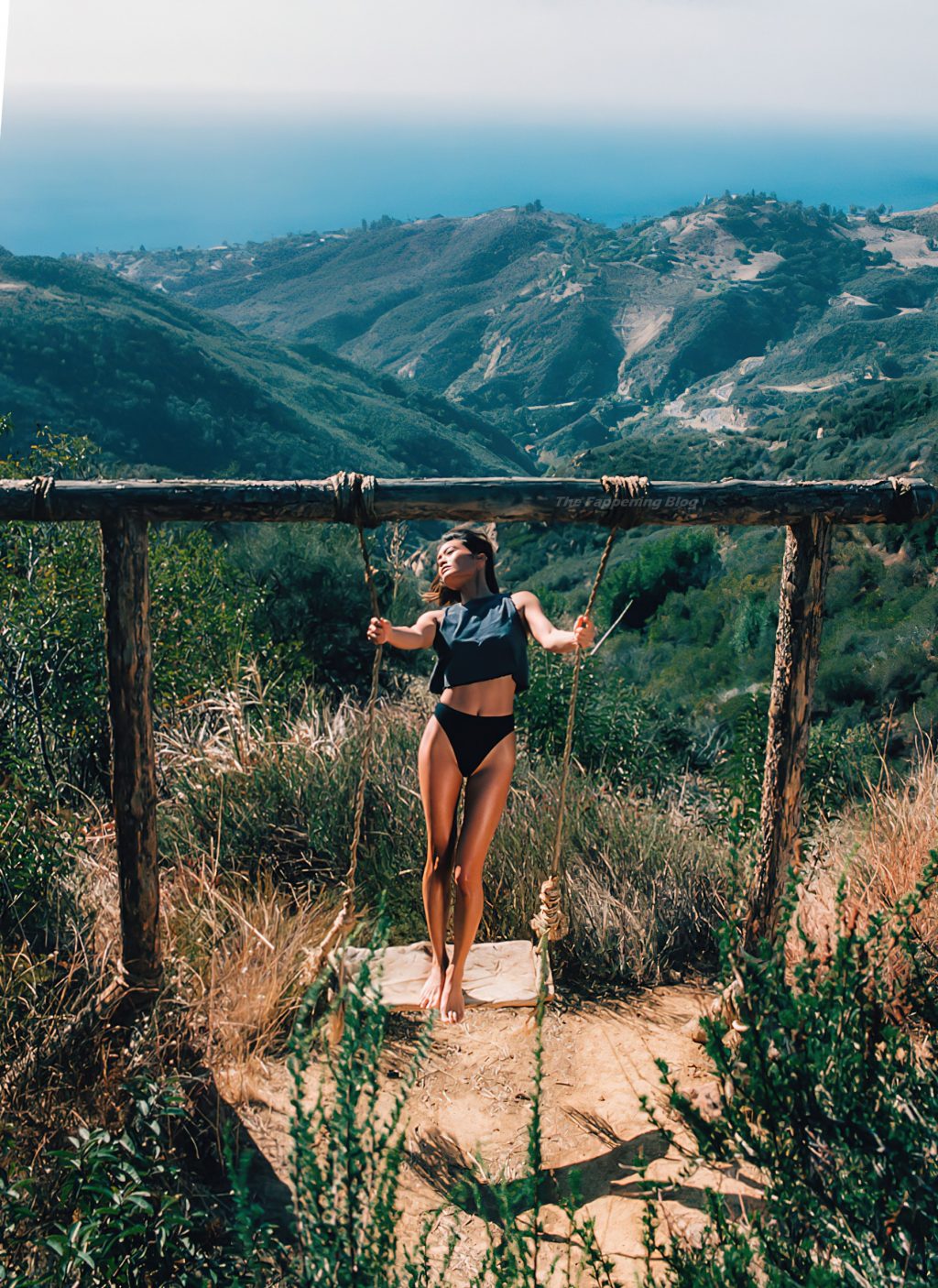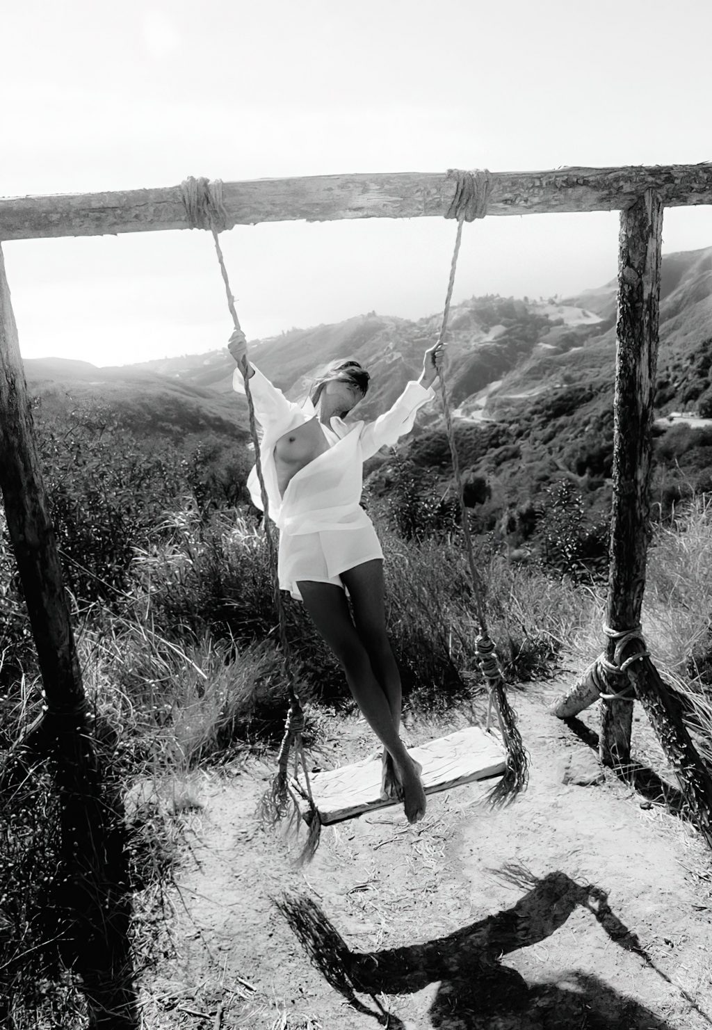 Модель в бикини Джарах Мариано позирует топлес на улице, демонстрируя свои впечатляющие обнажённые груди в фотосессии Джонатана Зауи (2021).