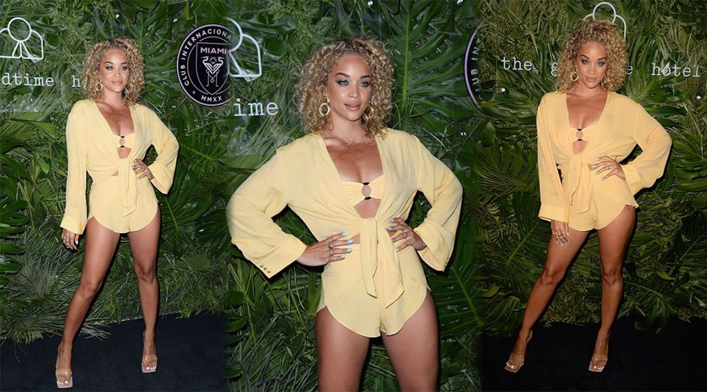 Модель Джазмин Сандерс надела короткие шорты, которые полностью открывали её впечатляюще стройные ноги на вечеринке.