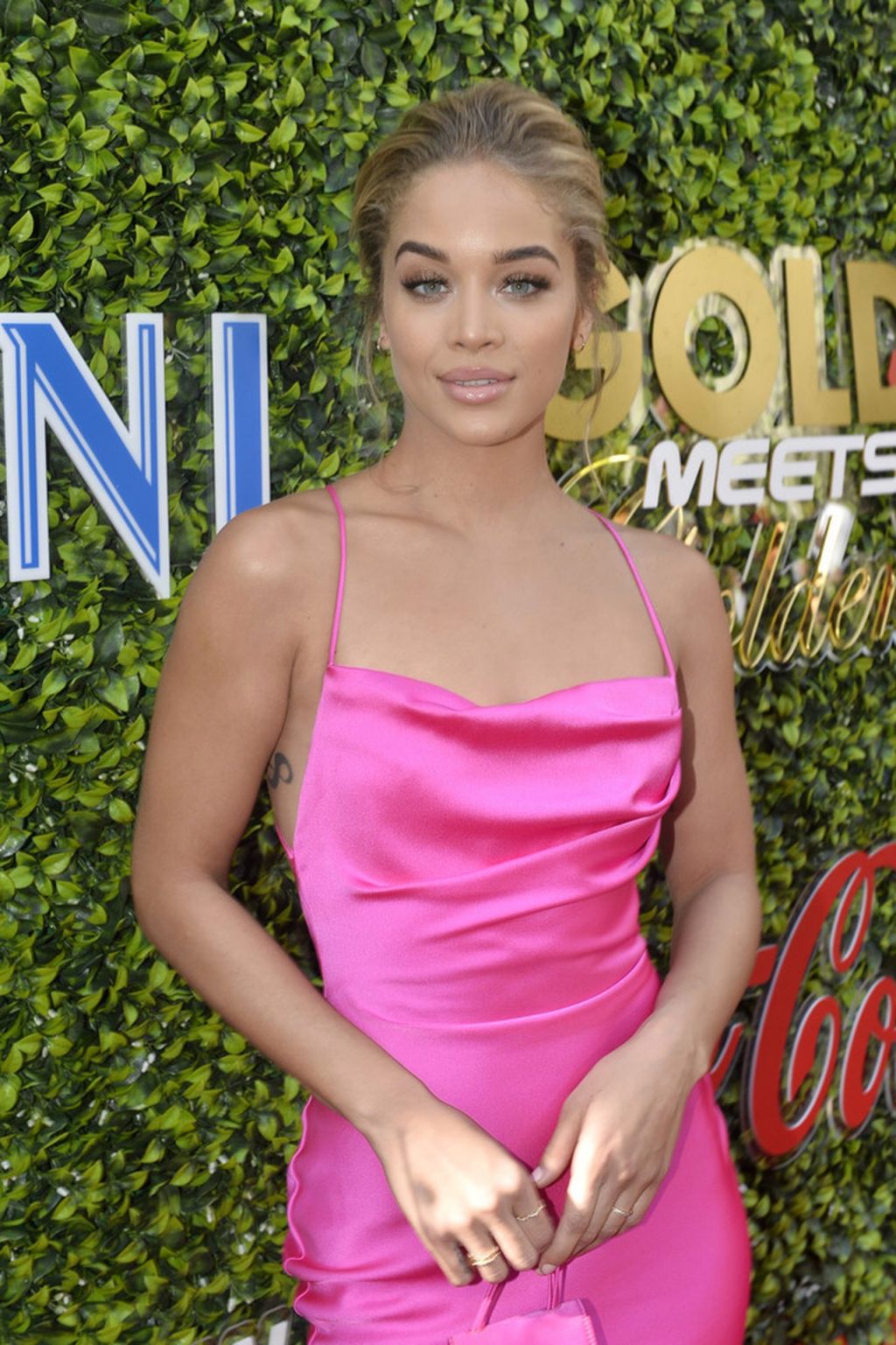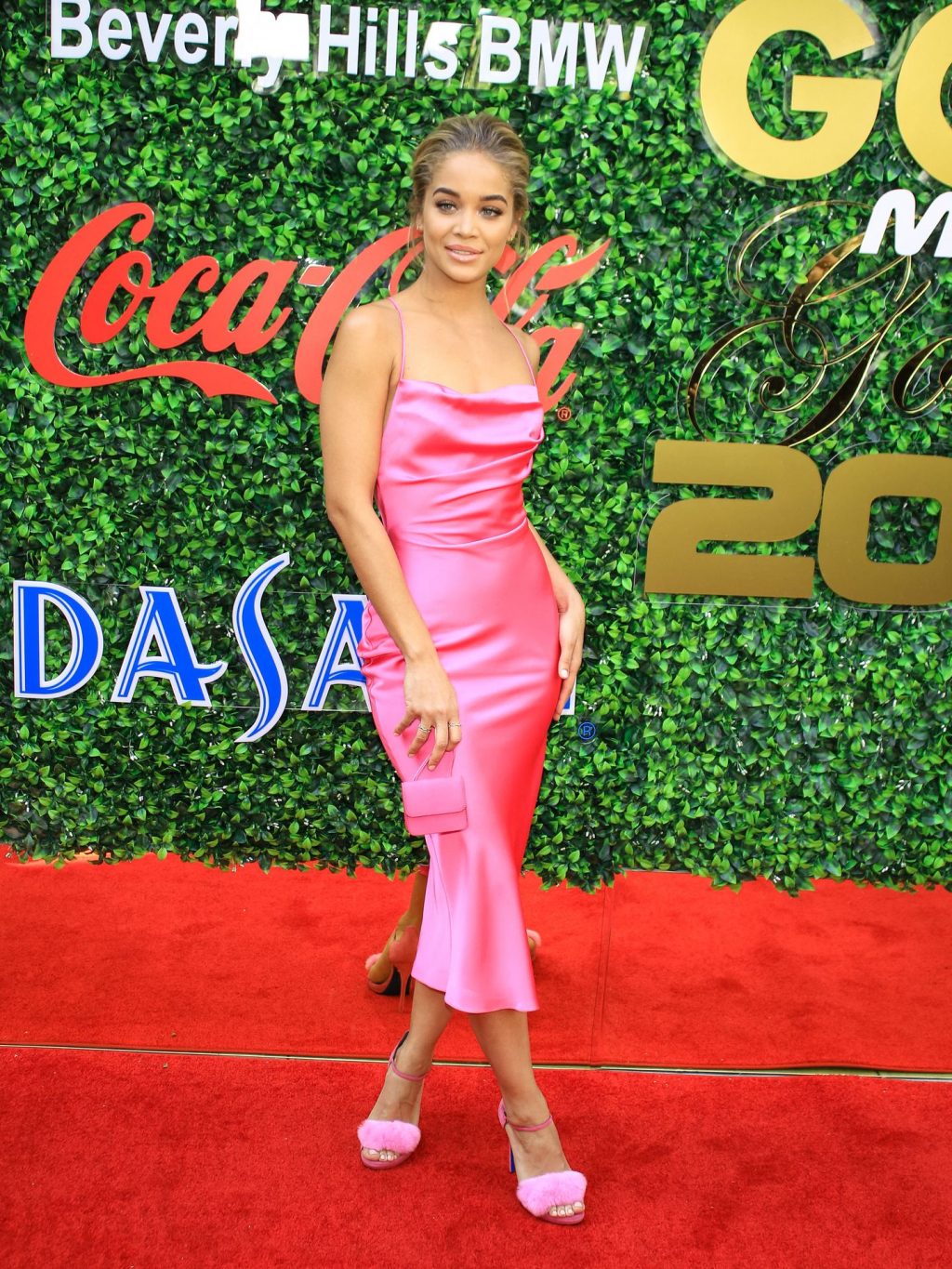 Модель Джазмин “Золотая Барби” Сандерс была сфотографирована в розовом платье на красной дорожке 7-й ежегодной церемонии Gold Meets Golden в Лос-Анджелесе, 01.04.2020.