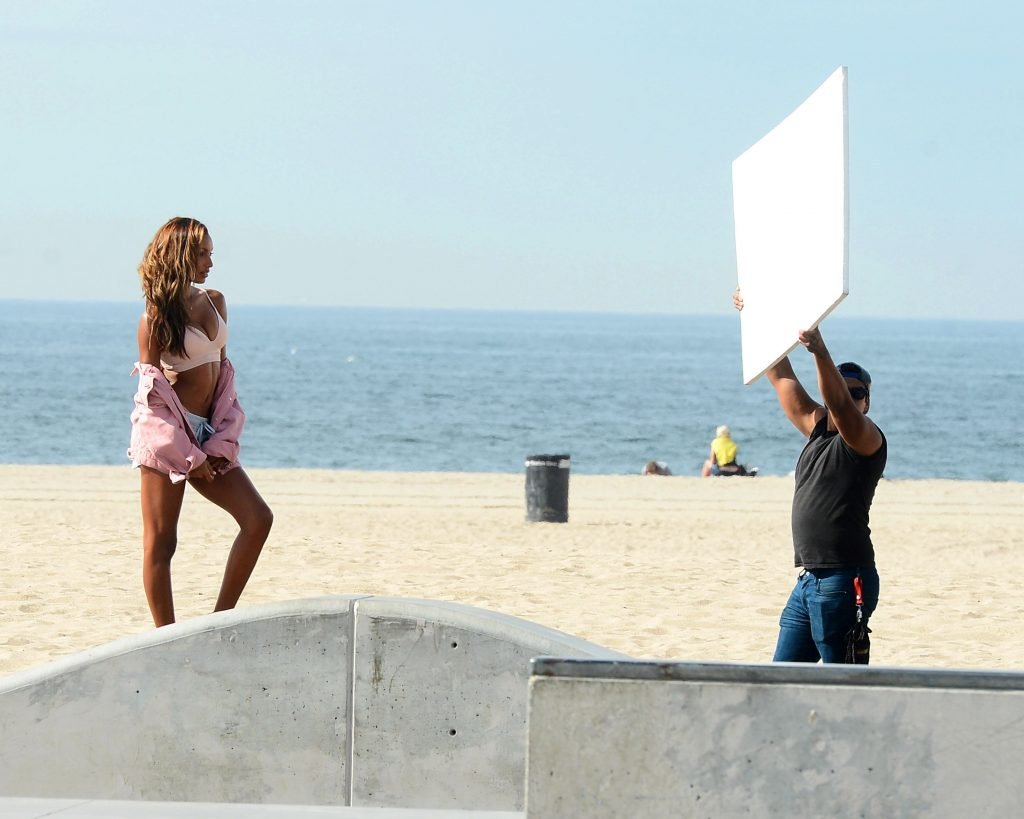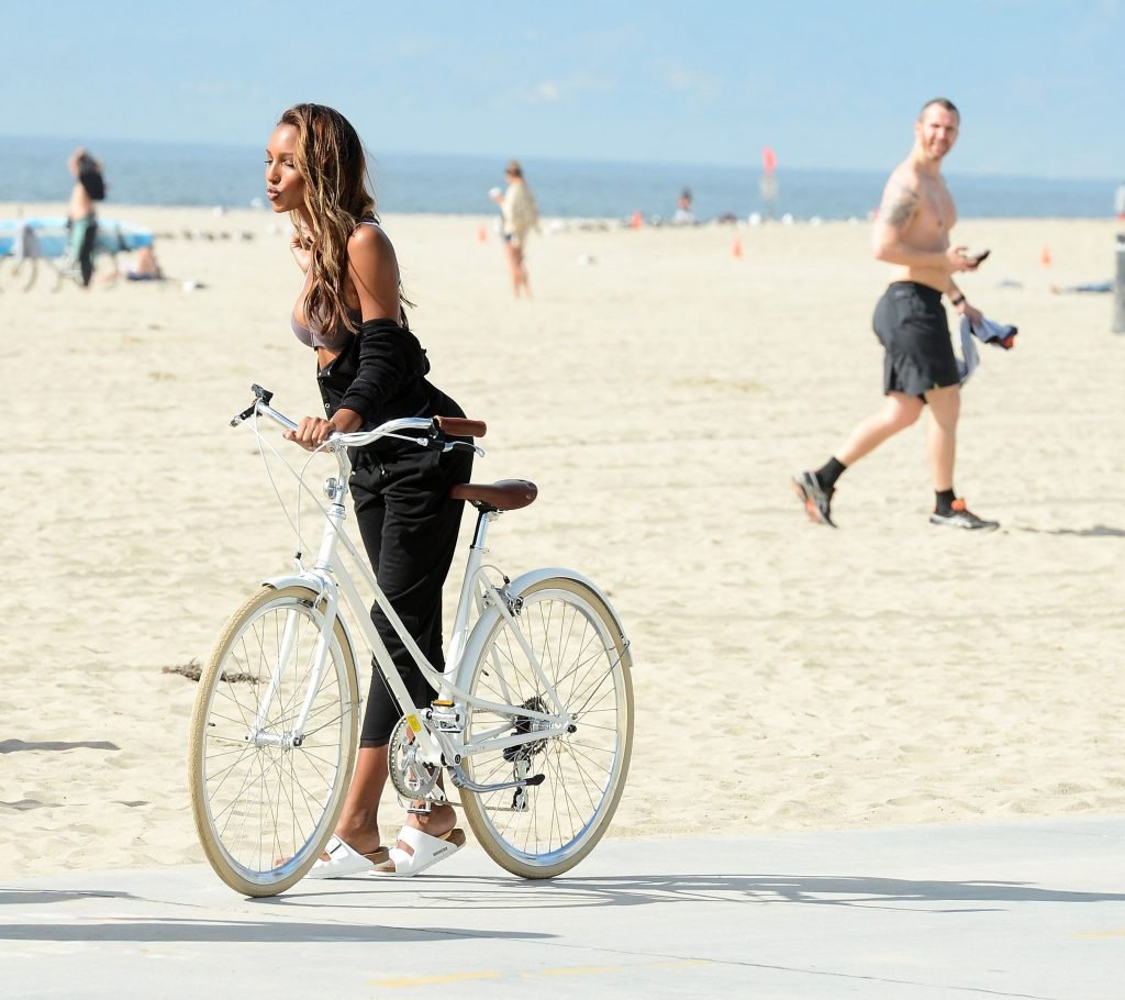 Модель Джазмин Тукес, 26 лет, позирует для Victoria Secret Sport на Venice Beach, 07.11.2017.