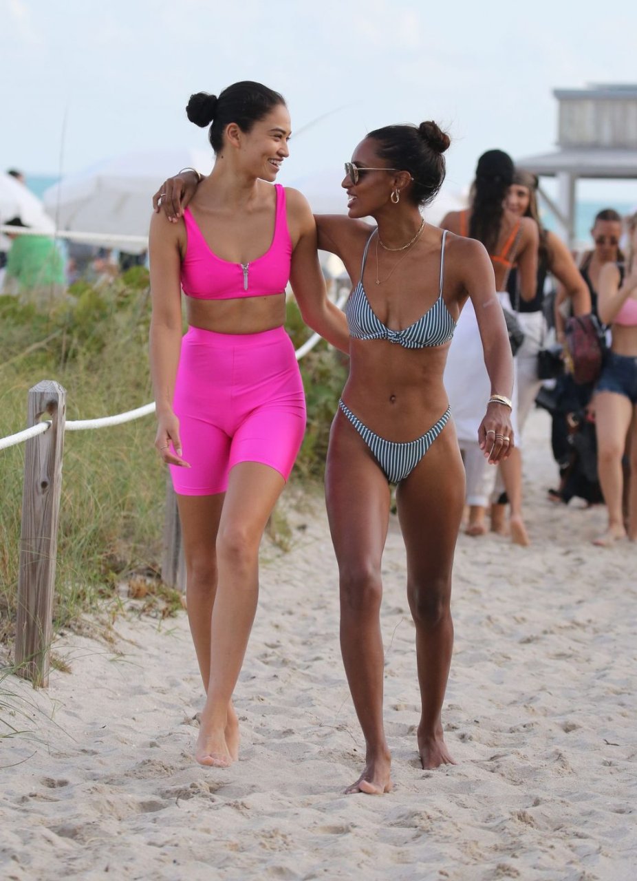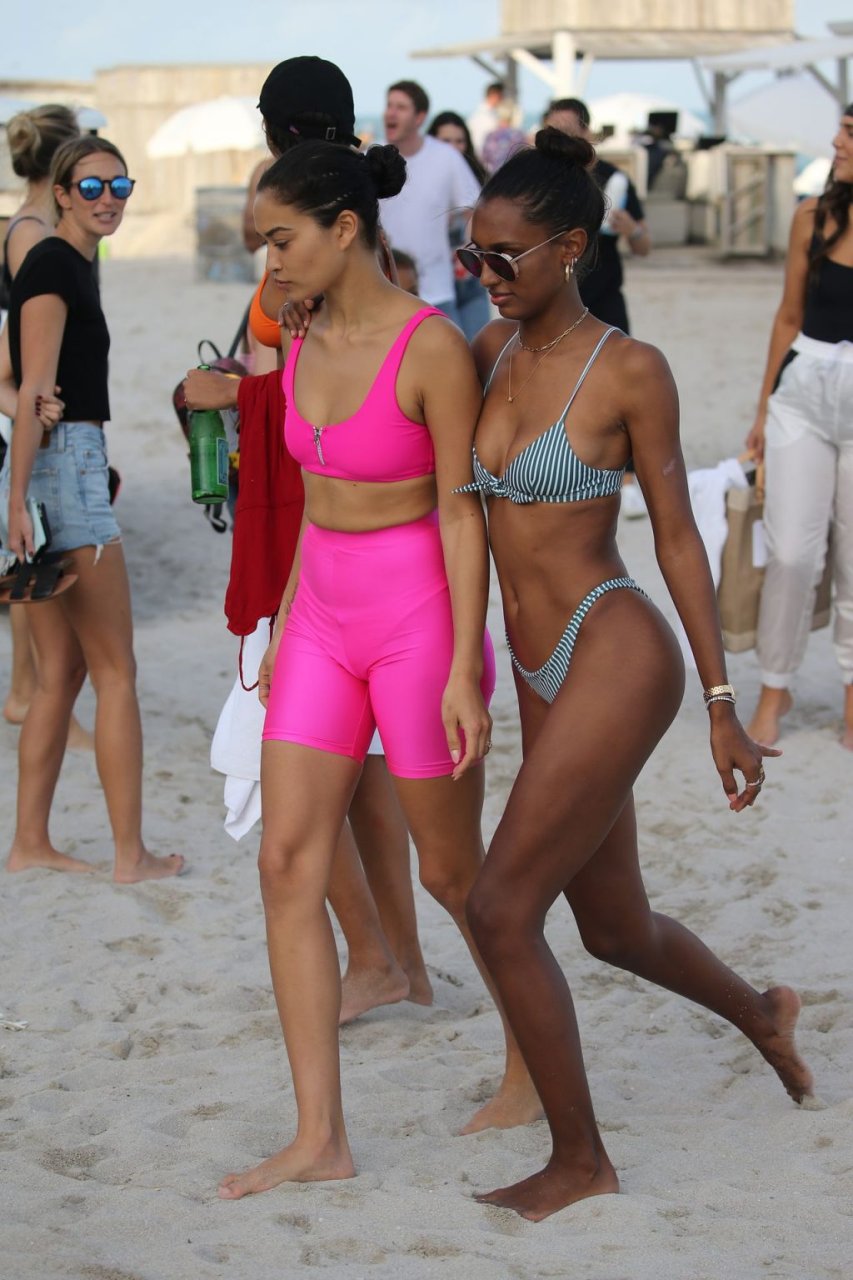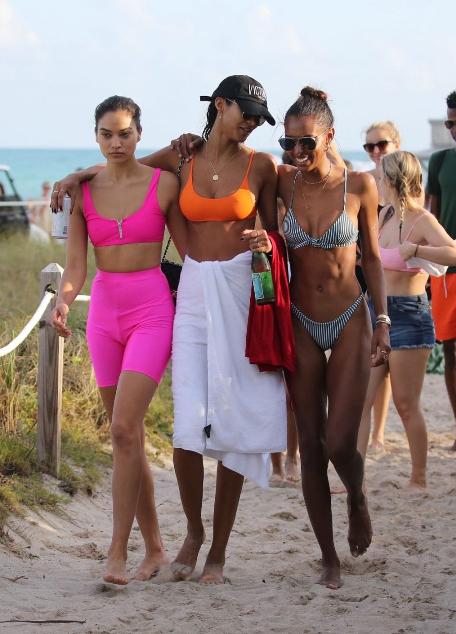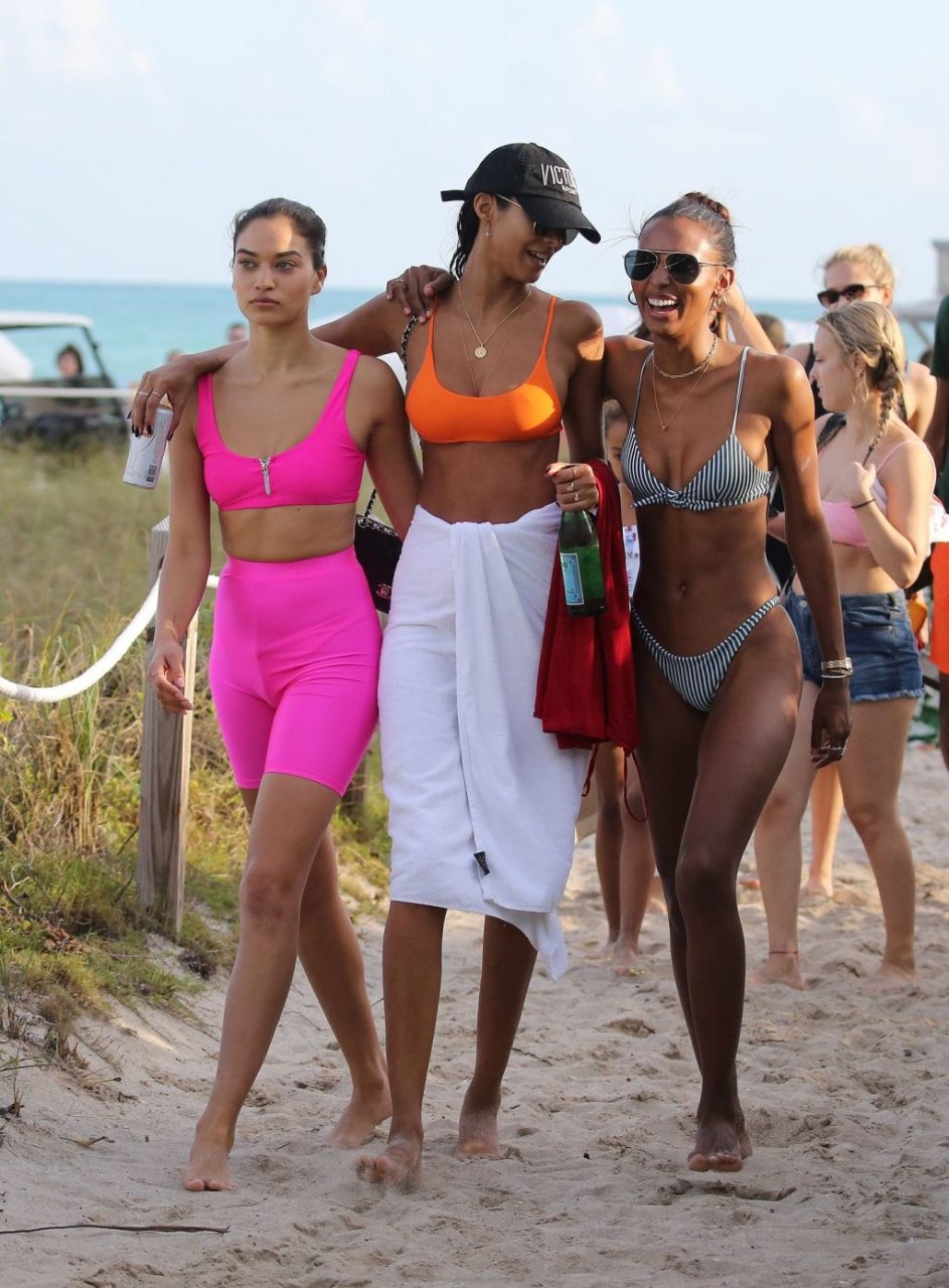 Модели Victoria’s Secret Джасмин Тукес, Шанина Шейк и Лаис Рибейро устроили пляжную вечеринку в бикини в Майами, чтобы отпраздновать день рождения Джасмин, 01.02.2019.