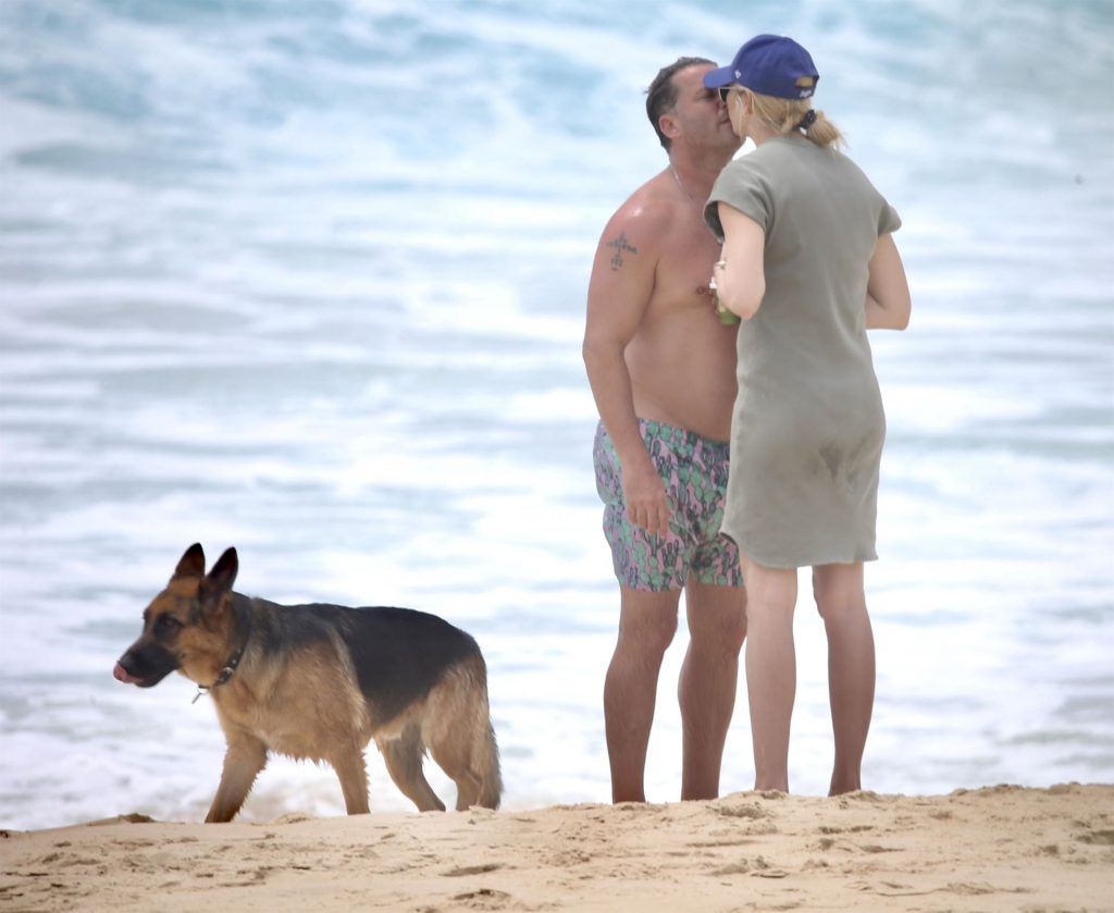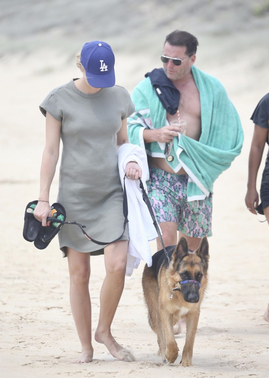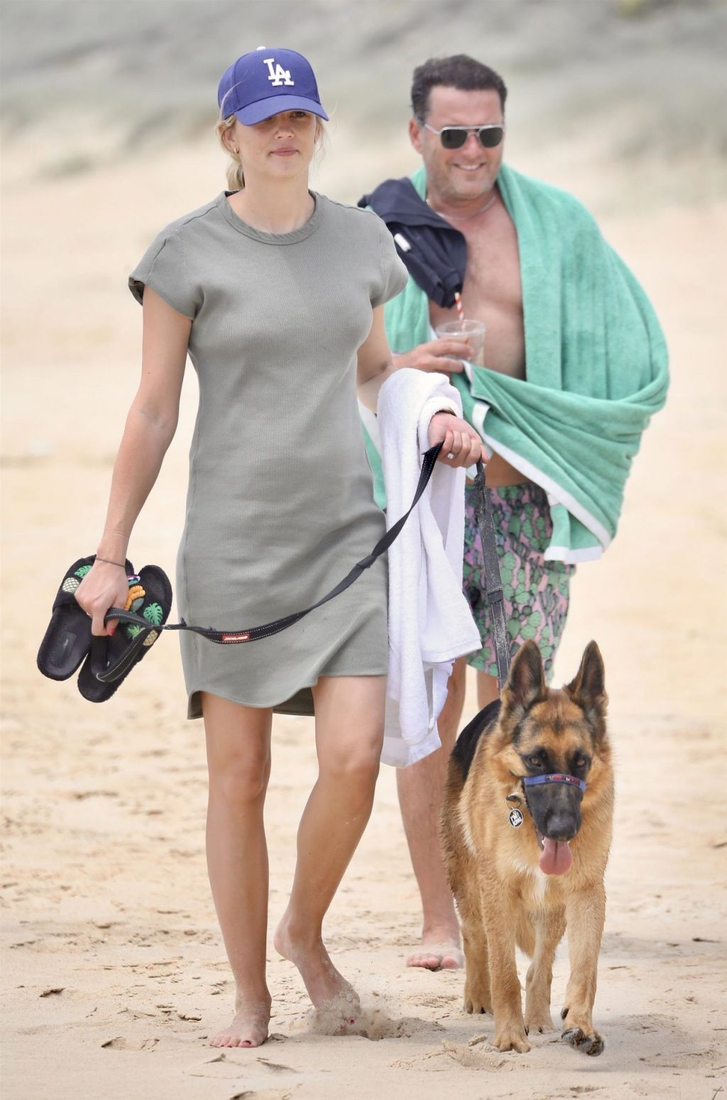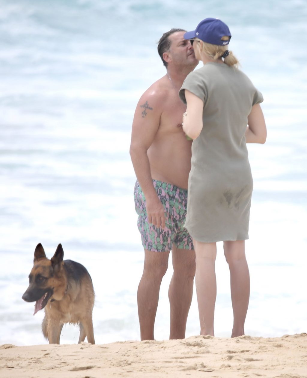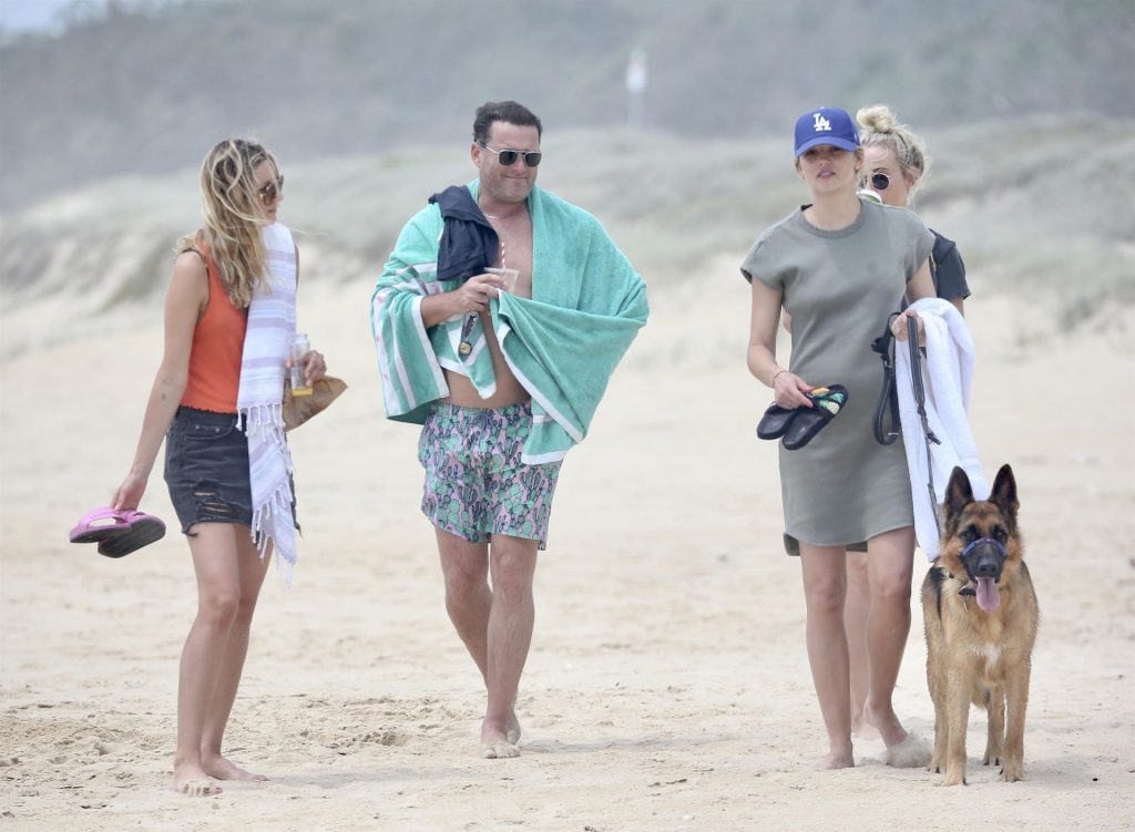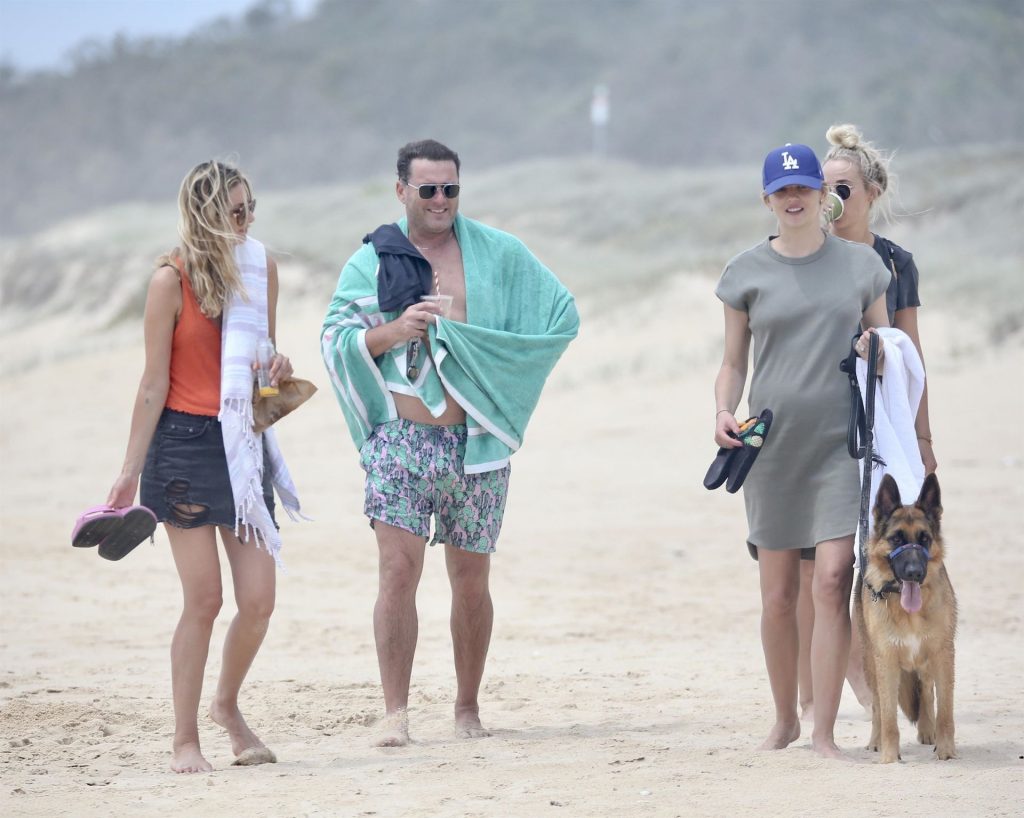 Karl Stefanovic и Jasmine Yarbrough наслаждаются днем на пляже в Нусе, 30.12.2019. Ясмин демонстрировала свой животик в облегающем зеленом платье, Карл, похоже, избавился от большого живота.