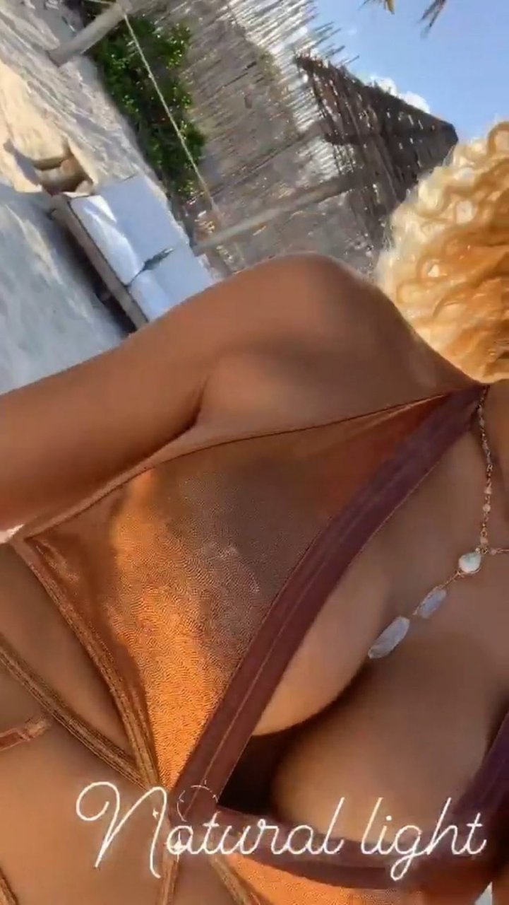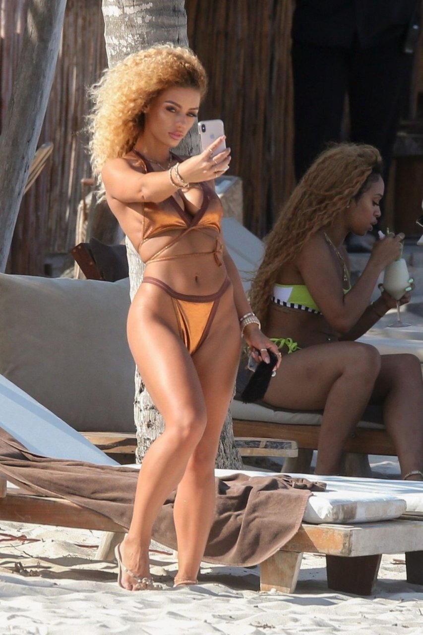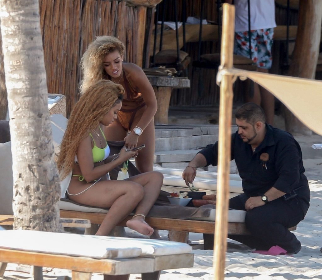 Джена Фрумс делает селфи, отдыхая с Джилли Анаис на пляже в Тулуме, Мексика, 01.05.2019. Ютуберы демонстрируют свои тела в бикини, потягивая напитки на солнце во время совместного отпуска.