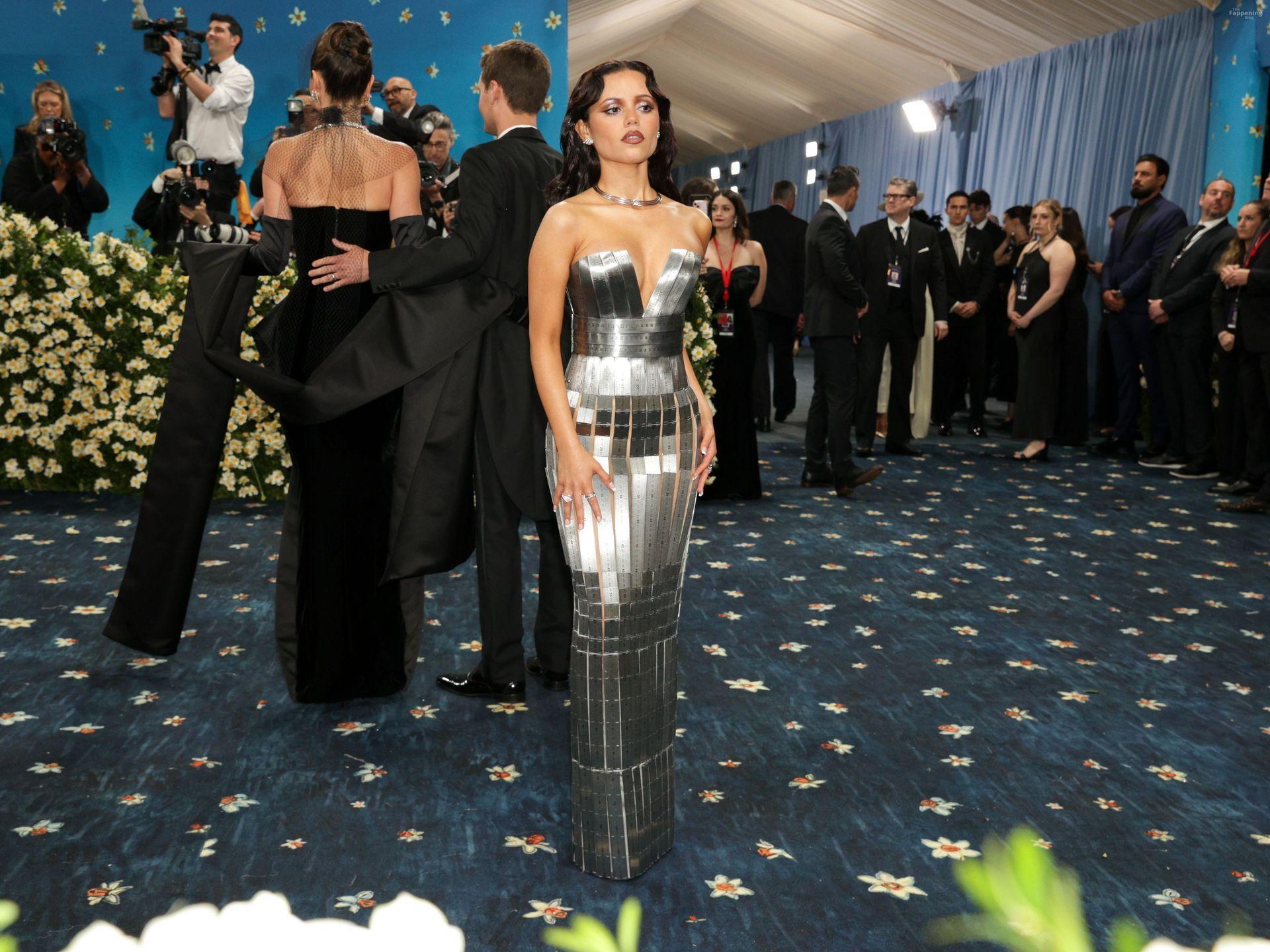 Дженна Ортега появилась на Met Gala 2025 в серебряном металлическом платье с глубоким декольте, эффектно демонстрируя свою сексуальность. Американская актриса приехала в Музей искусств Метрополитен 5 мая 2025 года в Нью-Йорке.