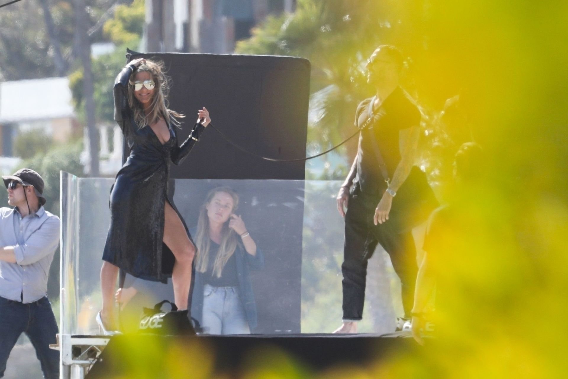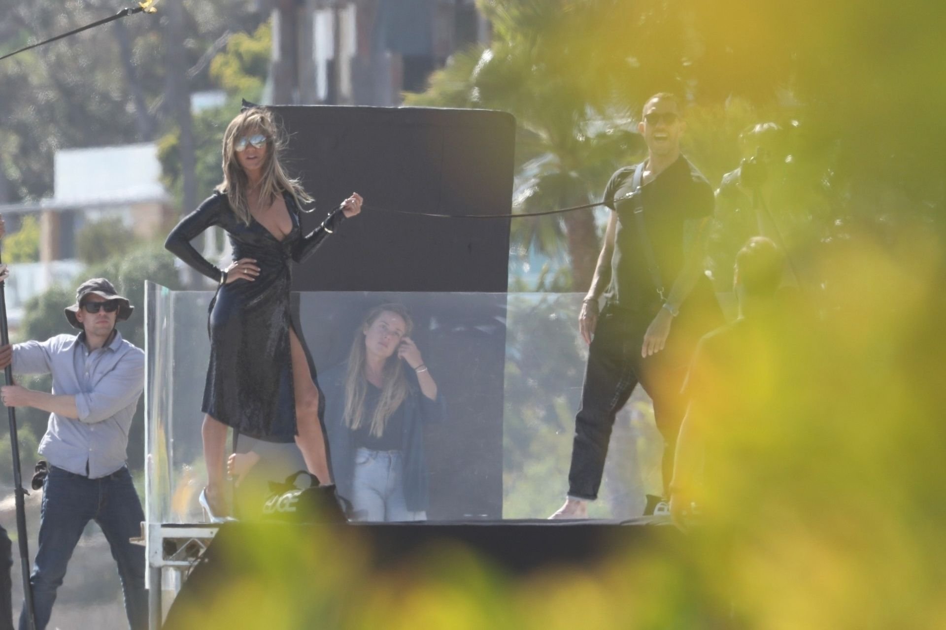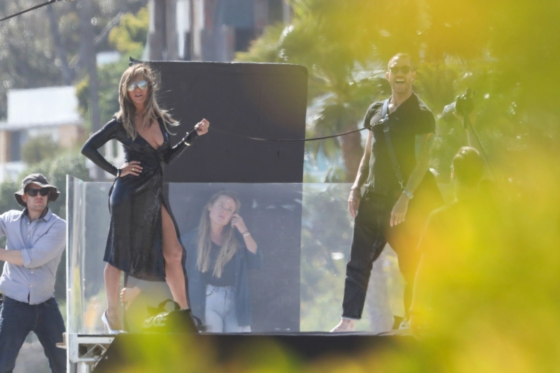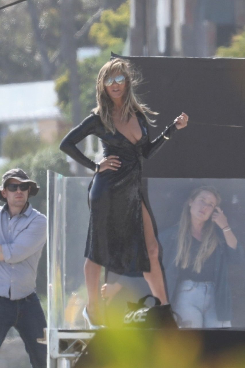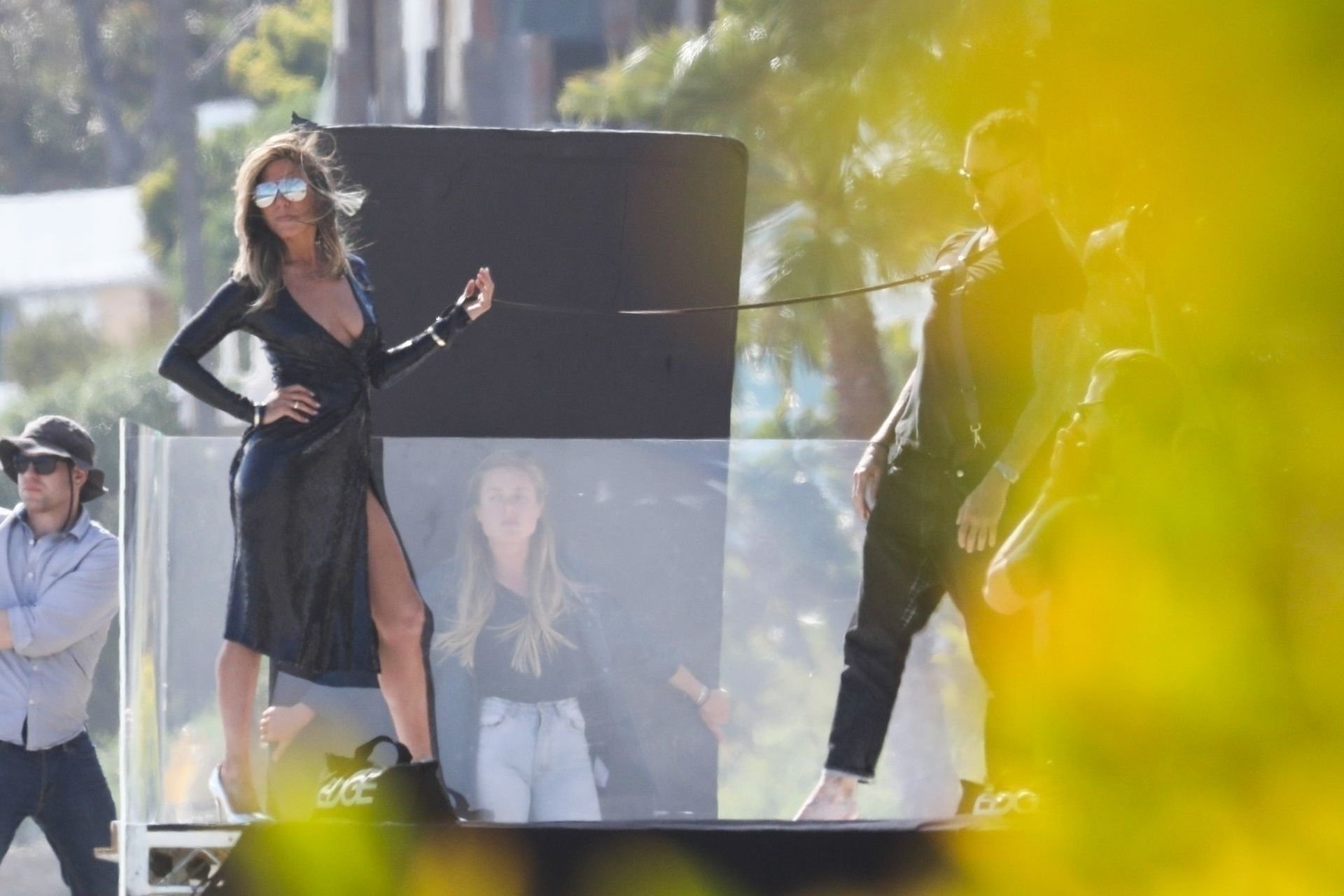 Дженнифер Энистон позирует для сексуальной фотосессии на пляже в Малибу, 27.03.2019. Энистон позировала с собакой в откровенном черном латексном платье с глубоким вырезом, а затем надела другое черное платье, которое также имело глубокий вырез.