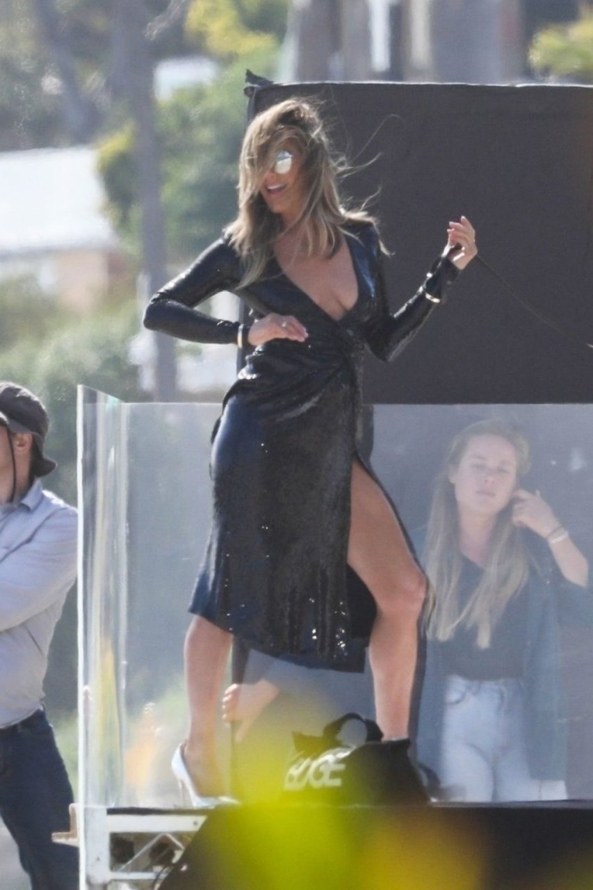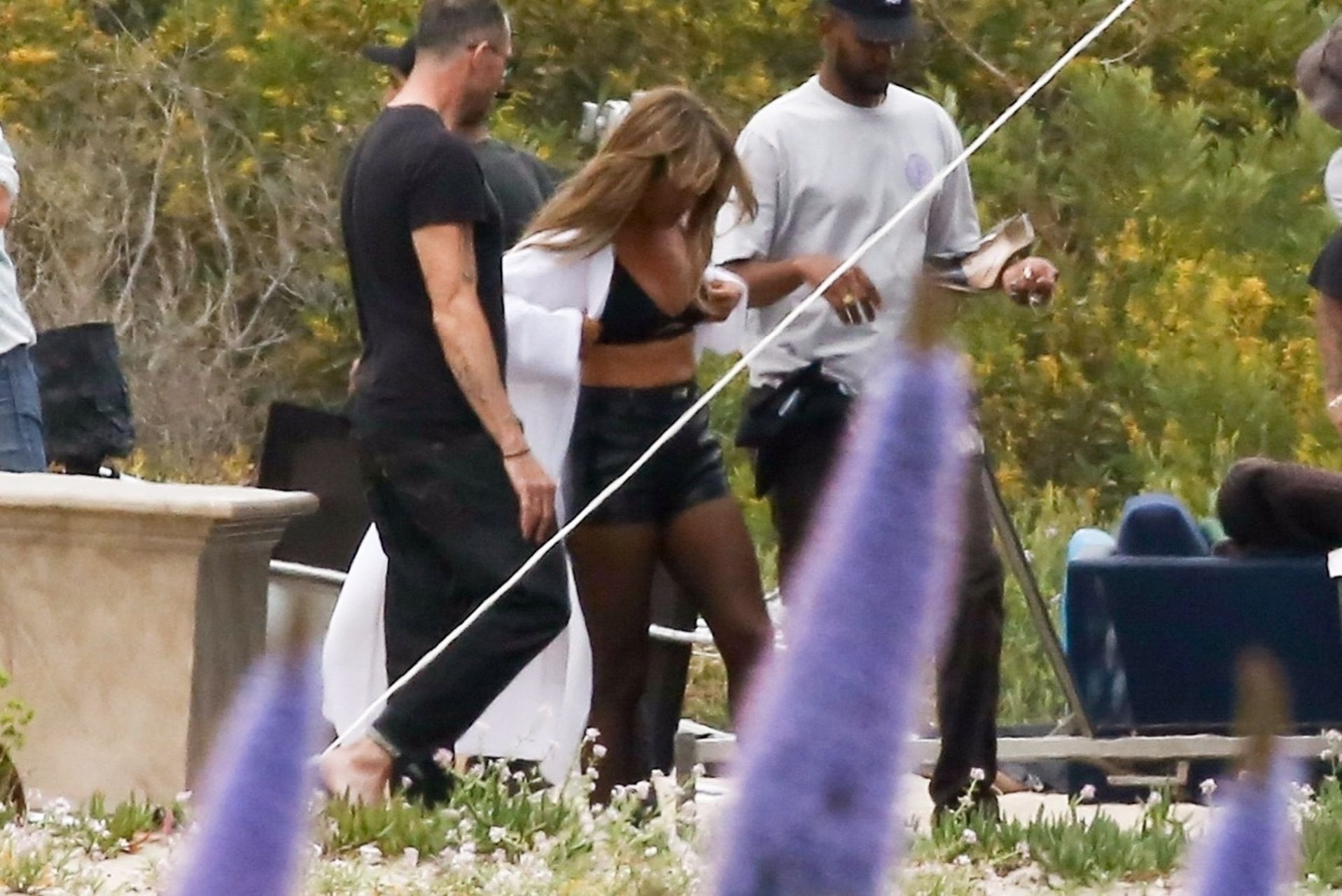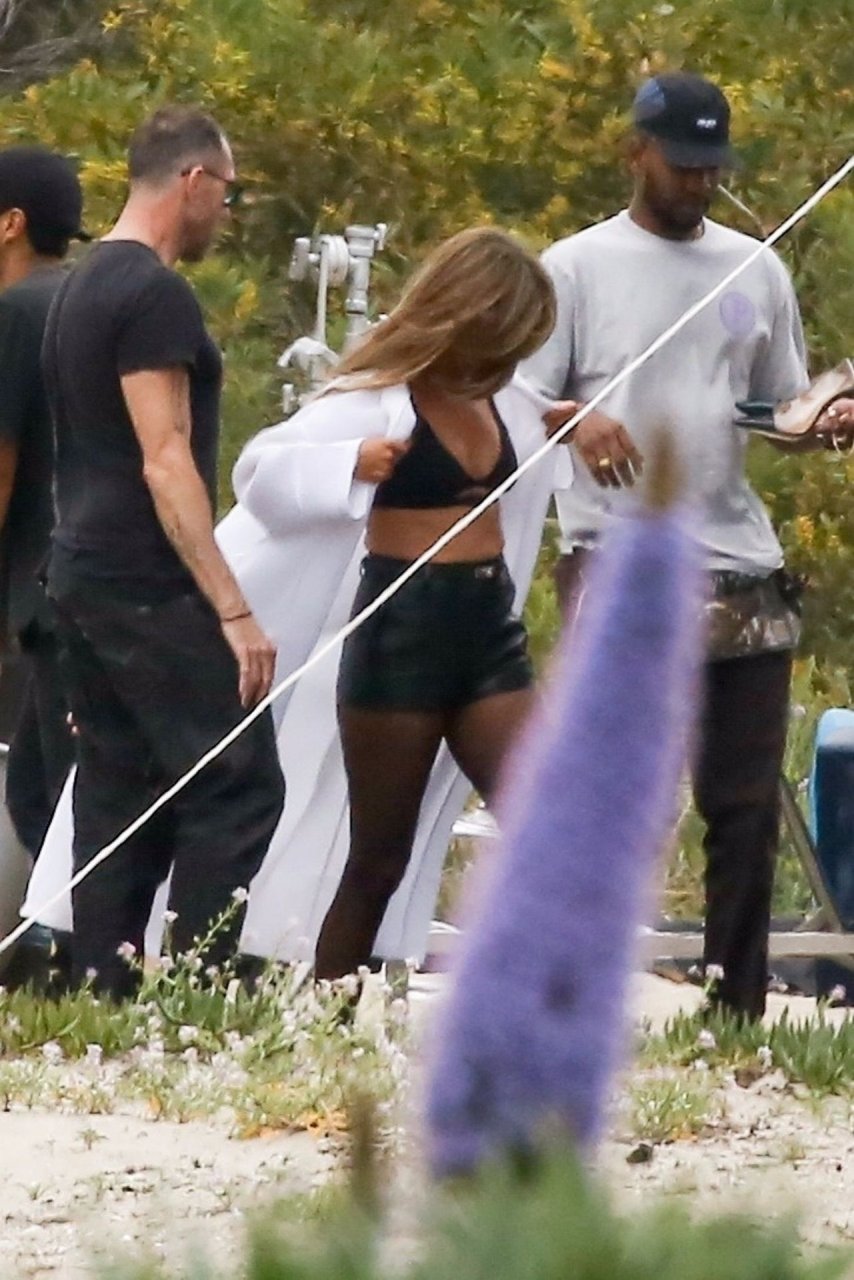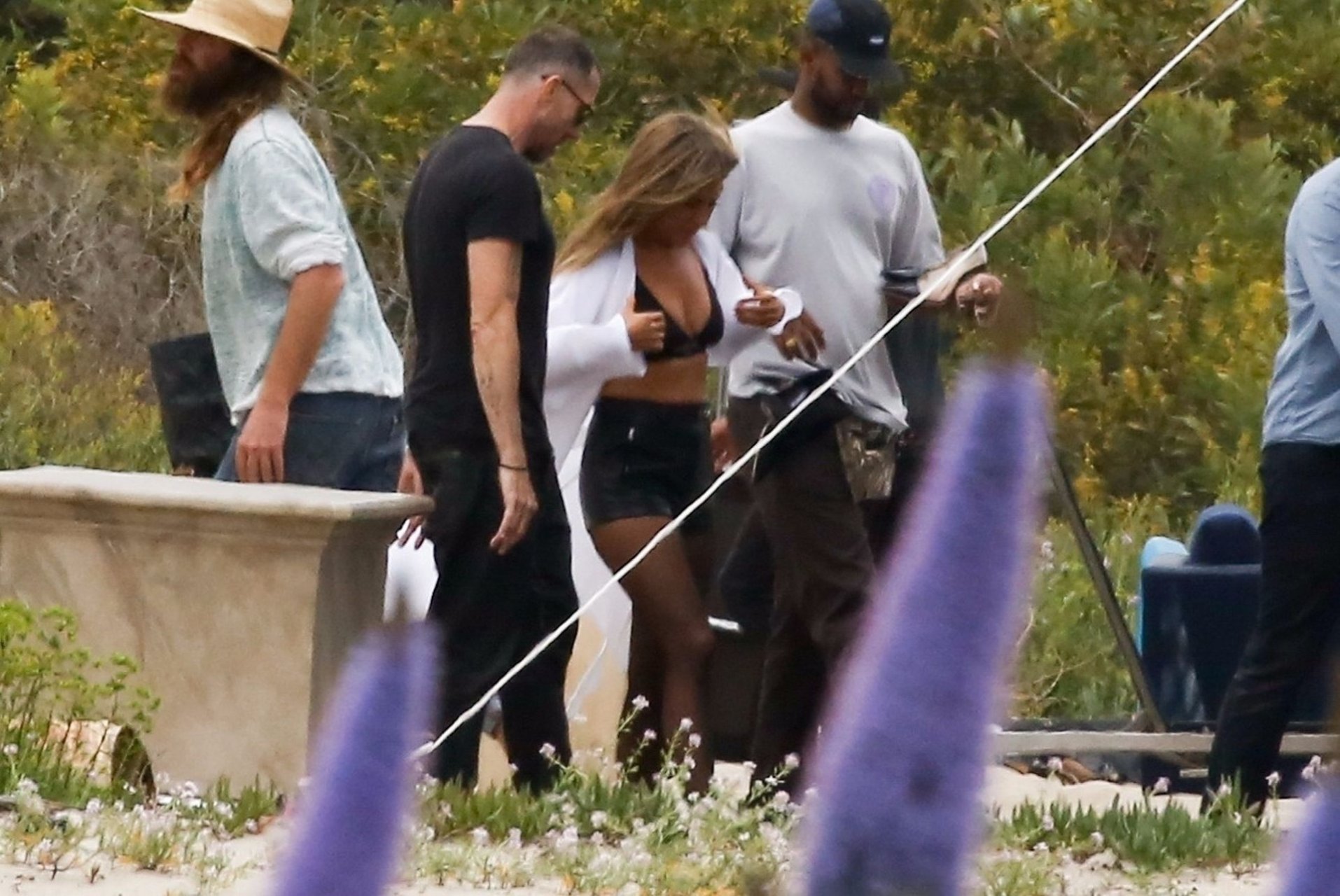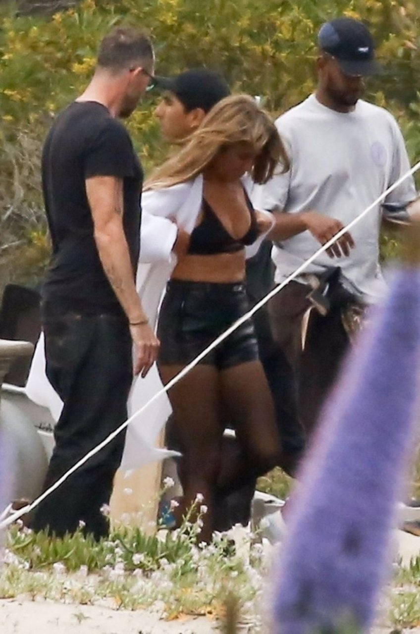 Дженнифер Энистон позирует для сексуальной фотосессии на пляже в Малибу, 27.03.2019. Энистон позировала с собакой в откровенном черном латексном платье с глубоким вырезом, а затем надела другое черное платье, которое также имело глубокий вырез.