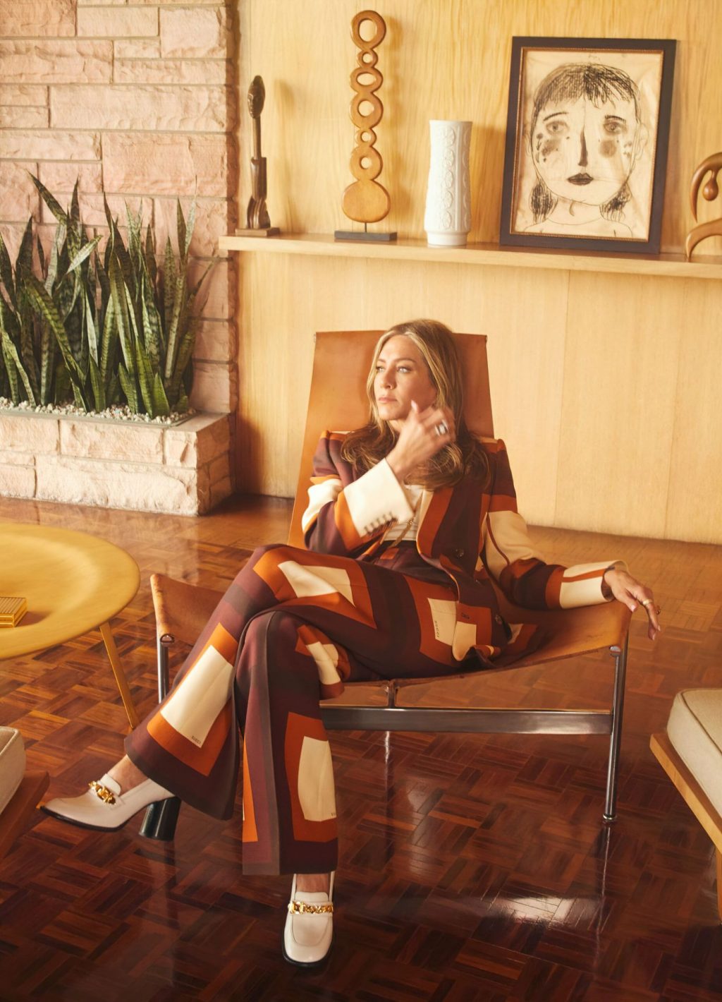 Актриса Дженнифер Энистон демонстрирует свои ноги в откровенном наряде и принимает дерзкую позу для сентябрьского выпуска журнала InStyle 2021 года.