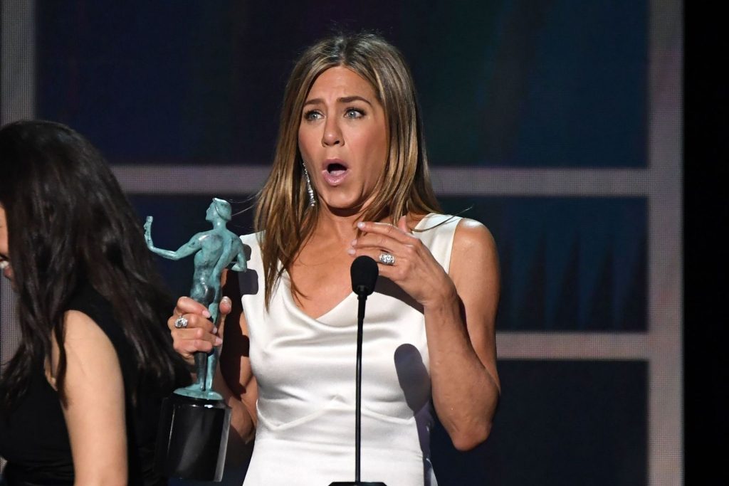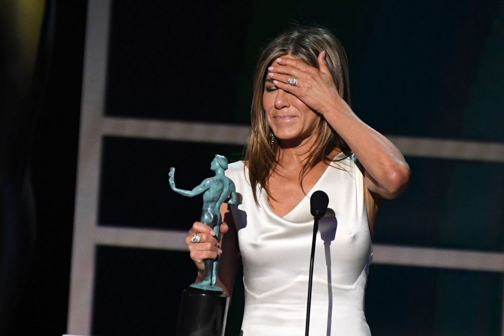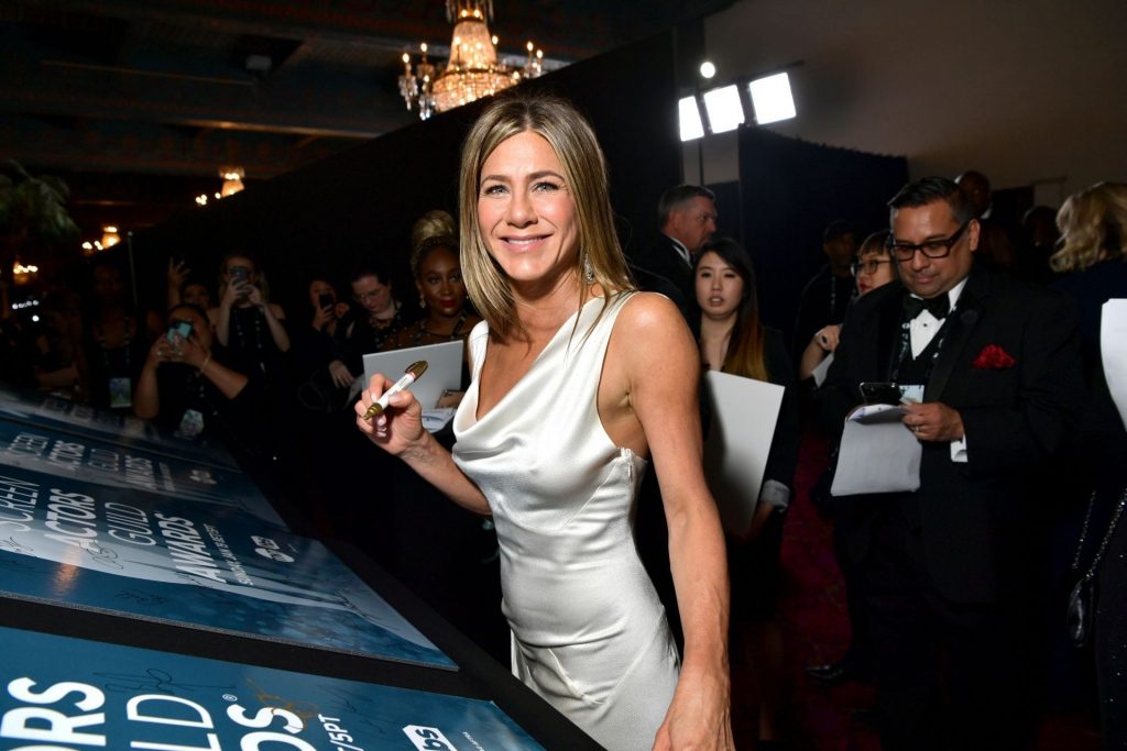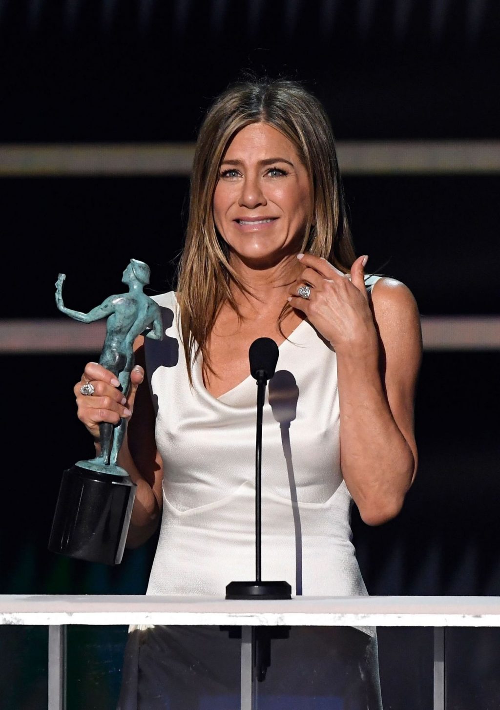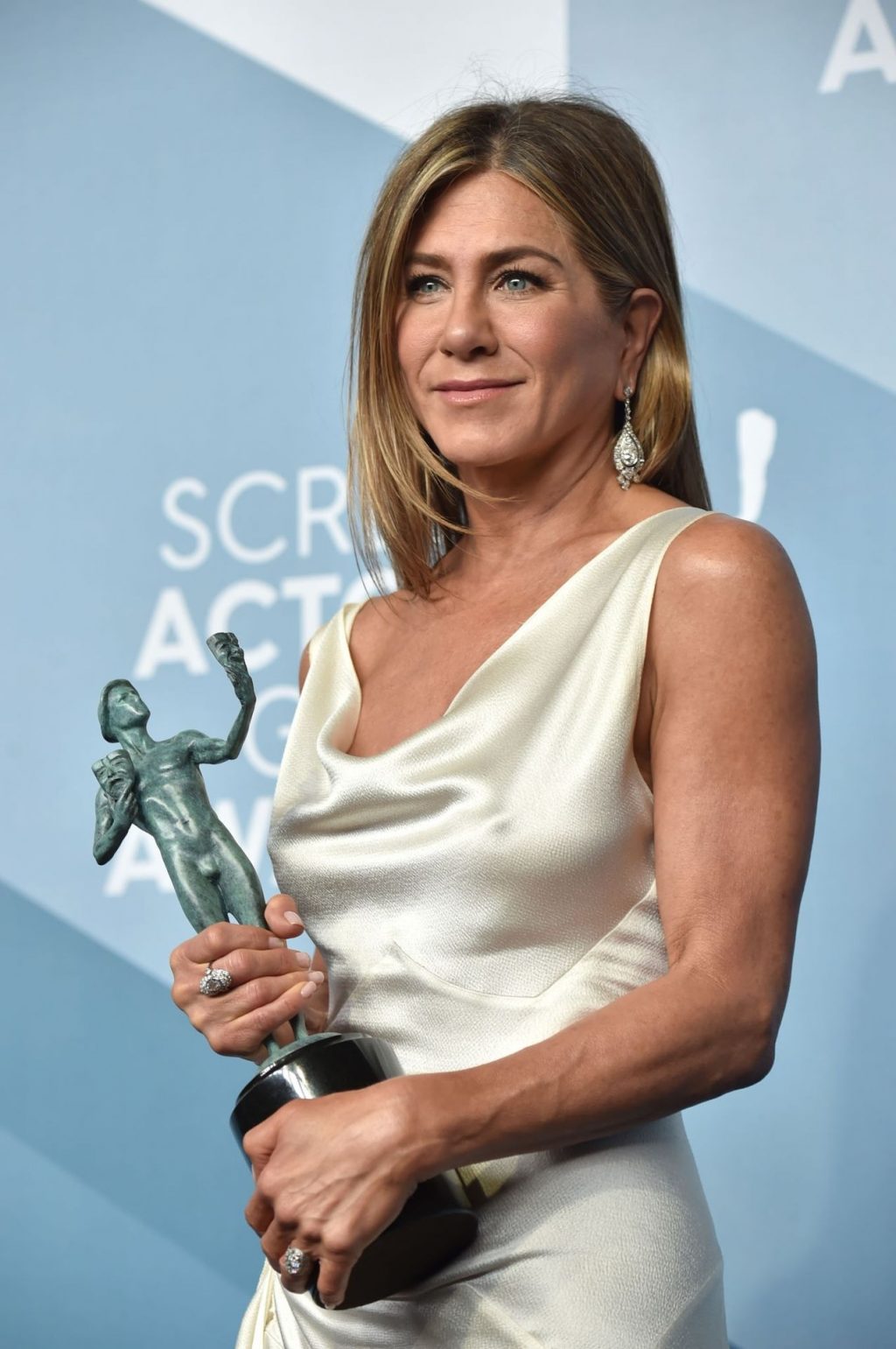 Дженнифер Энистон продемонстрировала свои игры на 26-й церемонии вручения премии Гильдии киноактеров в Лос-Анджелесе, Shrine Auditorium and Expo Hall, 19.01.2020.