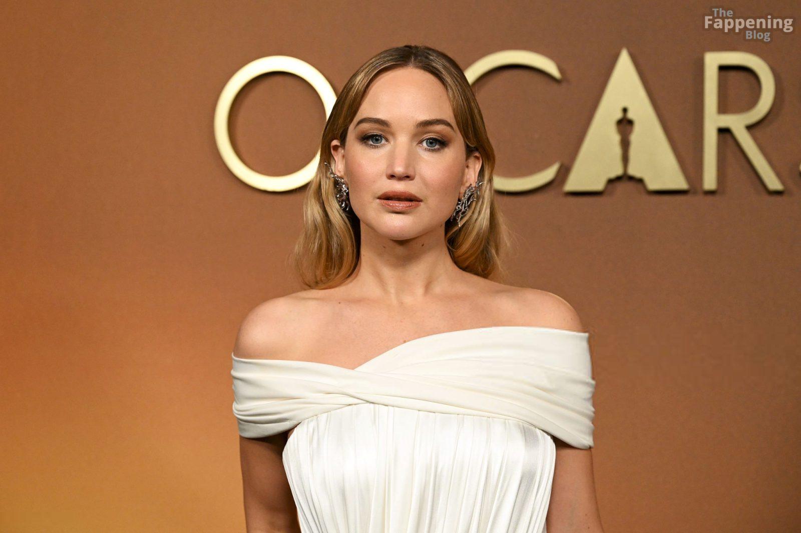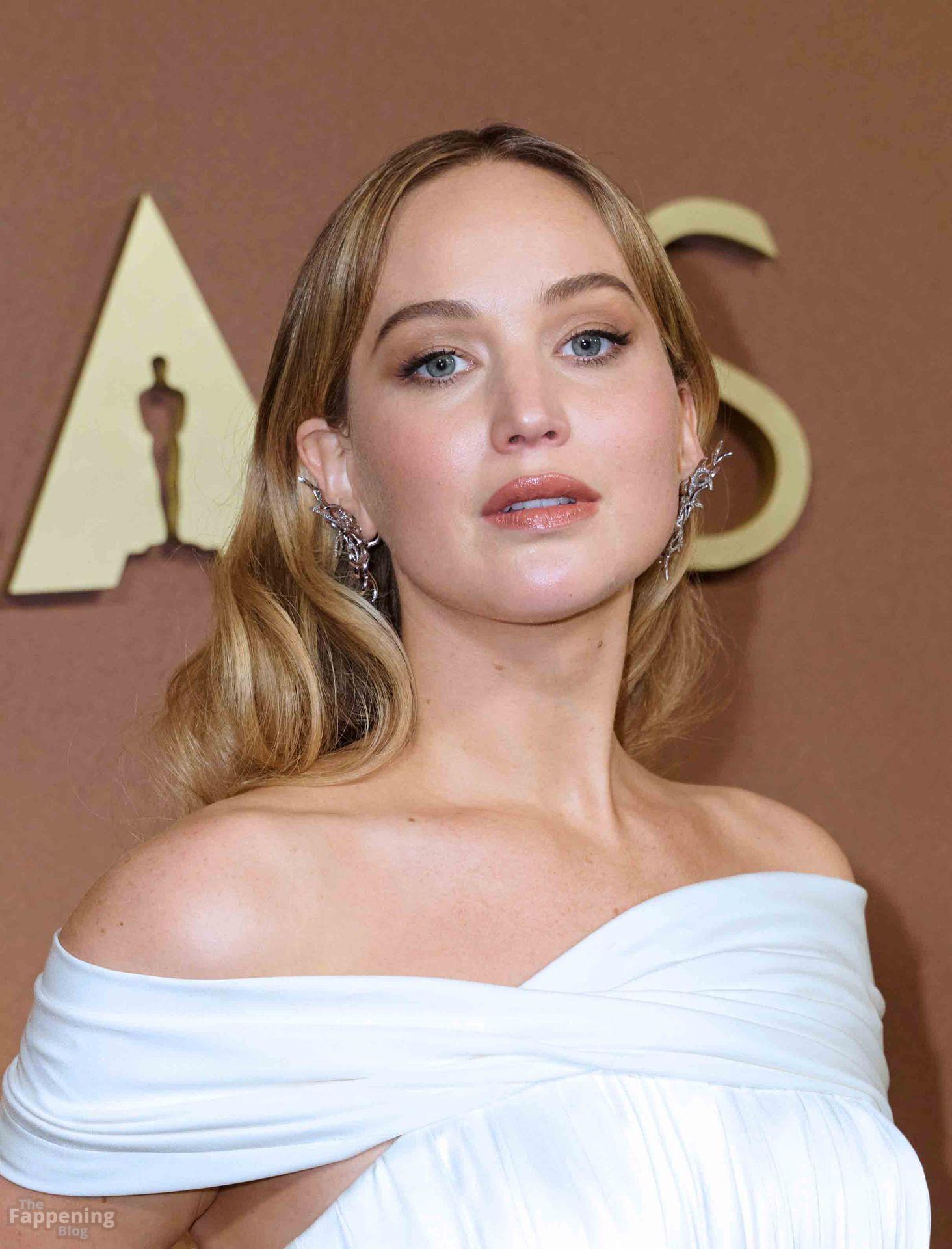 Дженнифер Лоуренс поражает в белом платье с открытыми плечами и высоким разрезом на 16-й церемонии Governors Awards в Ovation Hollywood в Лос-Анджелесе.