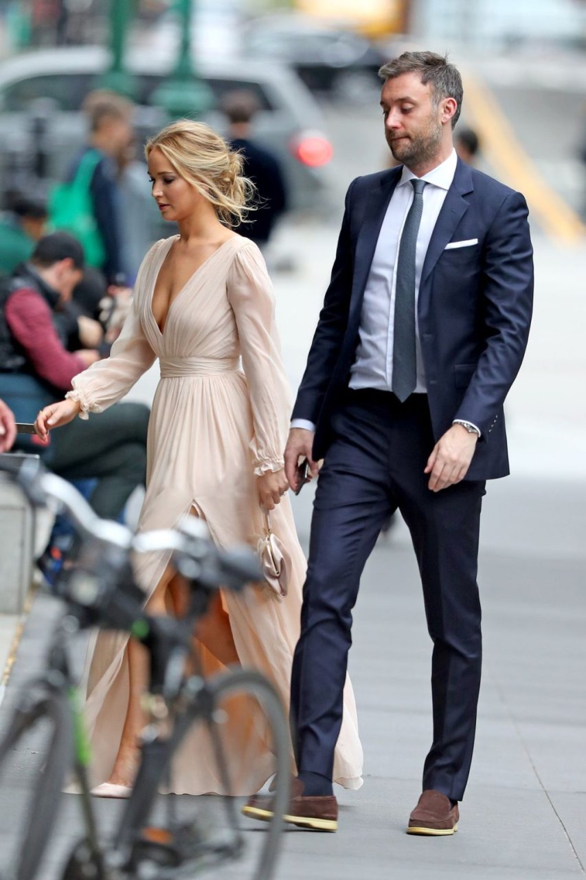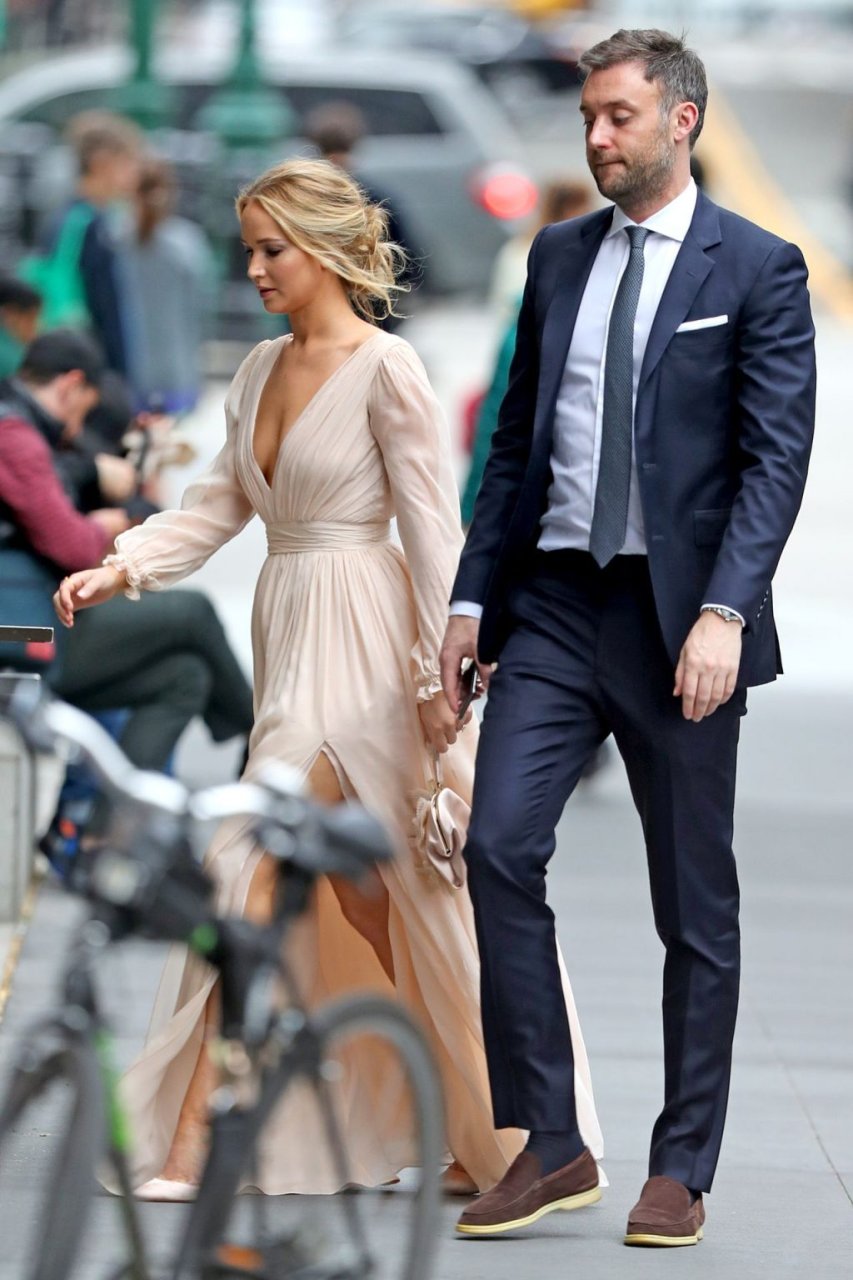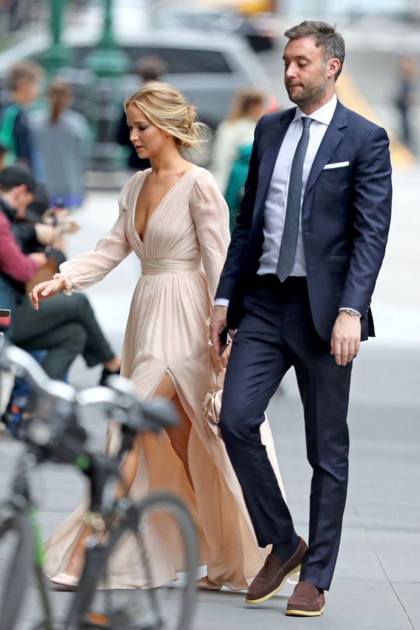 Дженнифер Лоуренс и Кук Мэрони нарядились для свидания в Нью-Йорке, 12.05.2019. 28-летняя актриса и звезда The Fappening поразили в персиковом платье в сочетании с подходящими туфлями на каблуках. Пару видели, когда они заходили в жилой дом в нижнем Манхэттене.