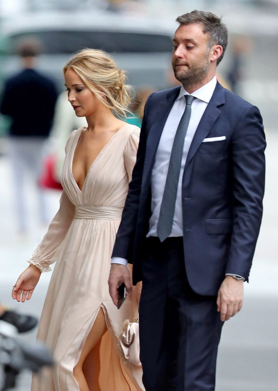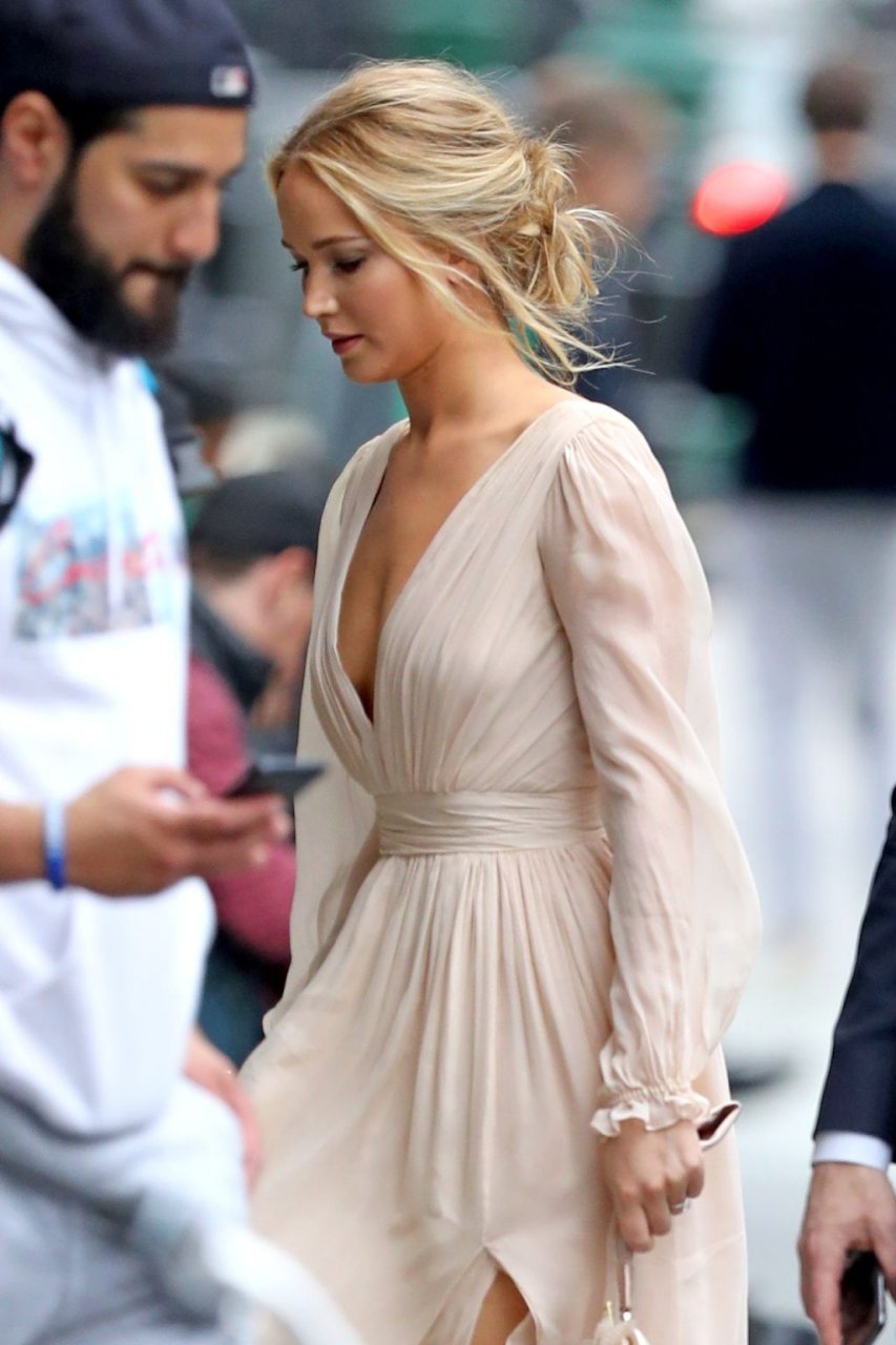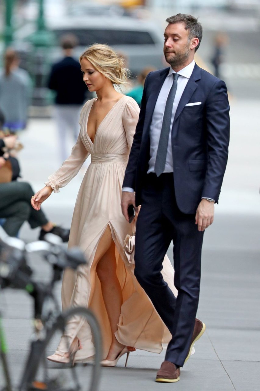 Дженнифер Лоуренс и Кук Мэрони нарядились для свидания в Нью-Йорке, 12.05.2019. 28-летняя актриса и звезда The Fappening поразили в персиковом платье в сочетании с подходящими туфлями на каблуках. Пару видели, когда они заходили в жилой дом в нижнем Манхэттене.