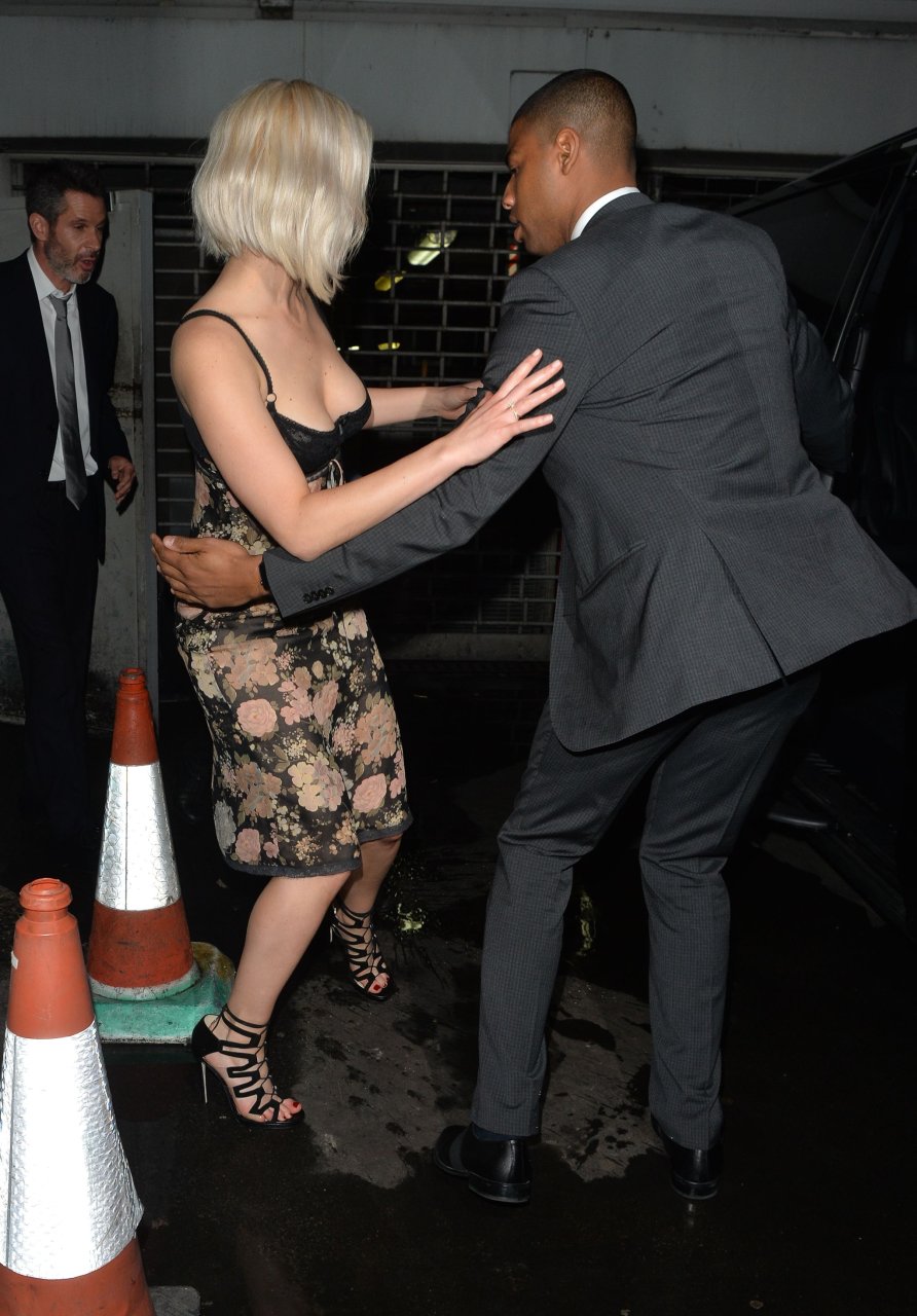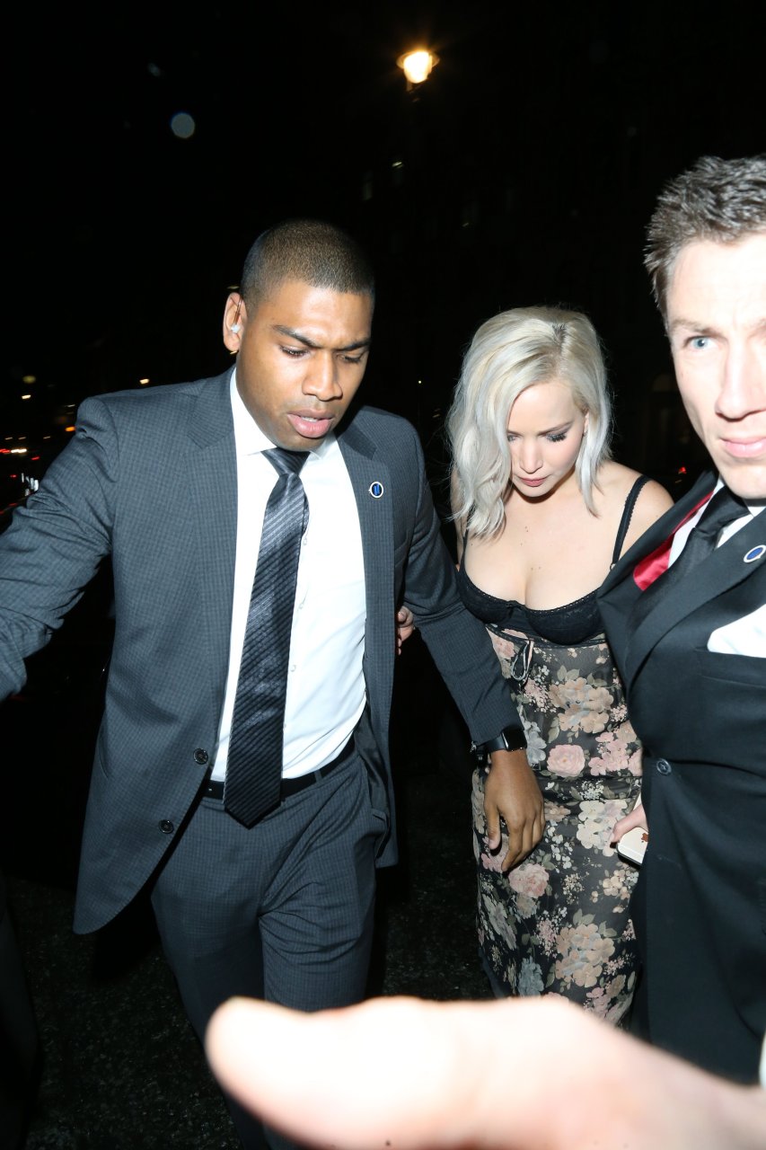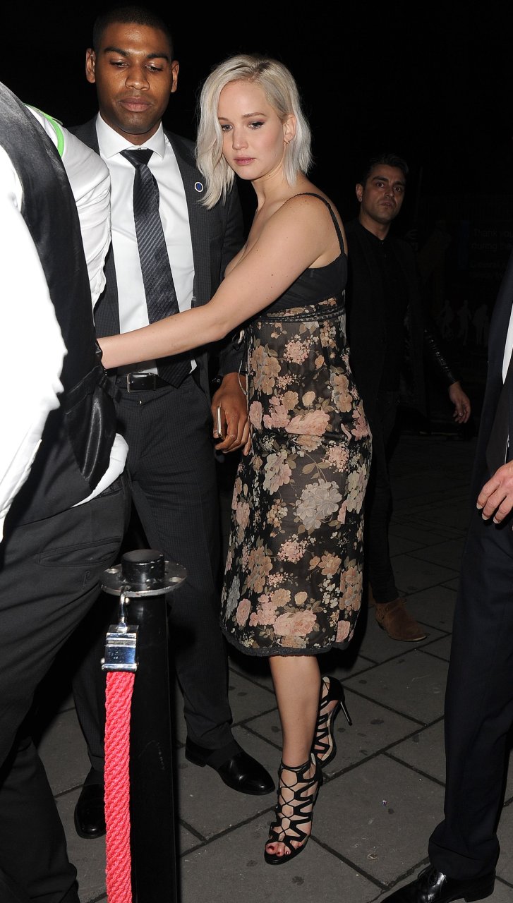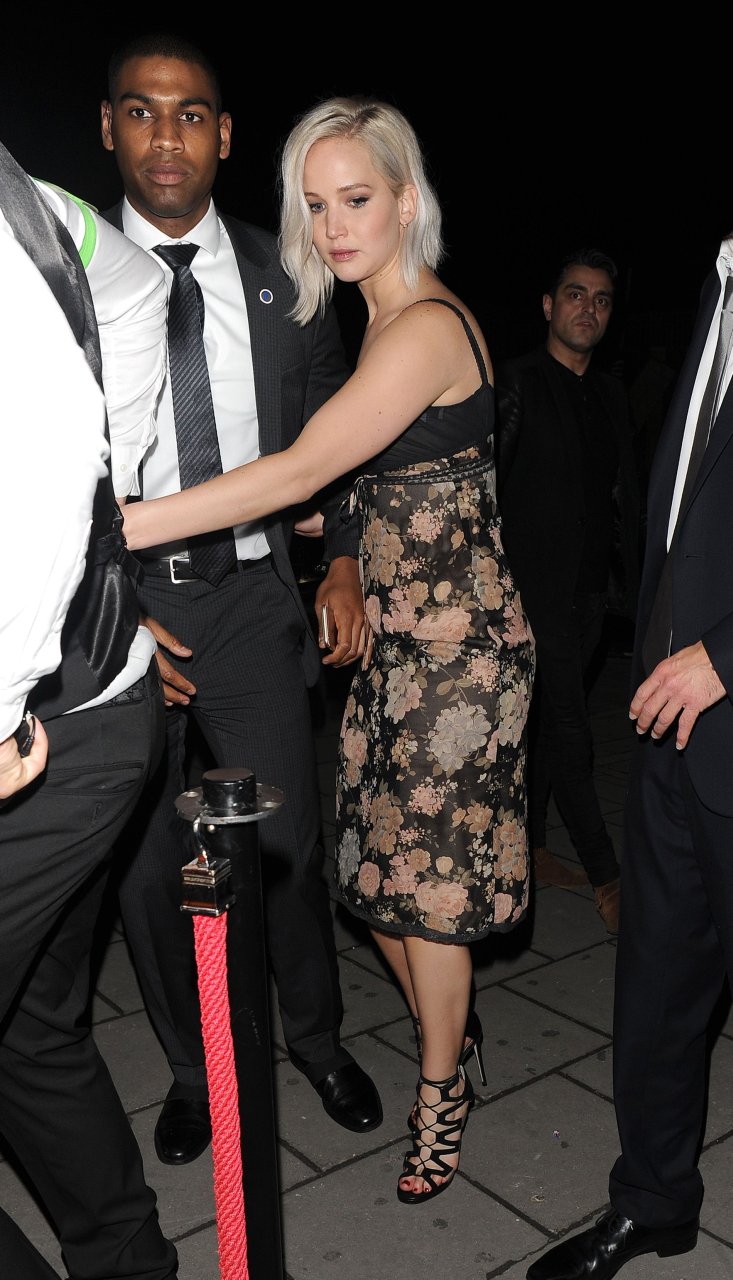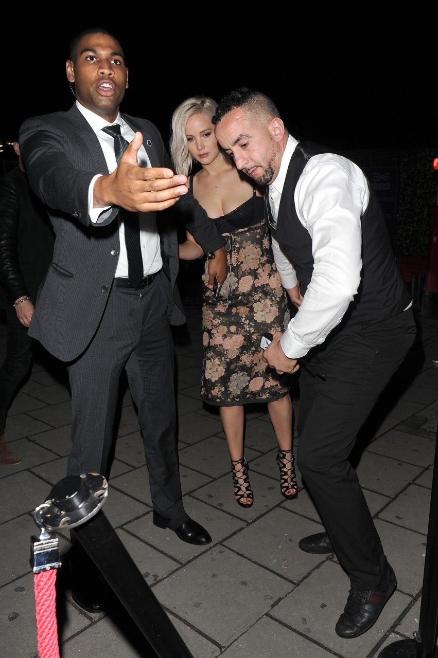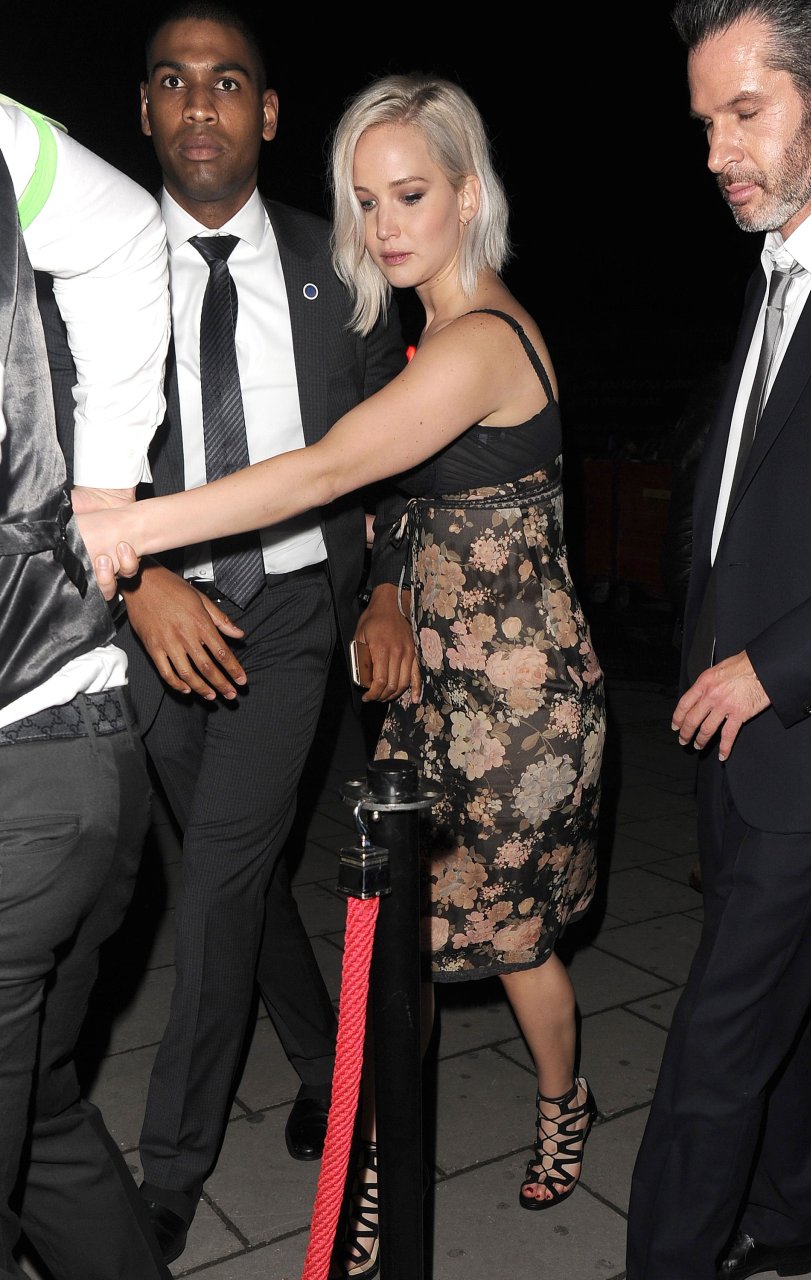 Дженнифер Лоуренс в черном бюстгальтере на улицах Лондона, 05/09/16. Интересный стиль! Дженнифер Лоуренс — американская актриса, известная по фильмам «Голодные игры», «Люди Икс» и «Серена». Возраст: 25 (15 августа 1990).