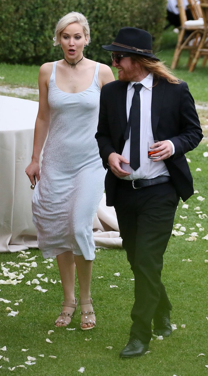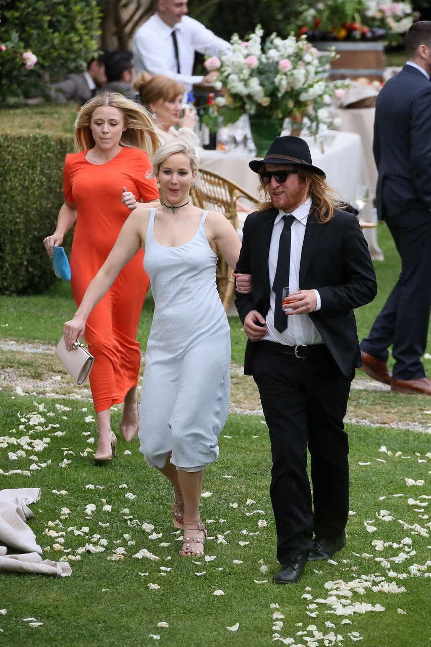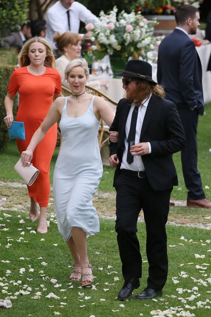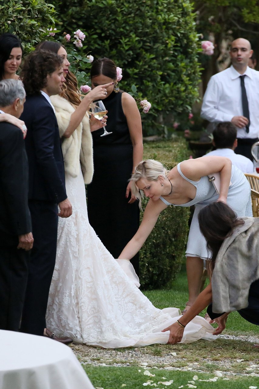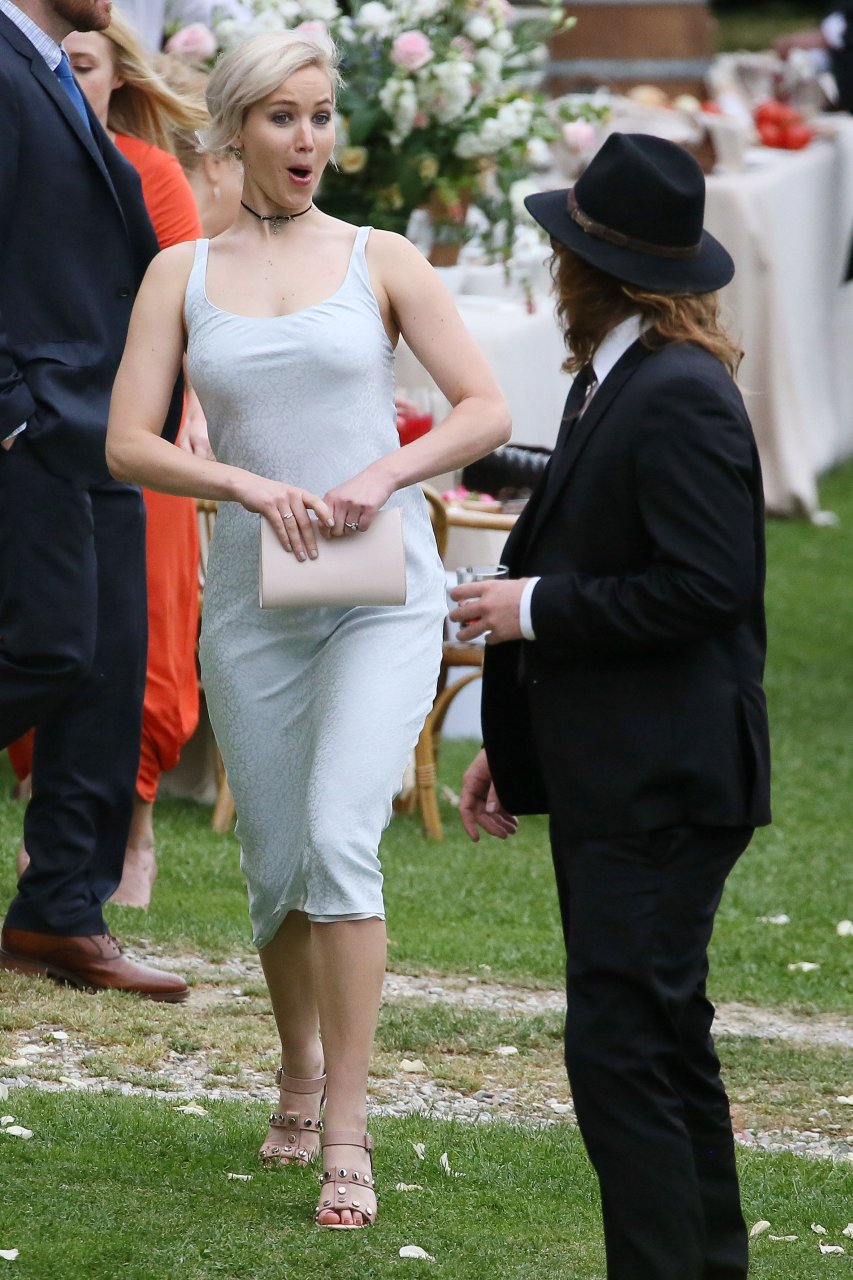 Дженнифер Лоуренс присутствует на свадьбе Лоры Симпсон во Флоренции, Италия, 02.06.2016. Очень обтягивающее платье! Дженнифер Лоуренс — американская актриса, известная по фильмам «Голодные игры», «Люди Икс» и «Серена». Возраст: 25 (15 августа 1990).Jennifer Lawrence Pokies 2