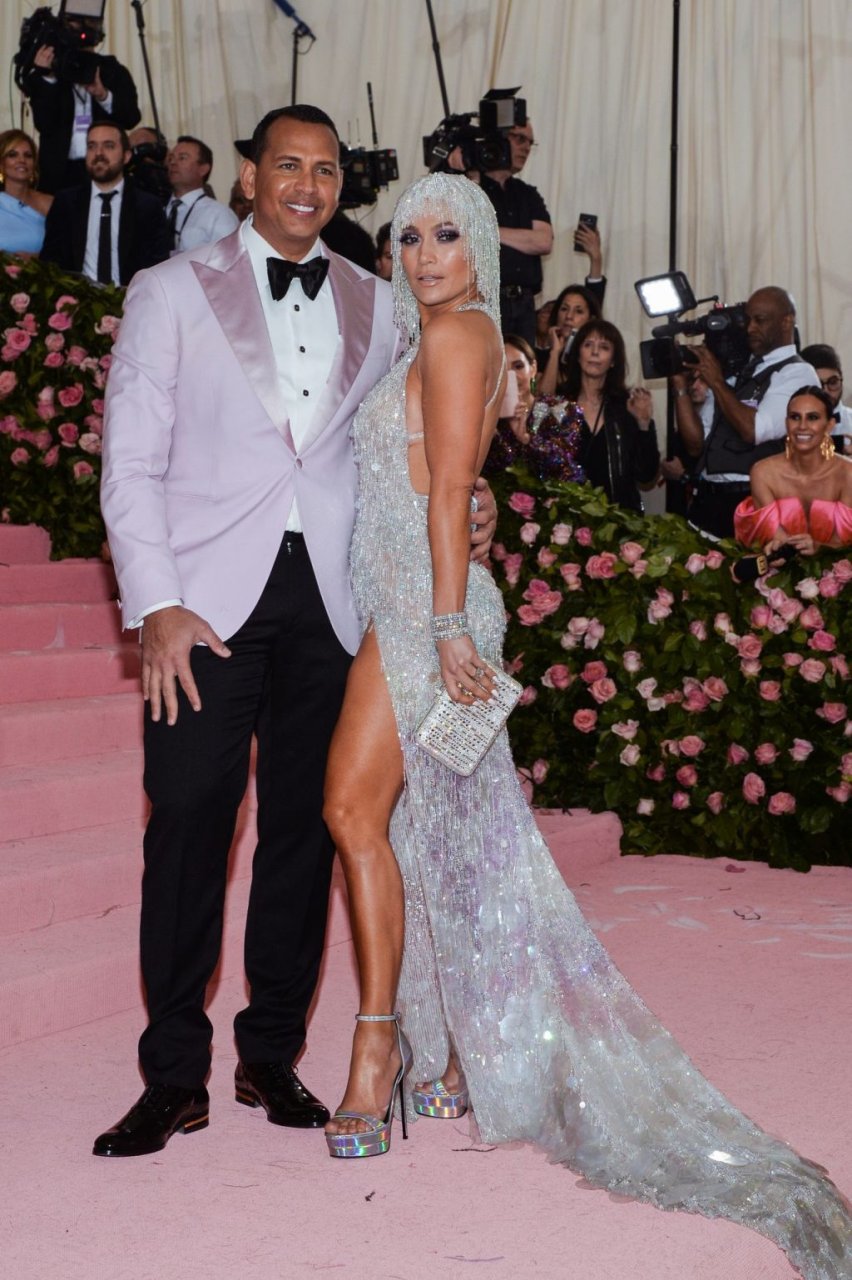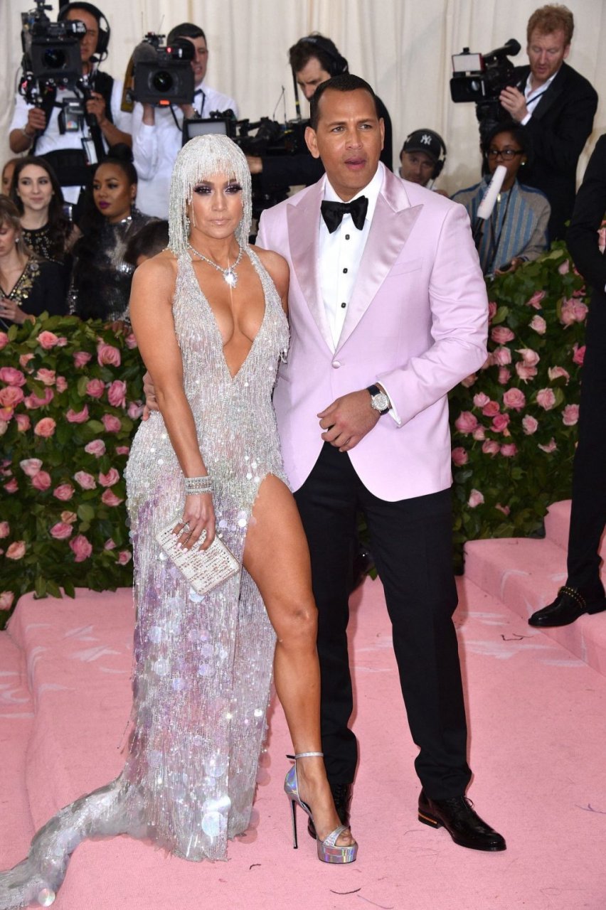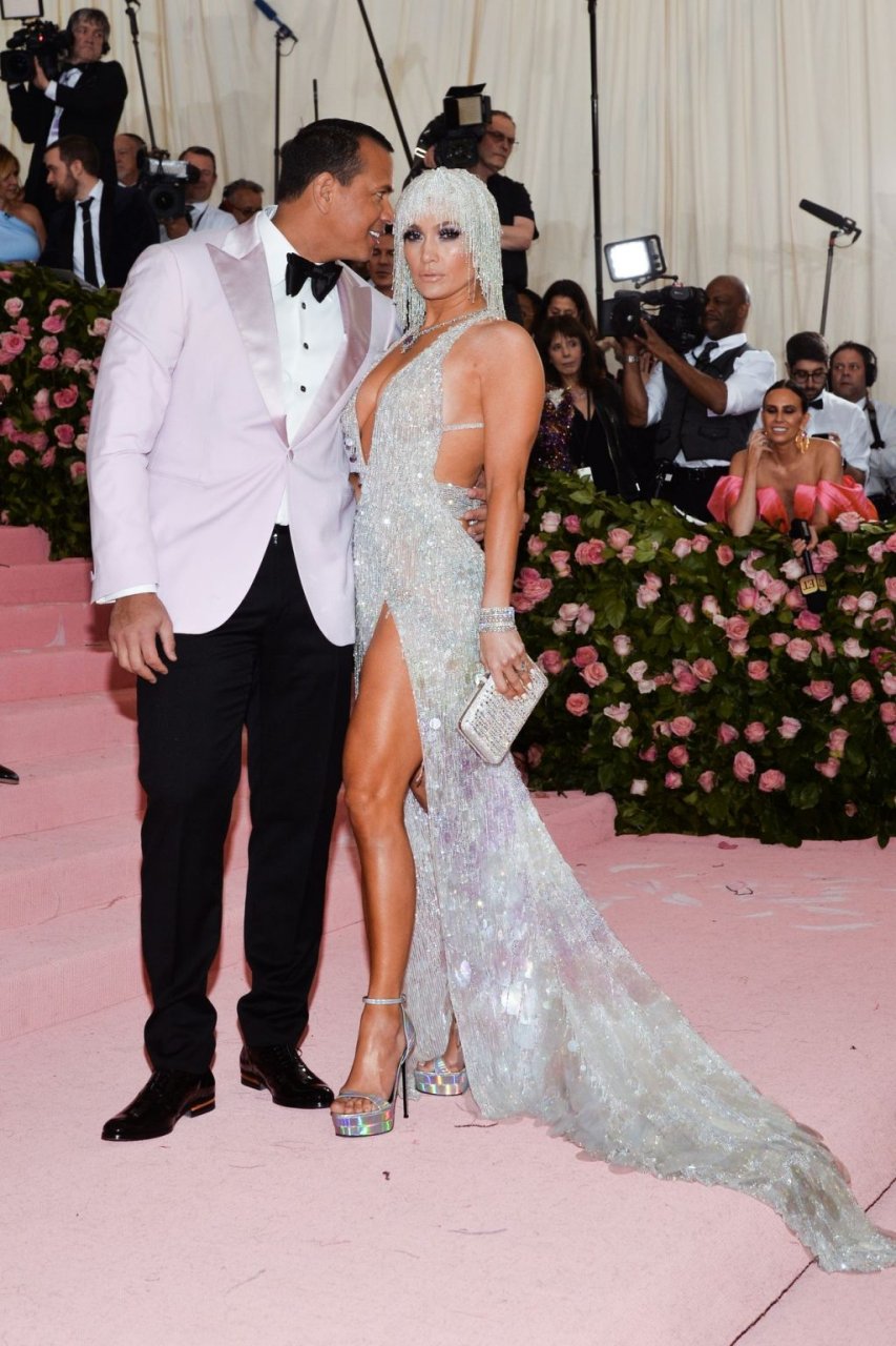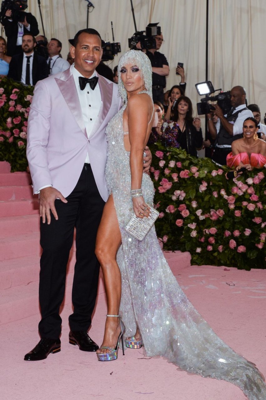Дженнифер Лопес (49) и Алекс Родригес (43) появились на ковровой дорожке Met Gala в Нью-Йорке, 06.05.2019. Для мероприятия певица выбрала платье Versace и ожерелье от Harry Winston. У неё также есть обручальное кольцо с огромным бриллиантом.