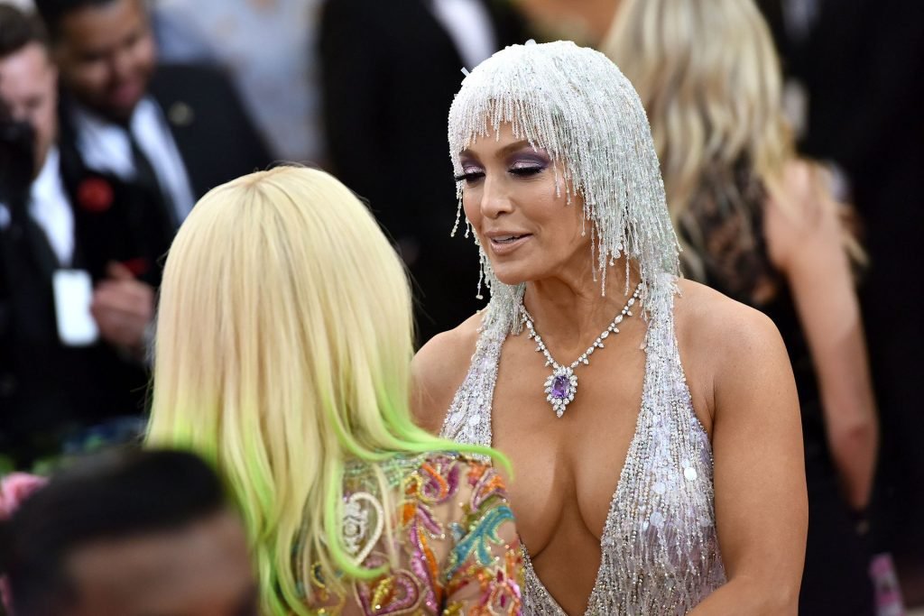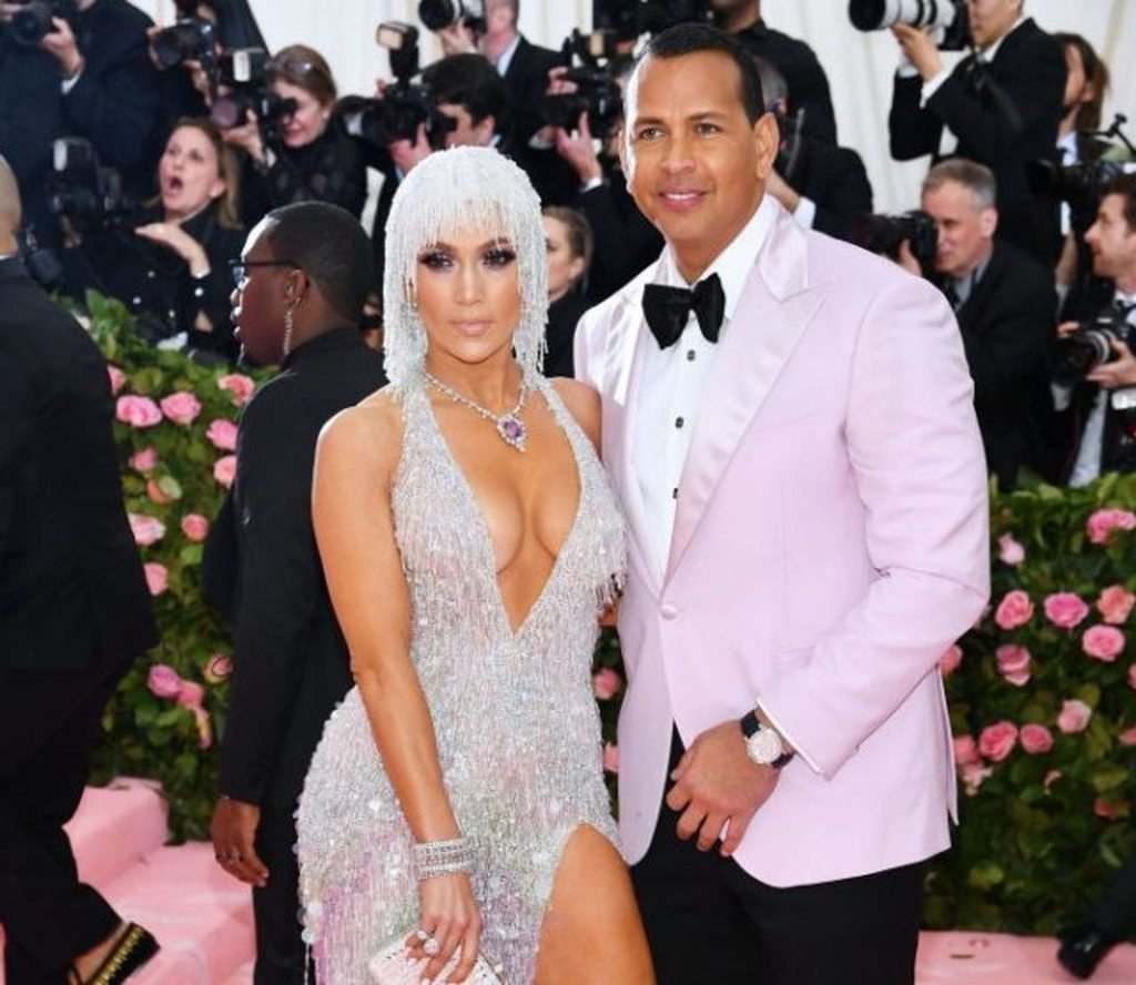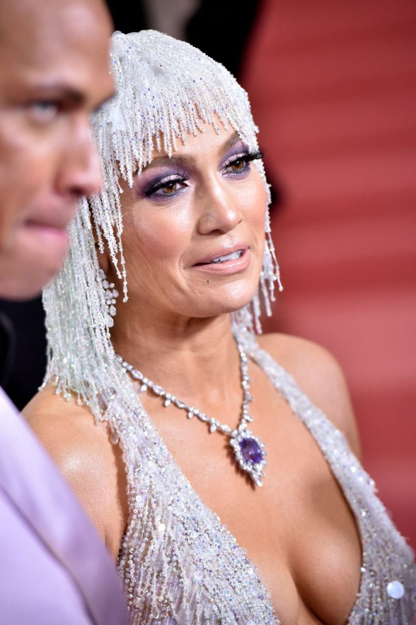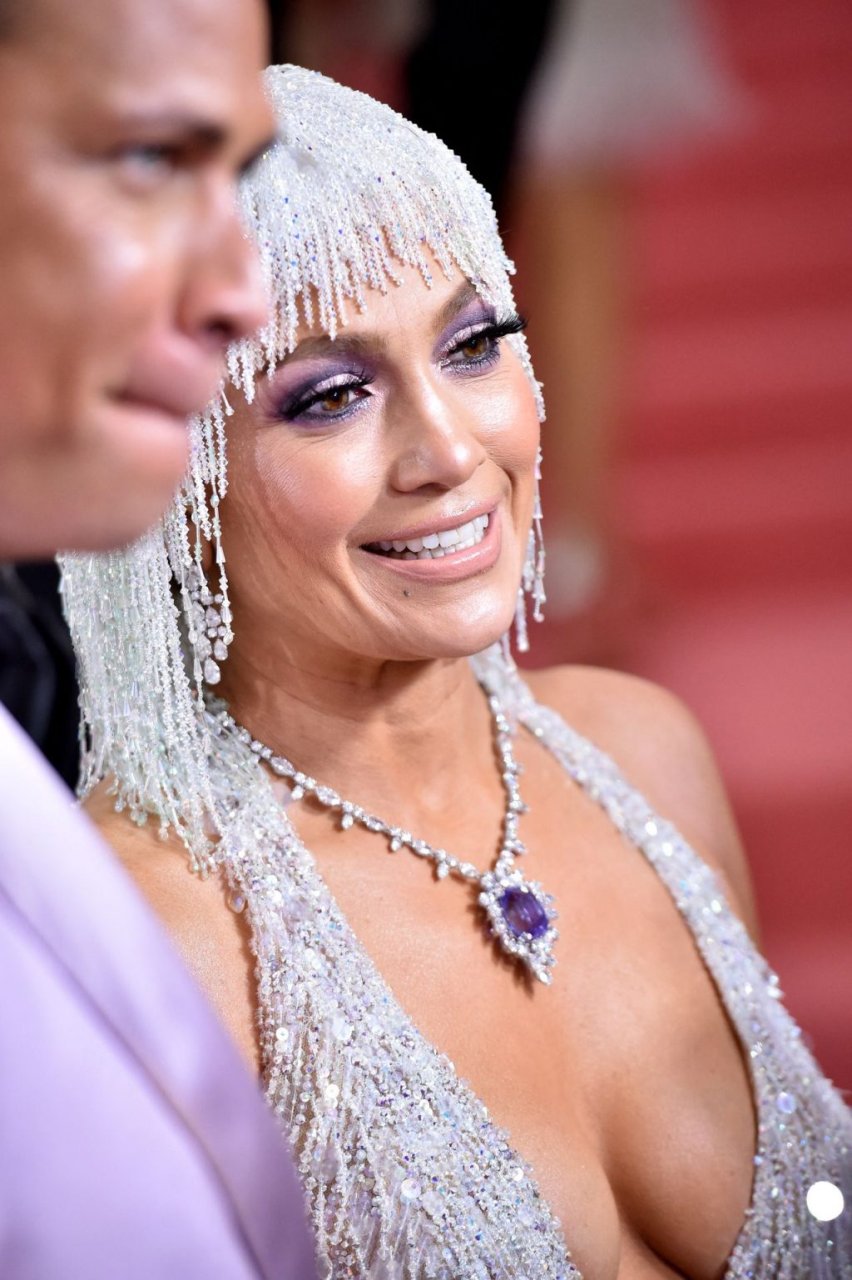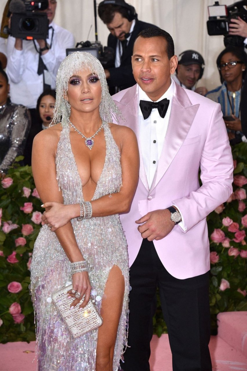 Дженнифер Лопес (49) и Алекс Родригес (43) появились на ковровой дорожке Met Gala в Нью-Йорке, 06.05.2019. Для мероприятия певица выбрала платье Versace и ожерелье от Harry Winston. У неё также есть обручальное кольцо с огромным бриллиантом.