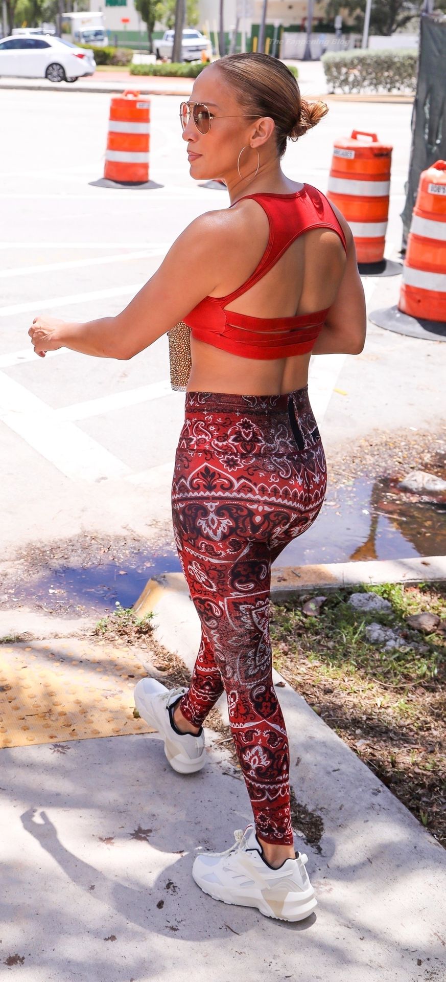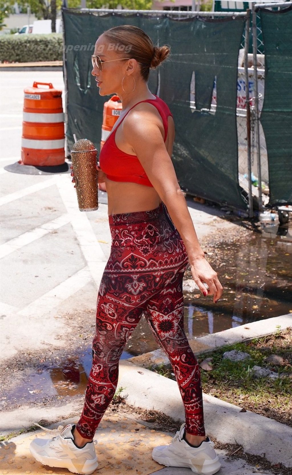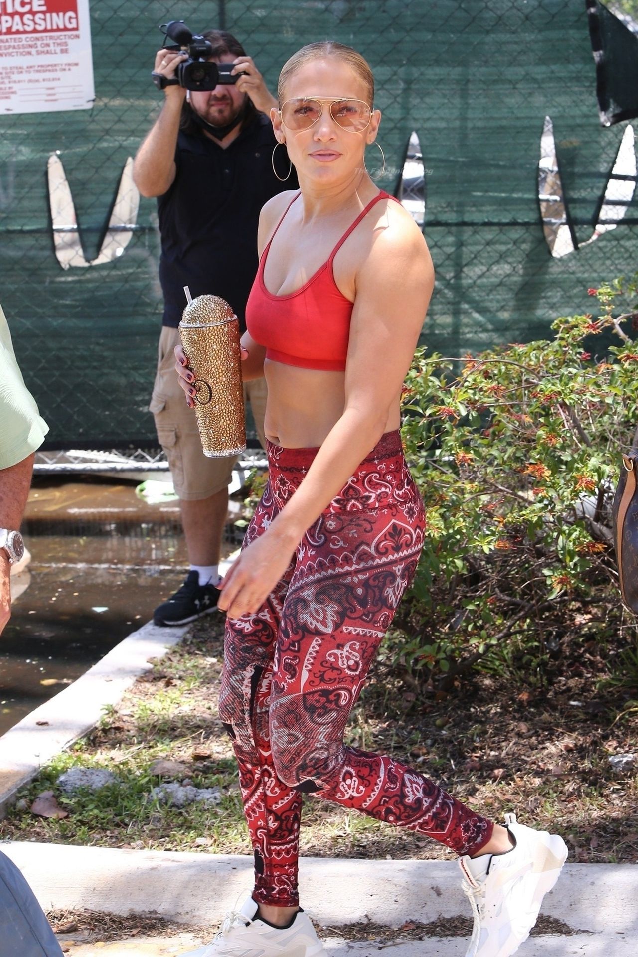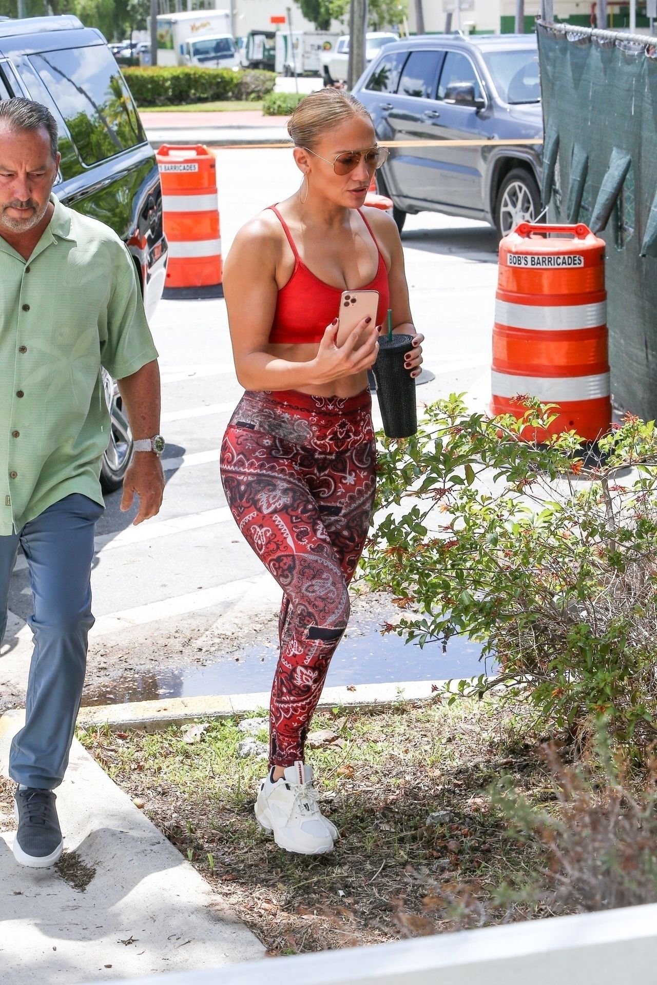 Певица Дженнифер Лопес посещает спортзал, демонстрируя свои знаменитые формы в Майами, 10.06.2021.