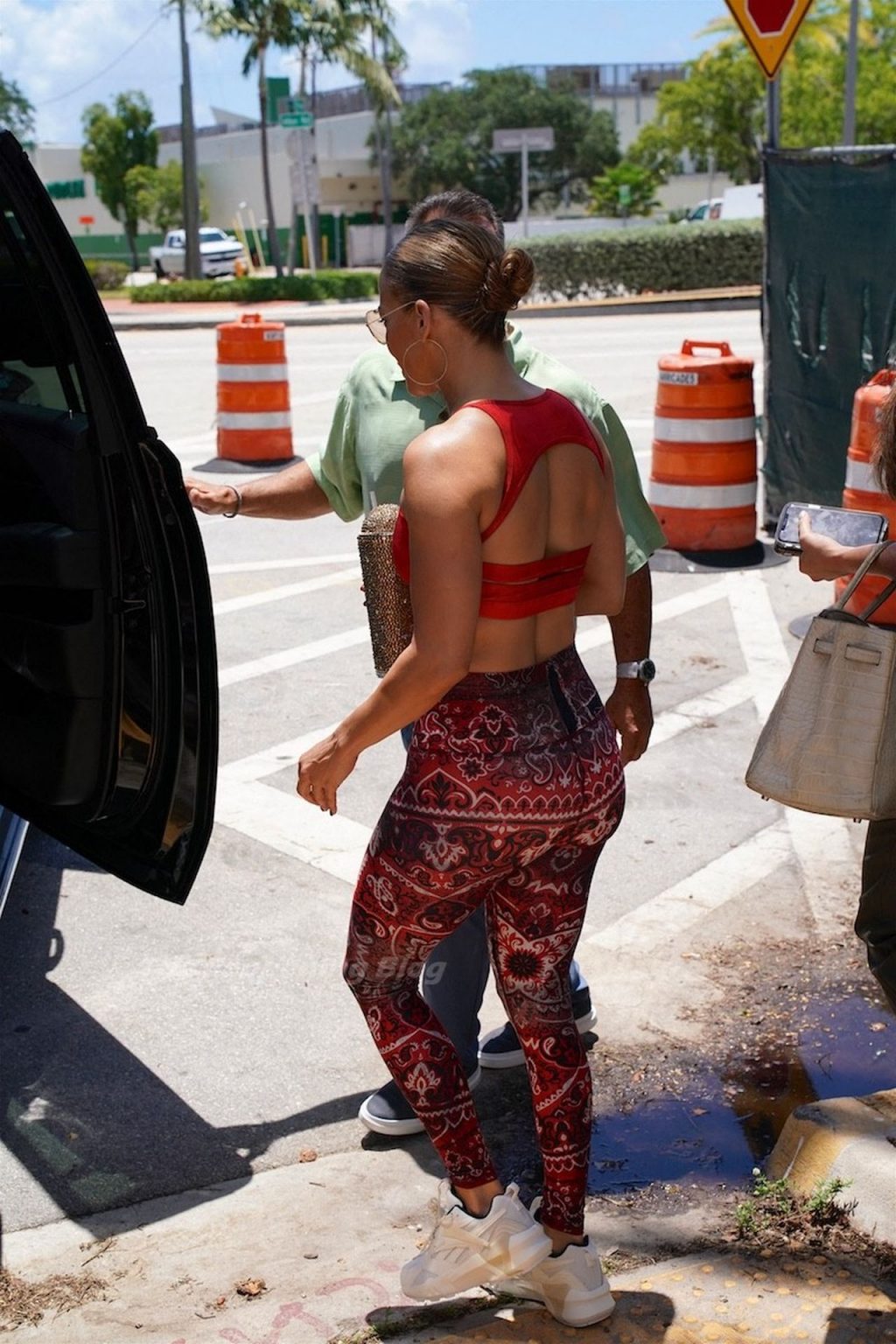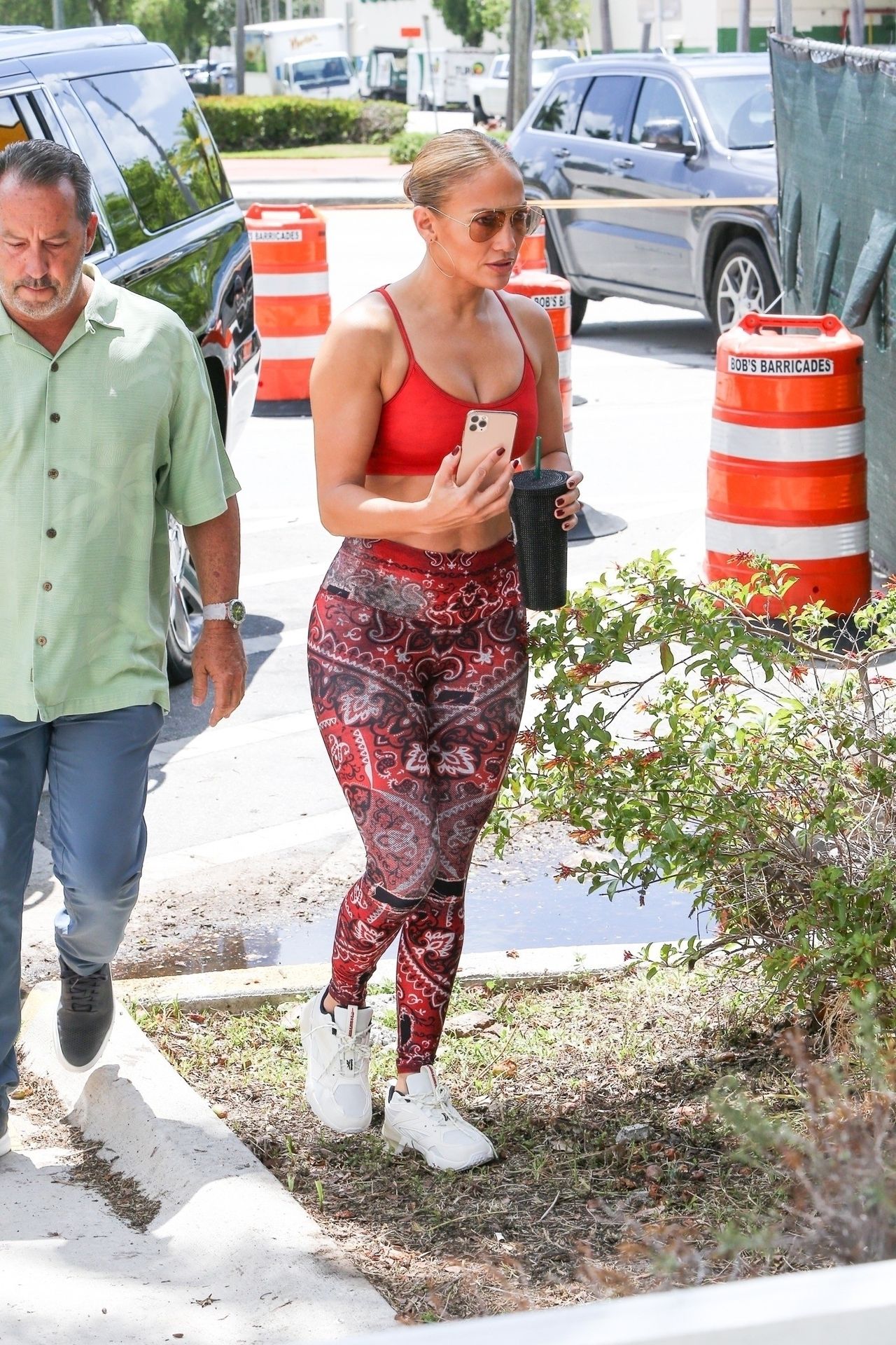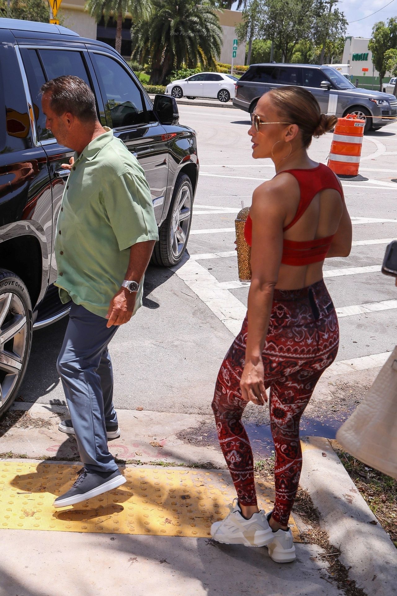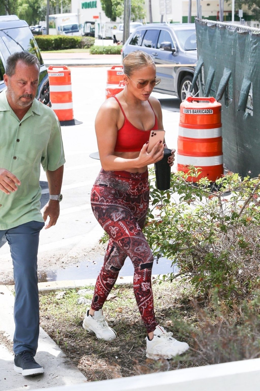 Певица Дженнифер Лопес посещает спортзал, демонстрируя свои знаменитые формы в Майами, 10.06.2021.