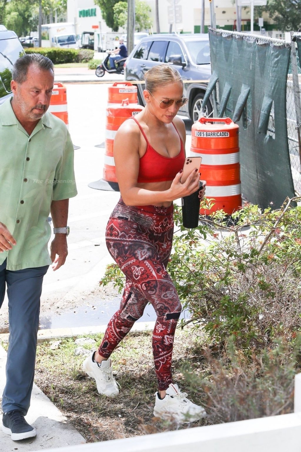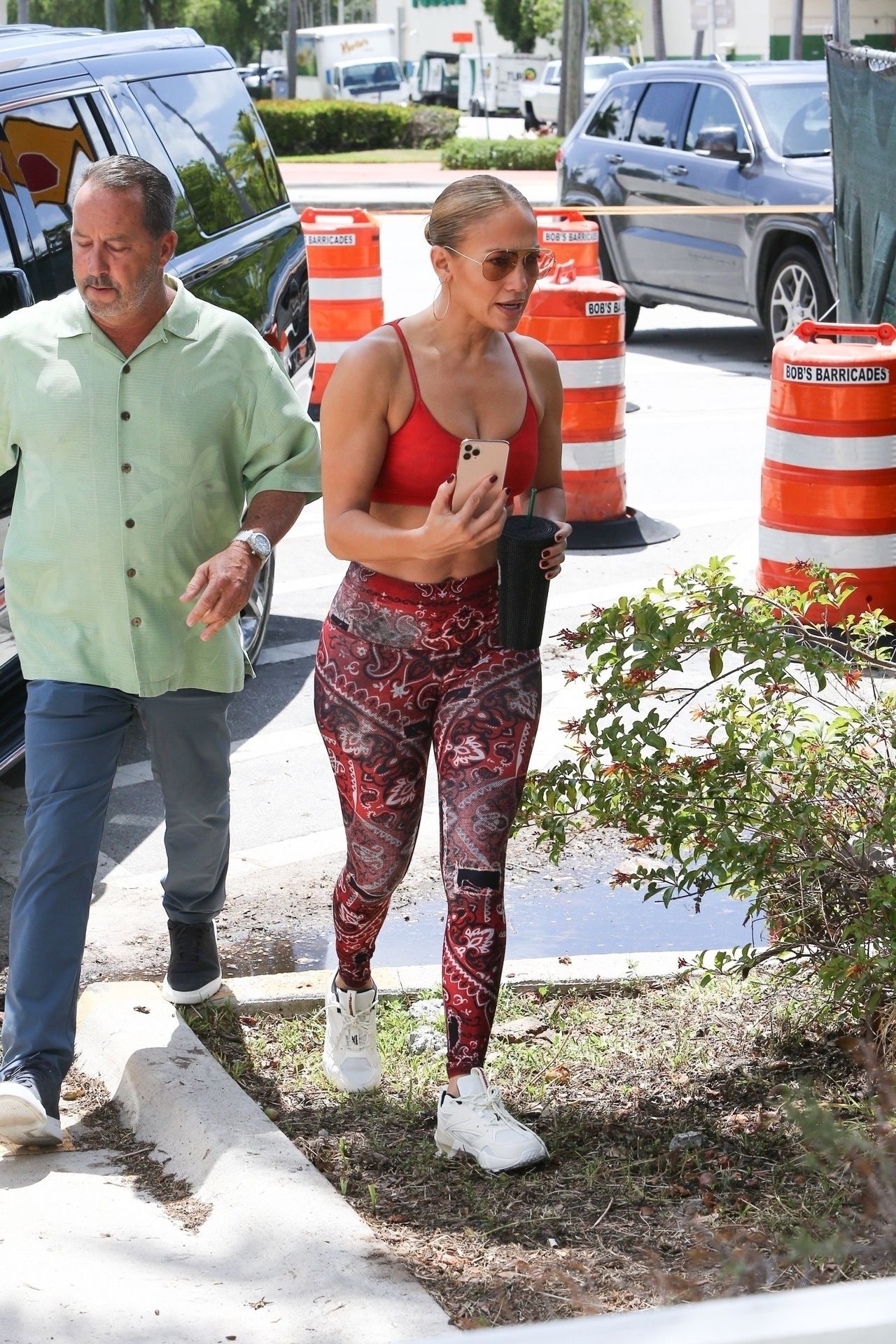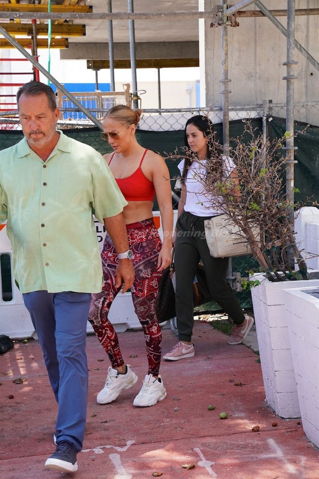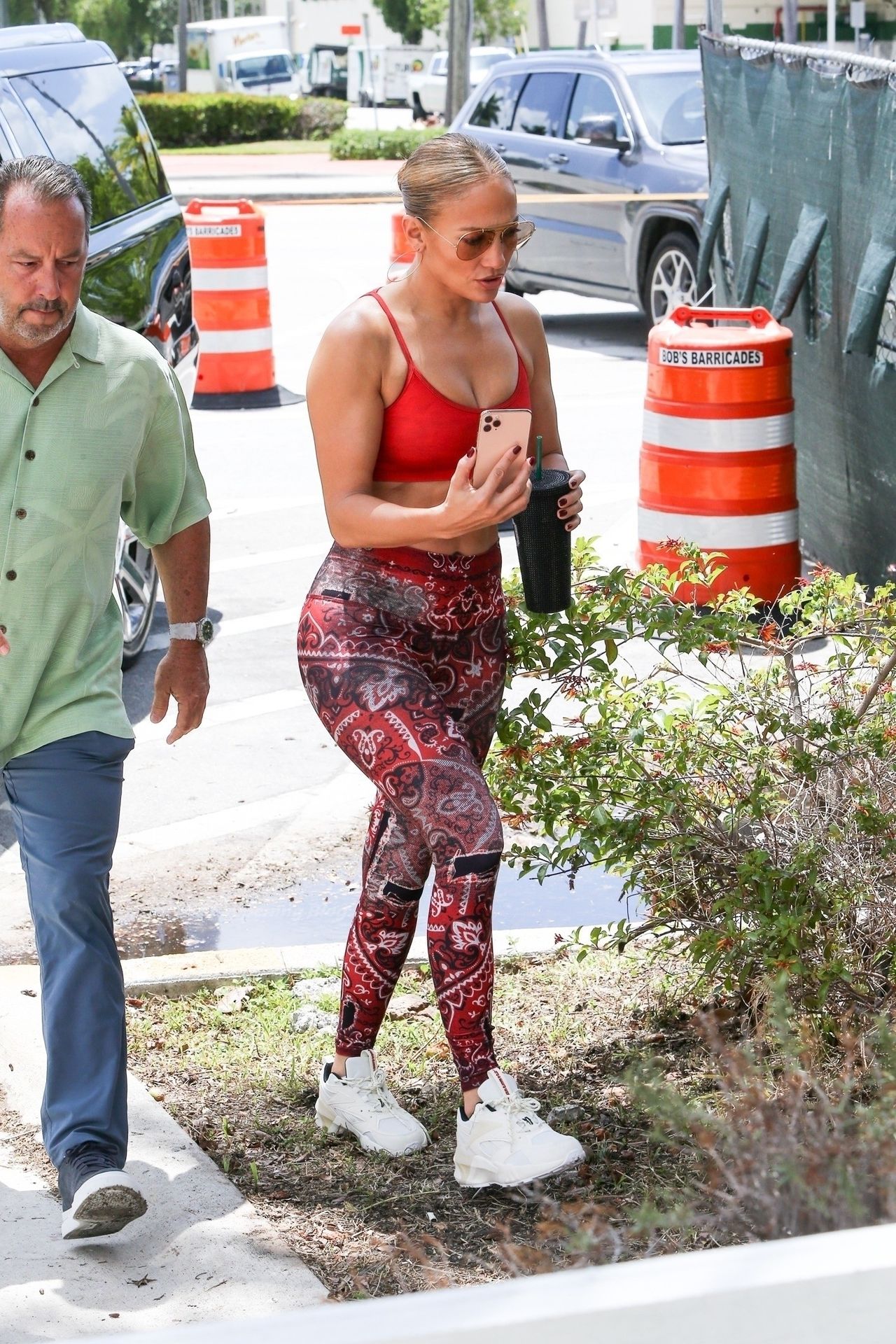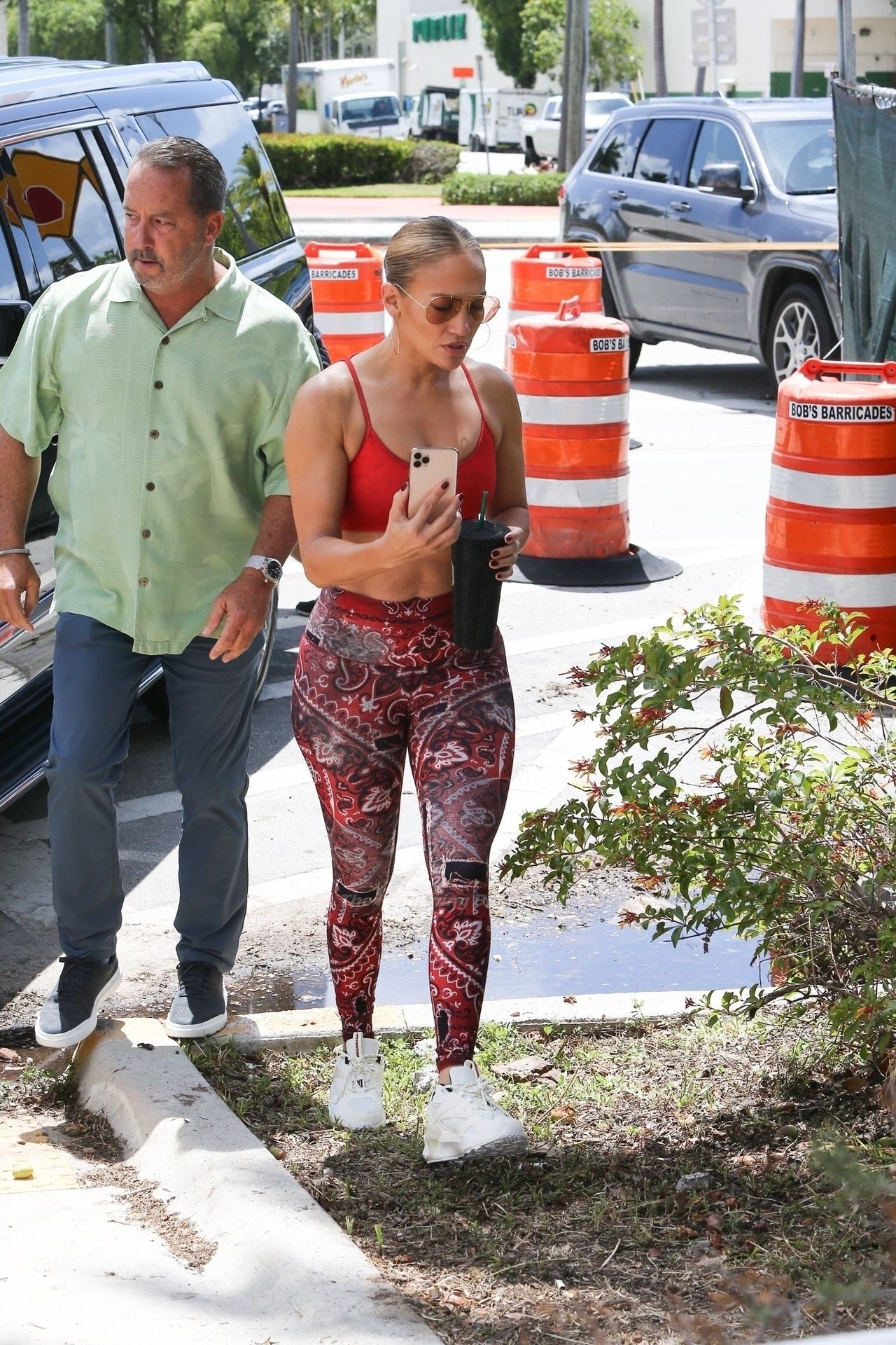 Певица Дженнифер Лопес посещает спортзал, демонстрируя свои знаменитые формы в Майами, 10.06.2021.