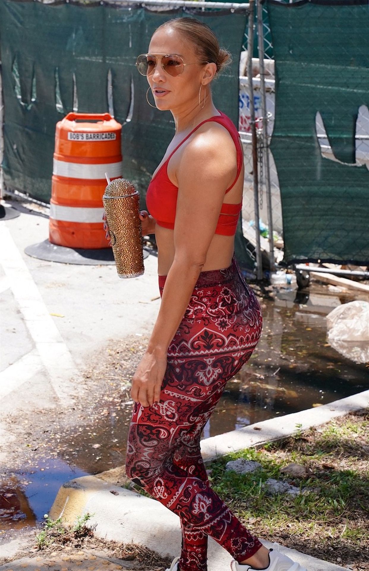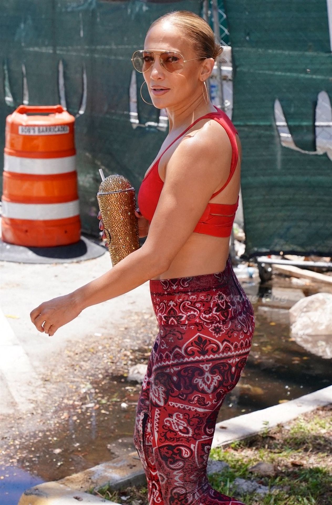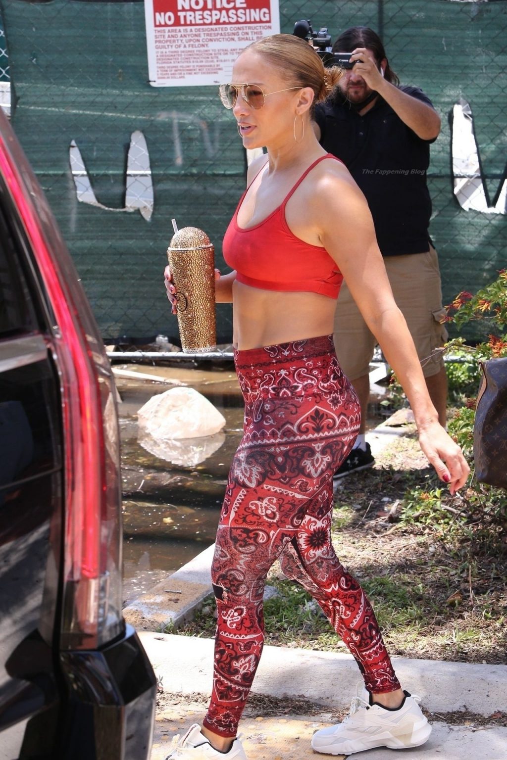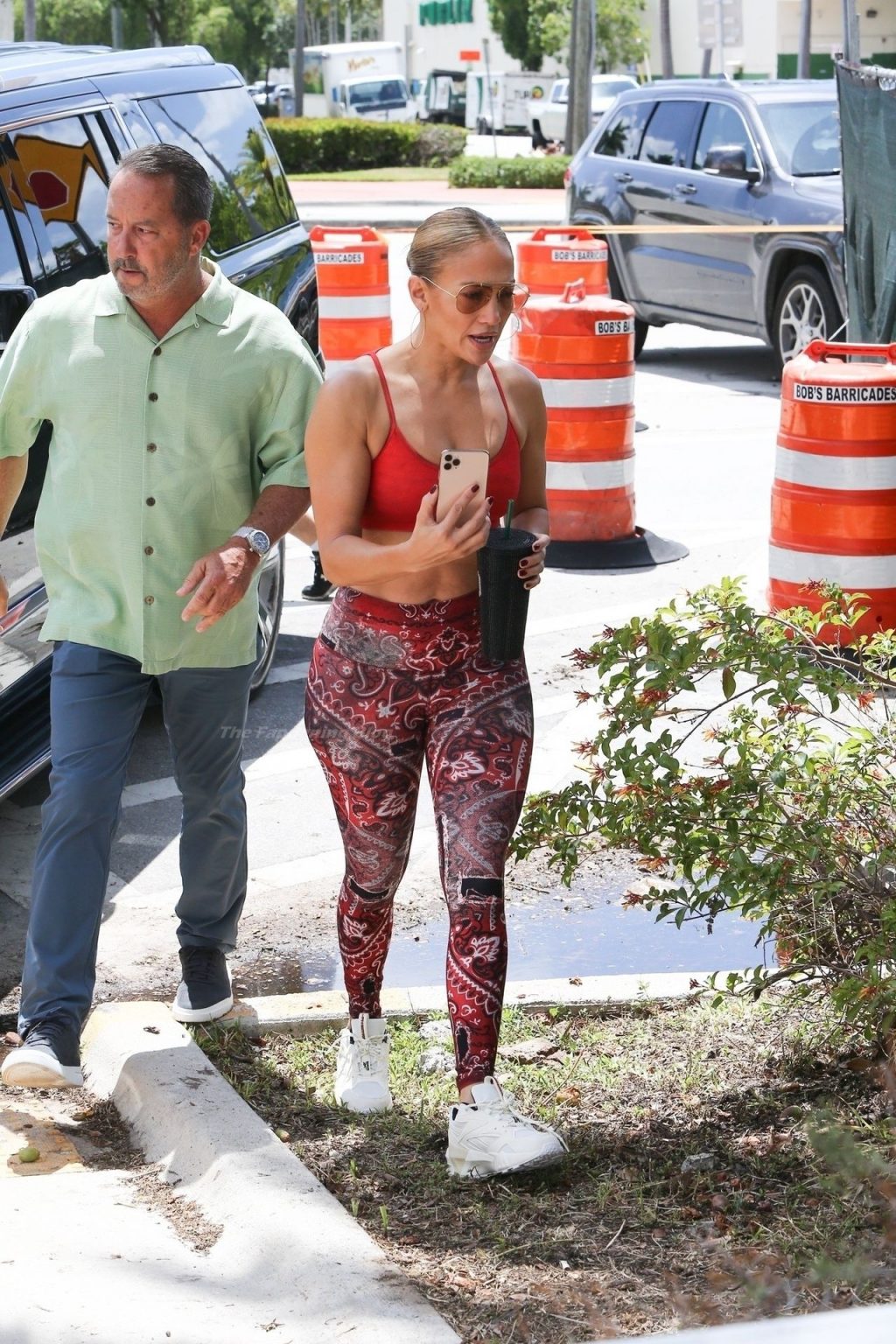 Певица Дженнифер Лопес посещает спортзал, демонстрируя свои знаменитые формы в Майами, 10.06.2021.