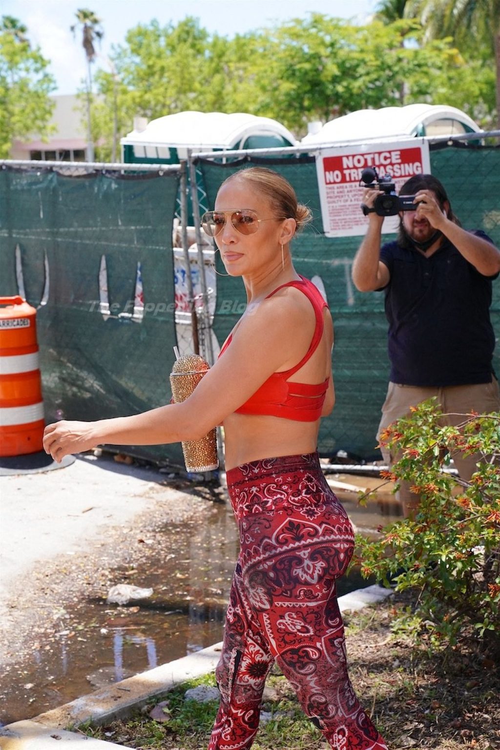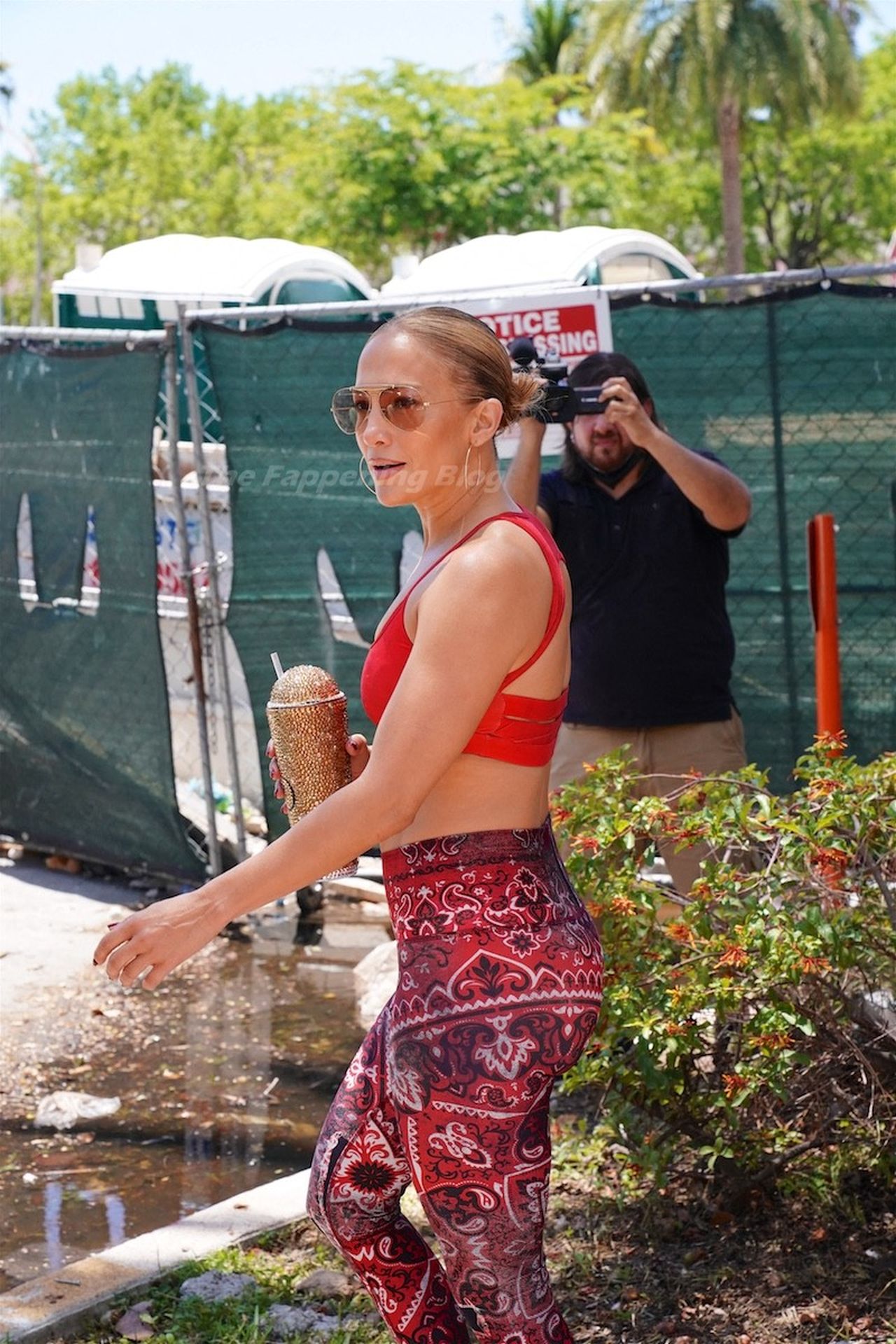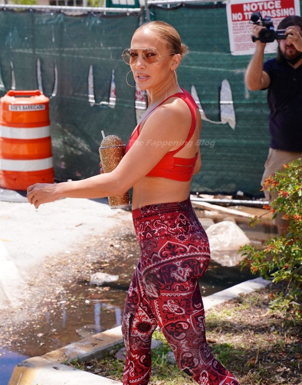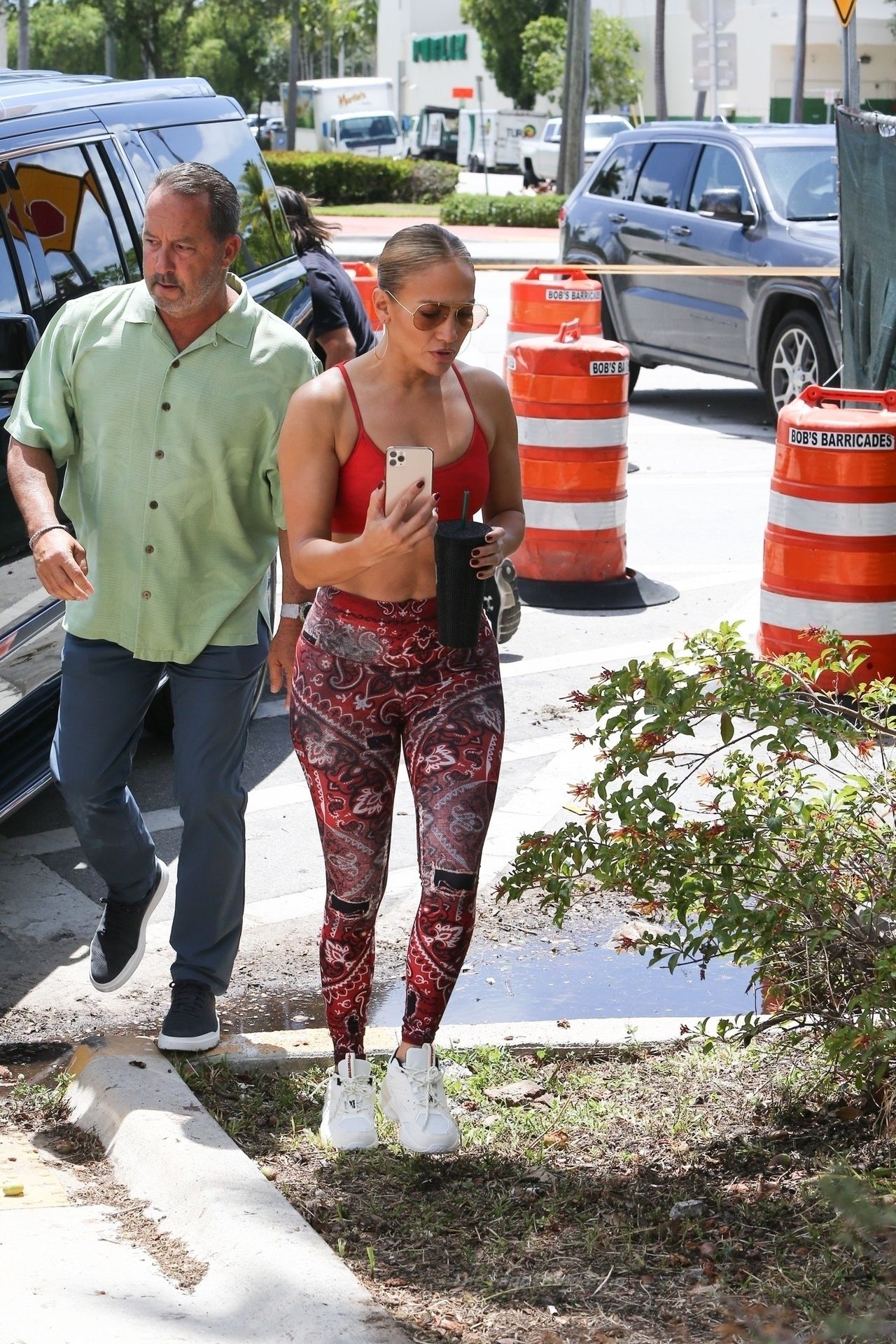 Певица Дженнифер Лопес посещает спортзал, демонстрируя свои знаменитые формы в Майами, 10.06.2021.
