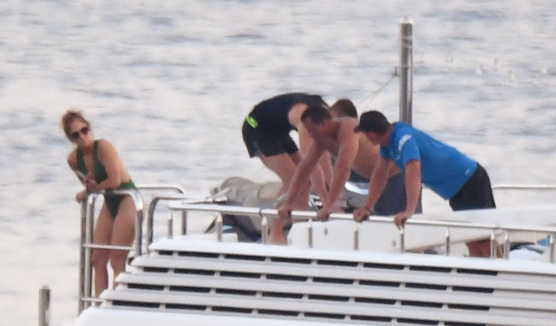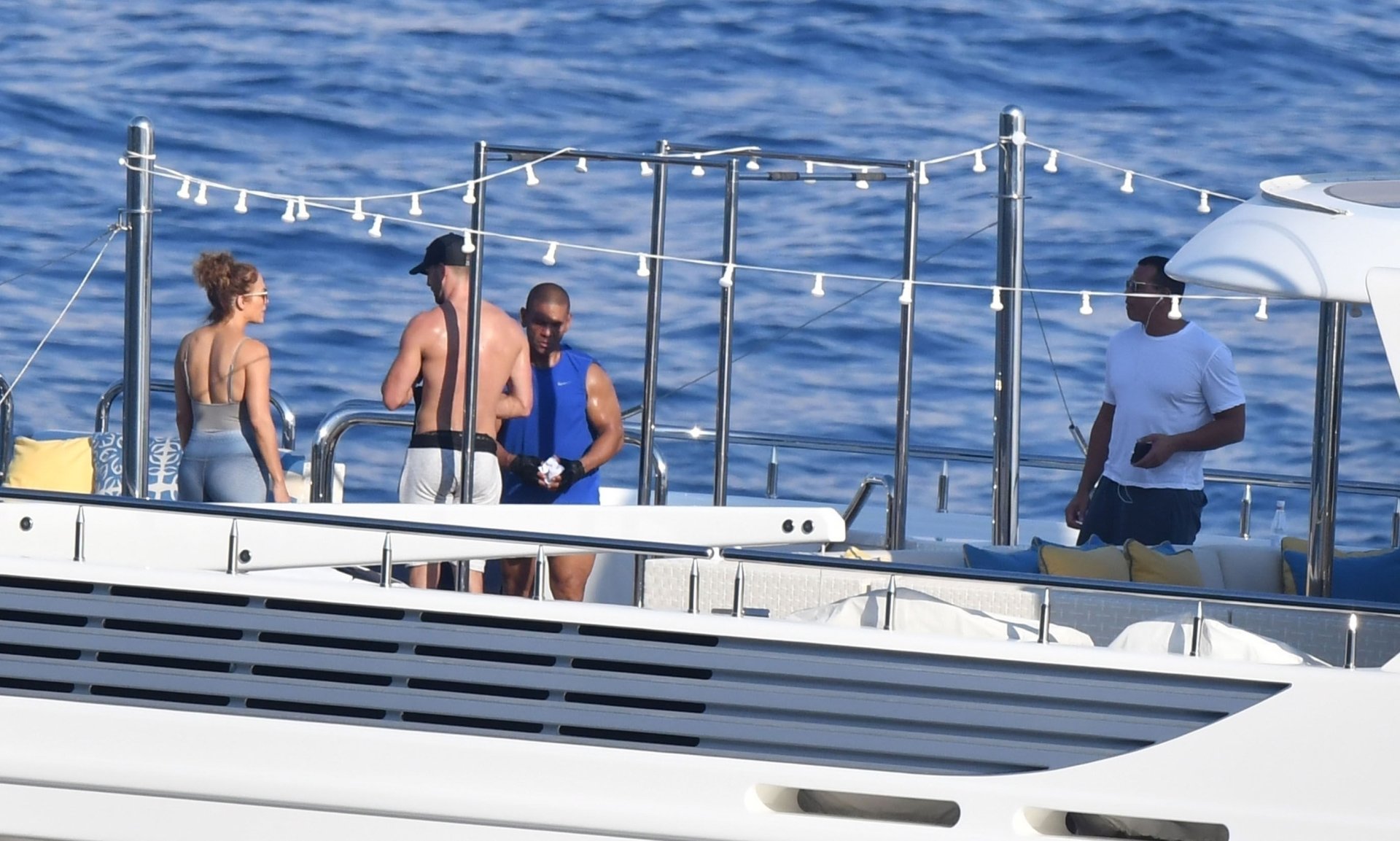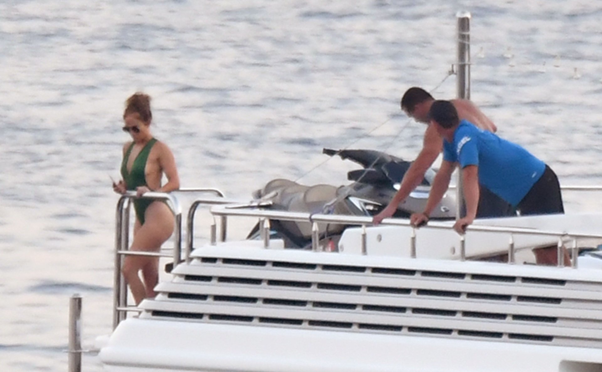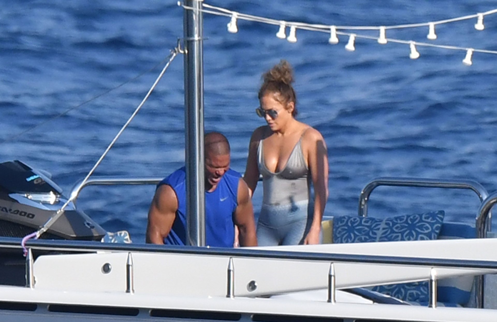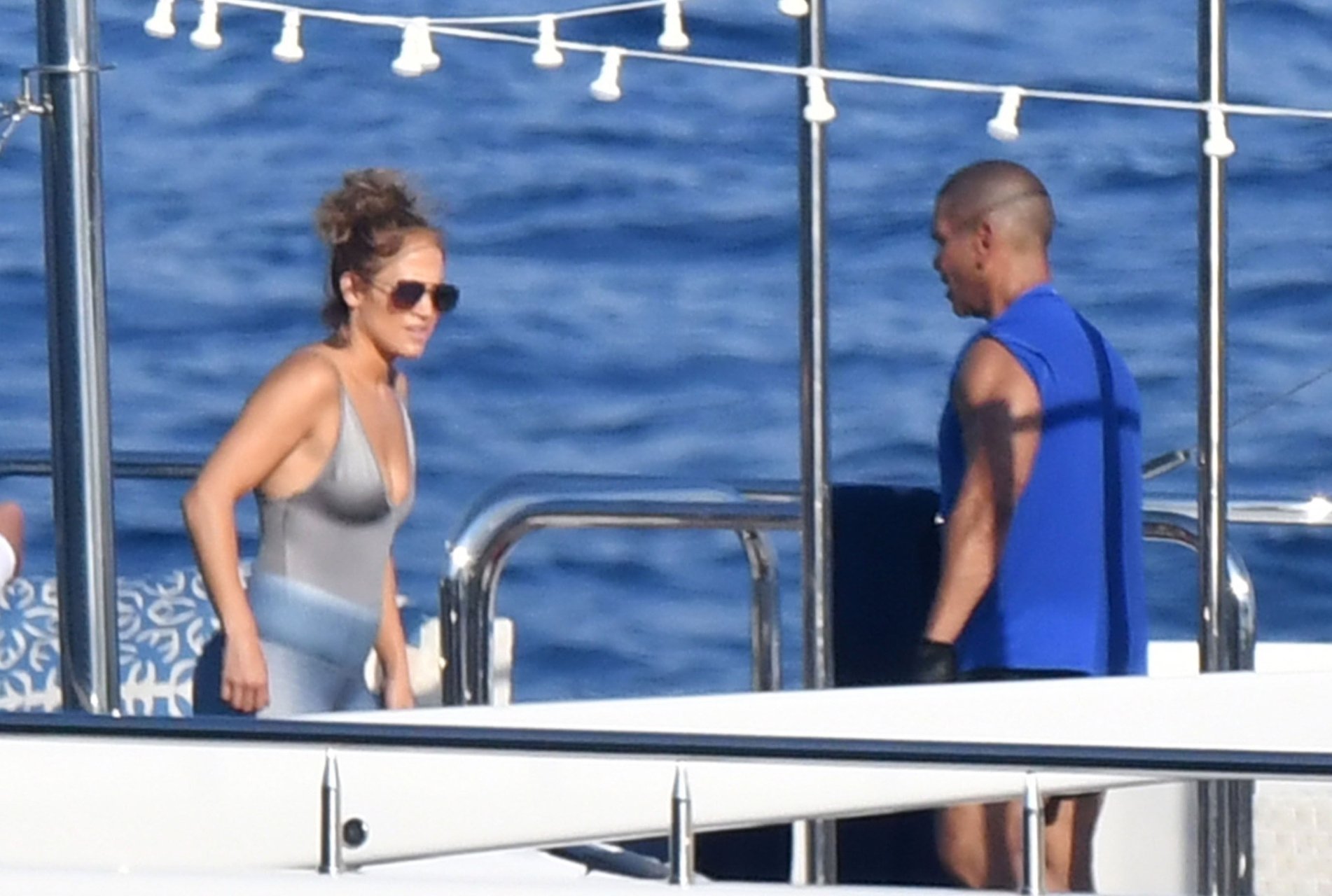 Дженнифер выглядела стильно в тёмных солнцезащитных очках и зелёном цельном купальнике, демонстрируя пышное декольте, пока занималась подтягиваниями вместе со своим менеджером и музыкальным продюсером Бенни Мединой. Алекс был замечен прыгающим с яхты и плывущим, а Джей-Ло снимала это на телефон.