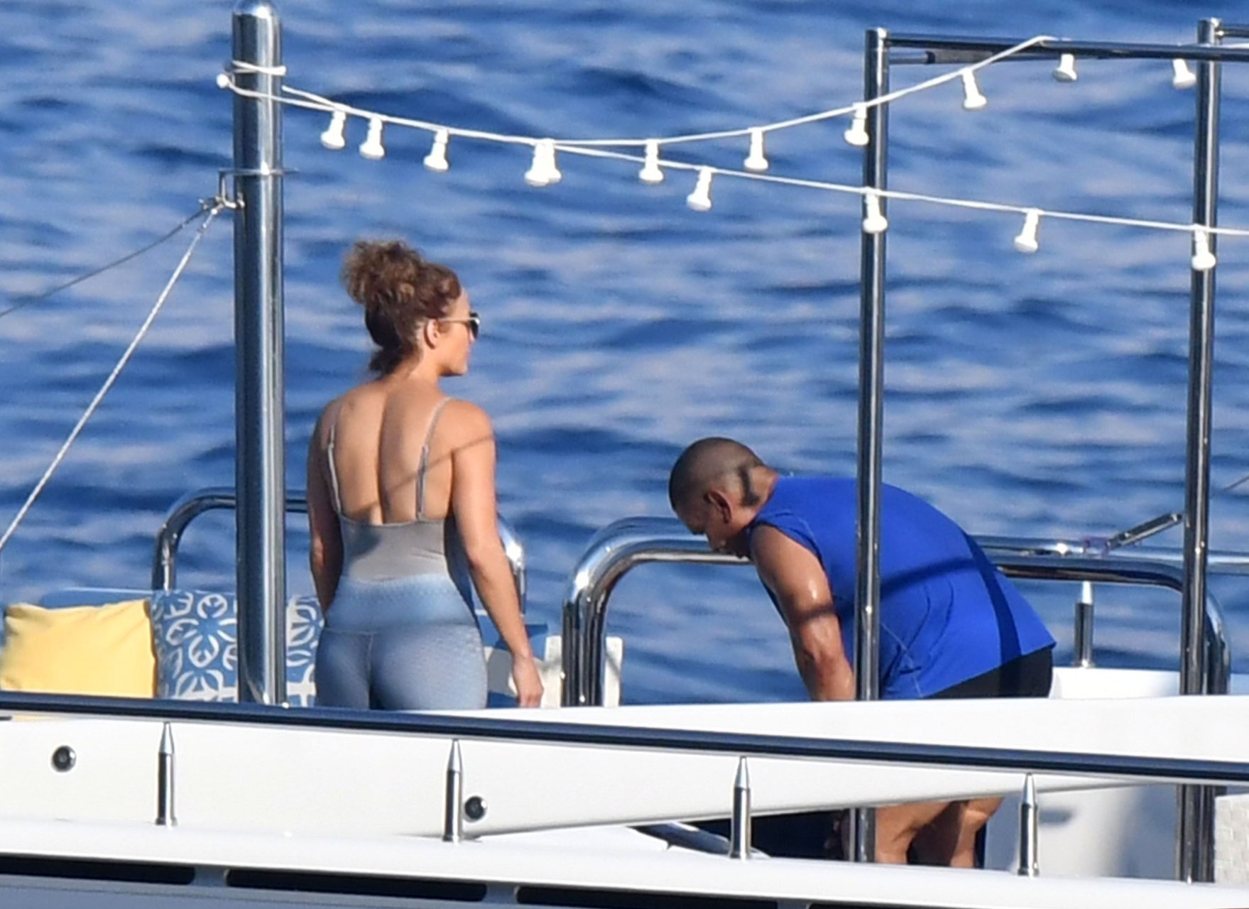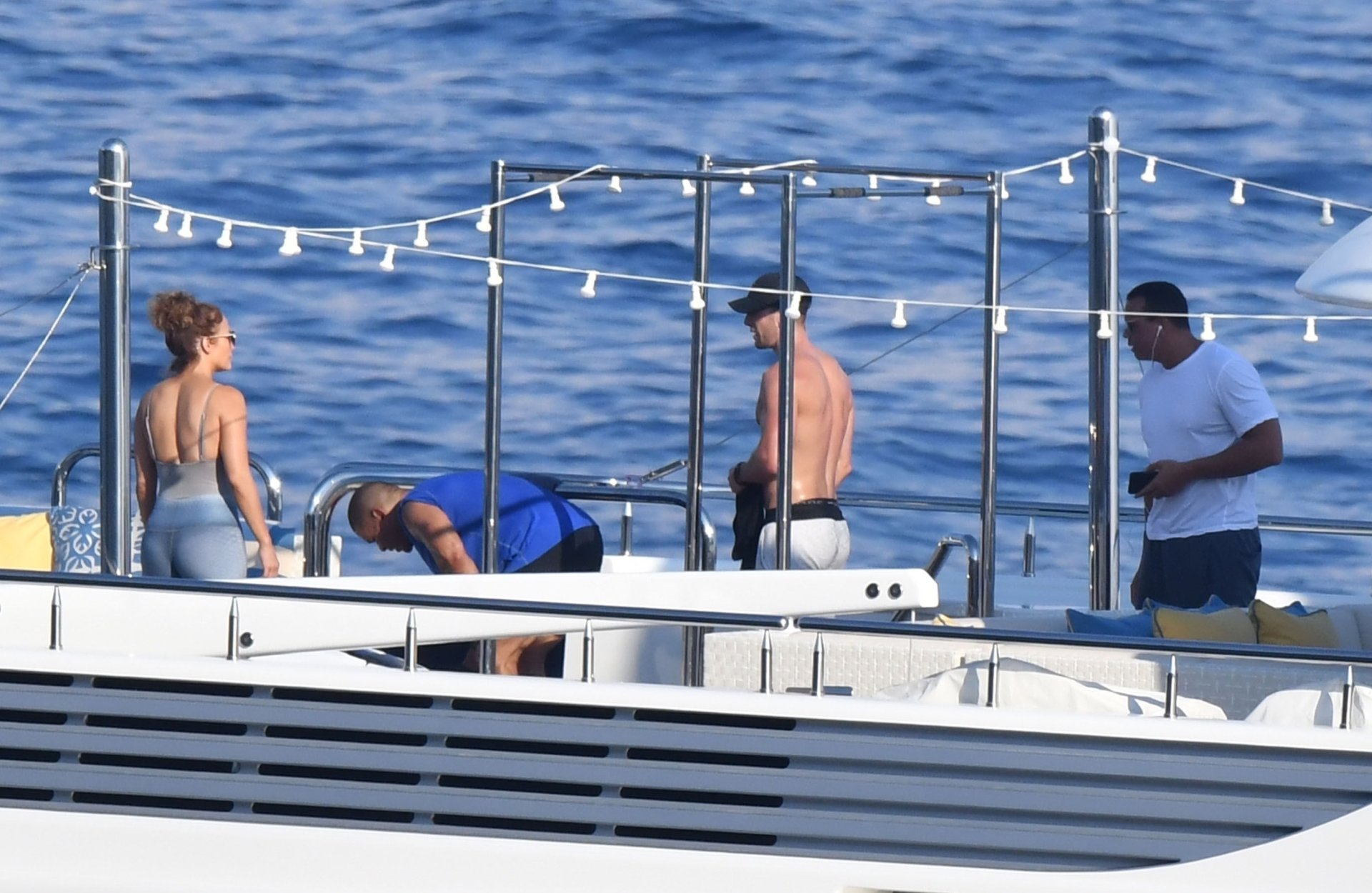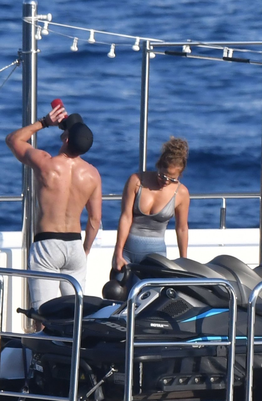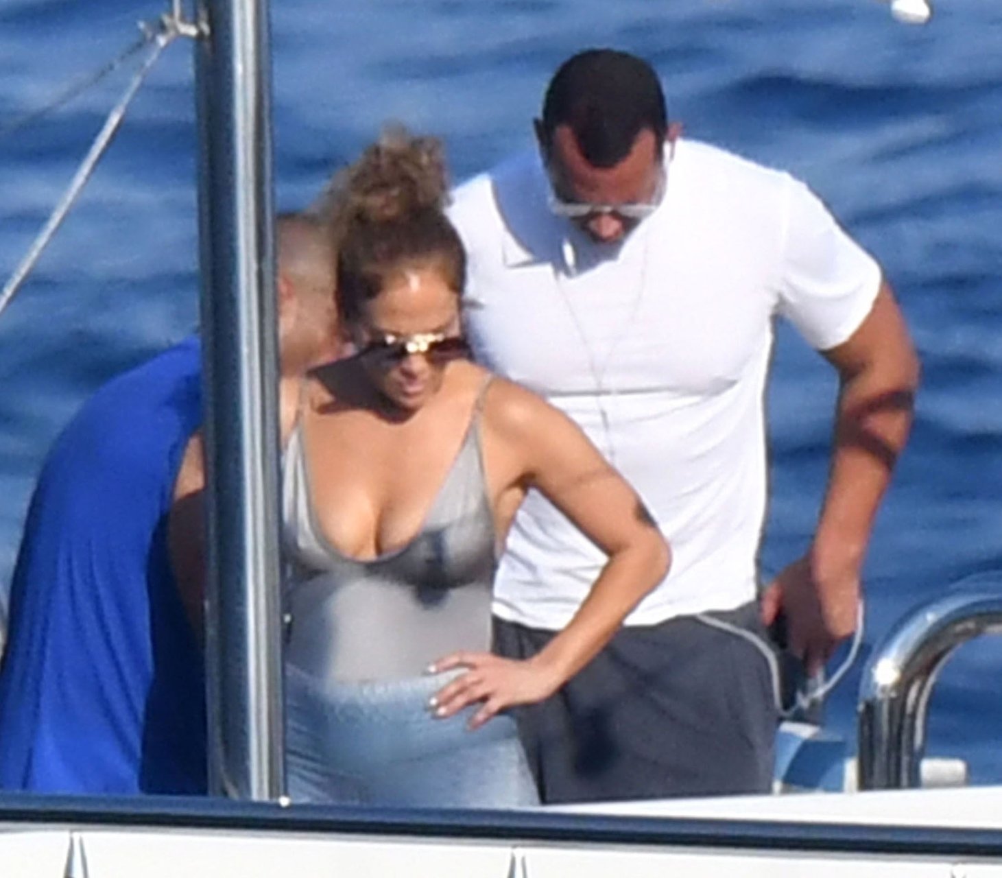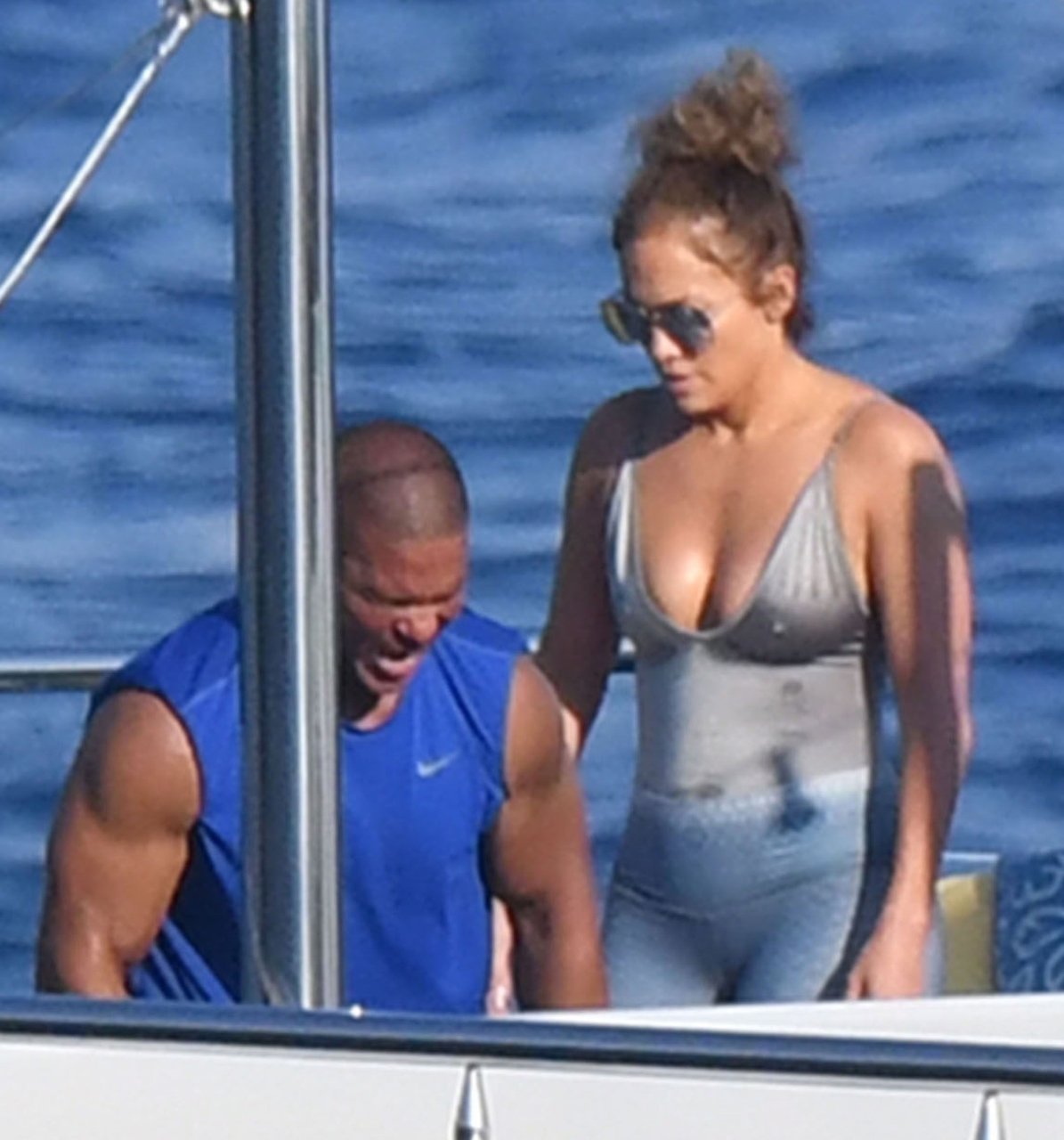 Дженнифер выглядела стильно в тёмных солнцезащитных очках и зелёном цельном купальнике, демонстрируя пышное декольте, пока занималась подтягиваниями вместе со своим менеджером и музыкальным продюсером Бенни Мединой. Алекс был замечен прыгающим с яхты и плывущим, а Джей-Ло снимала это на телефон.