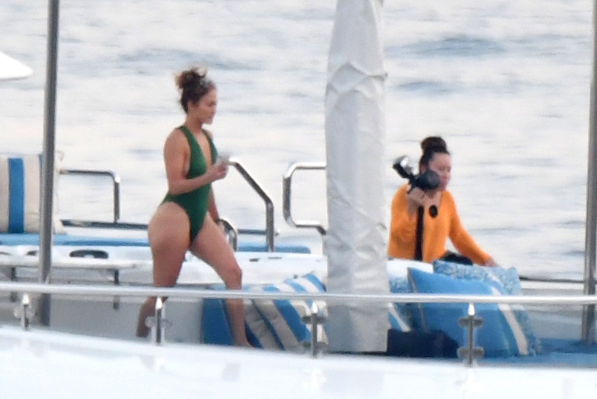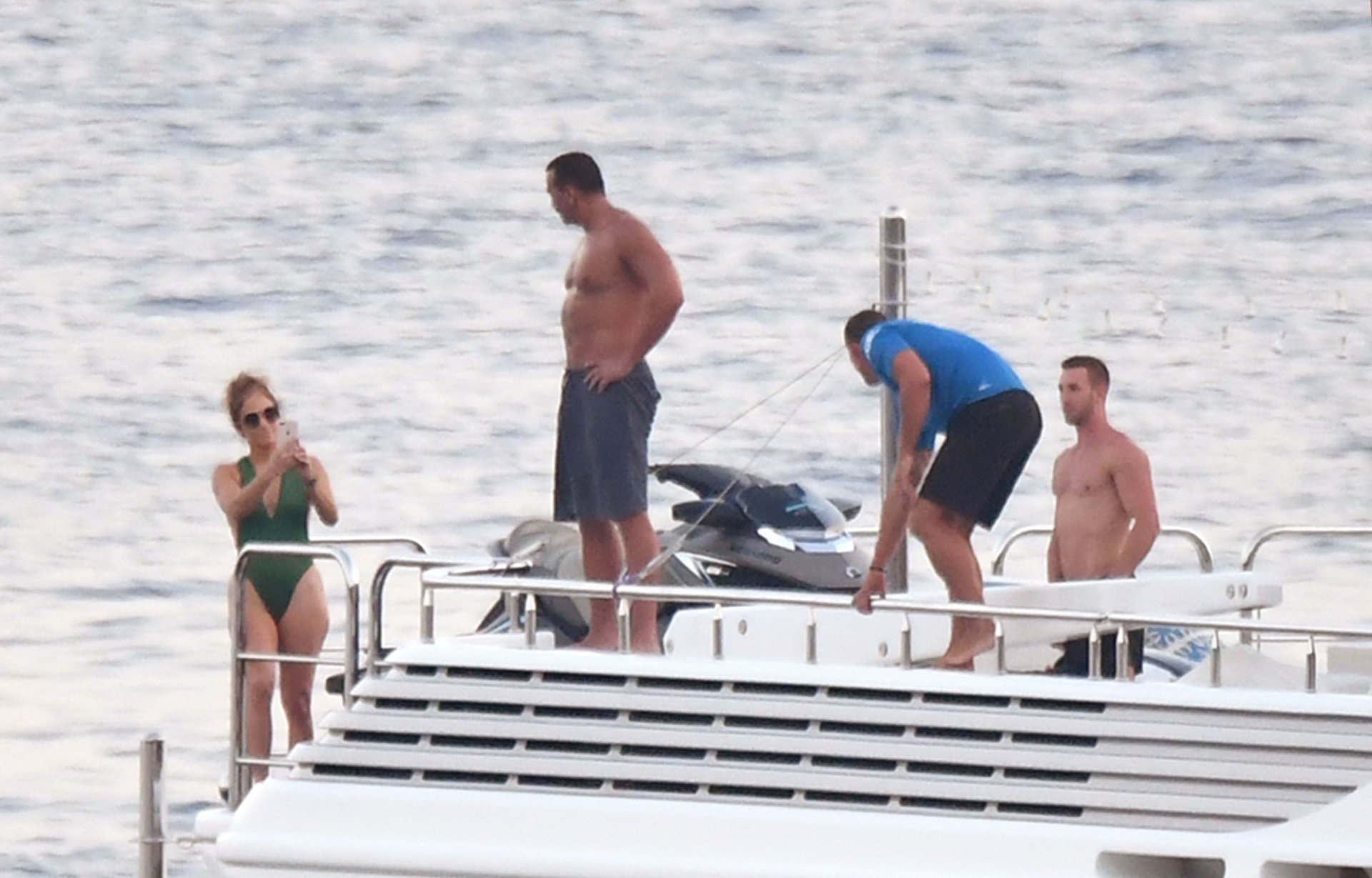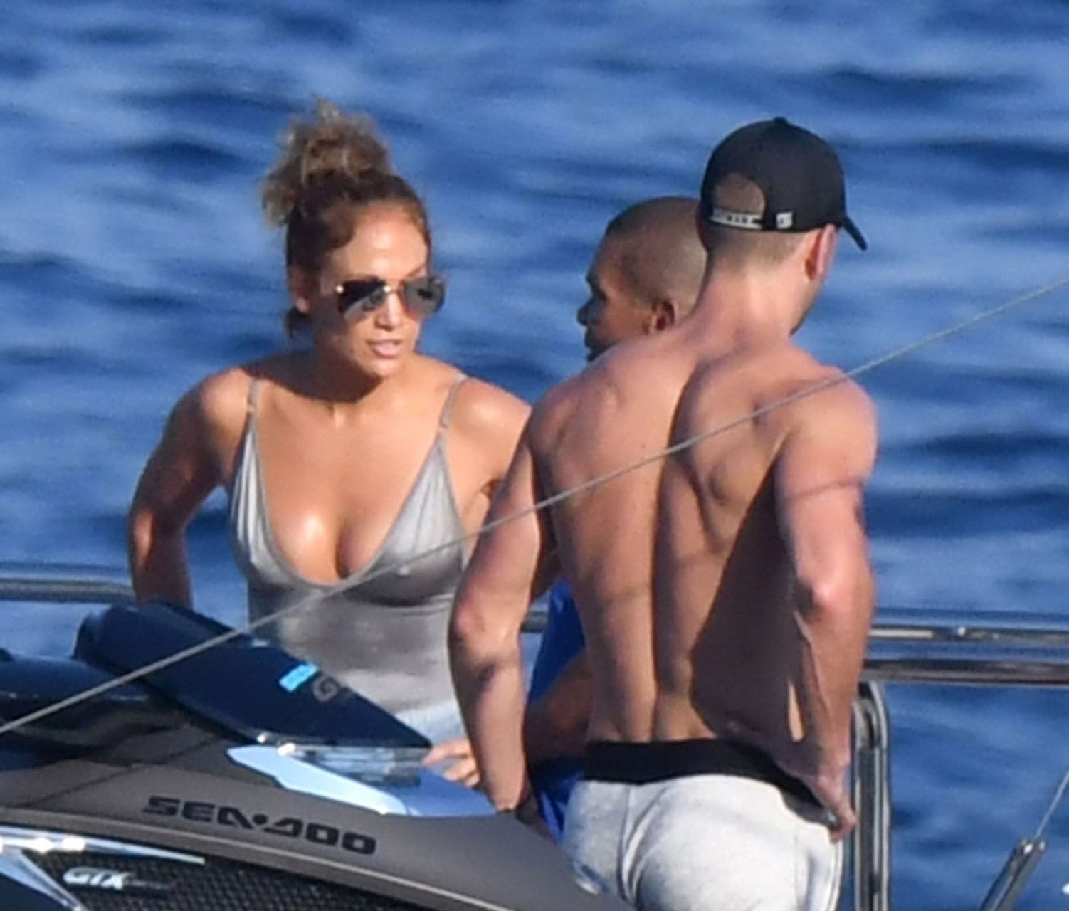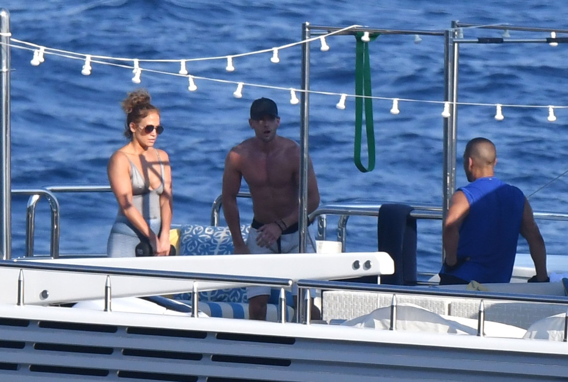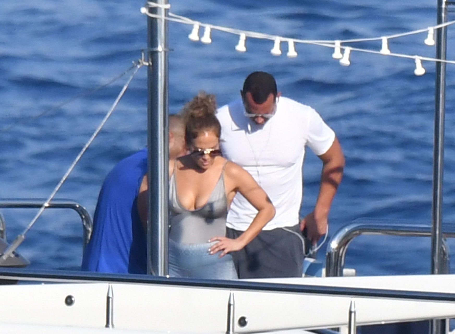 Дженнифер выглядела стильно в тёмных солнцезащитных очках и зелёном цельном купальнике, демонстрируя пышное декольте, пока занималась подтягиваниями вместе со своим менеджером и музыкальным продюсером Бенни Мединой. Алекс был замечен прыгающим с яхты и плывущим, а Джей-Ло снимала это на телефон.
