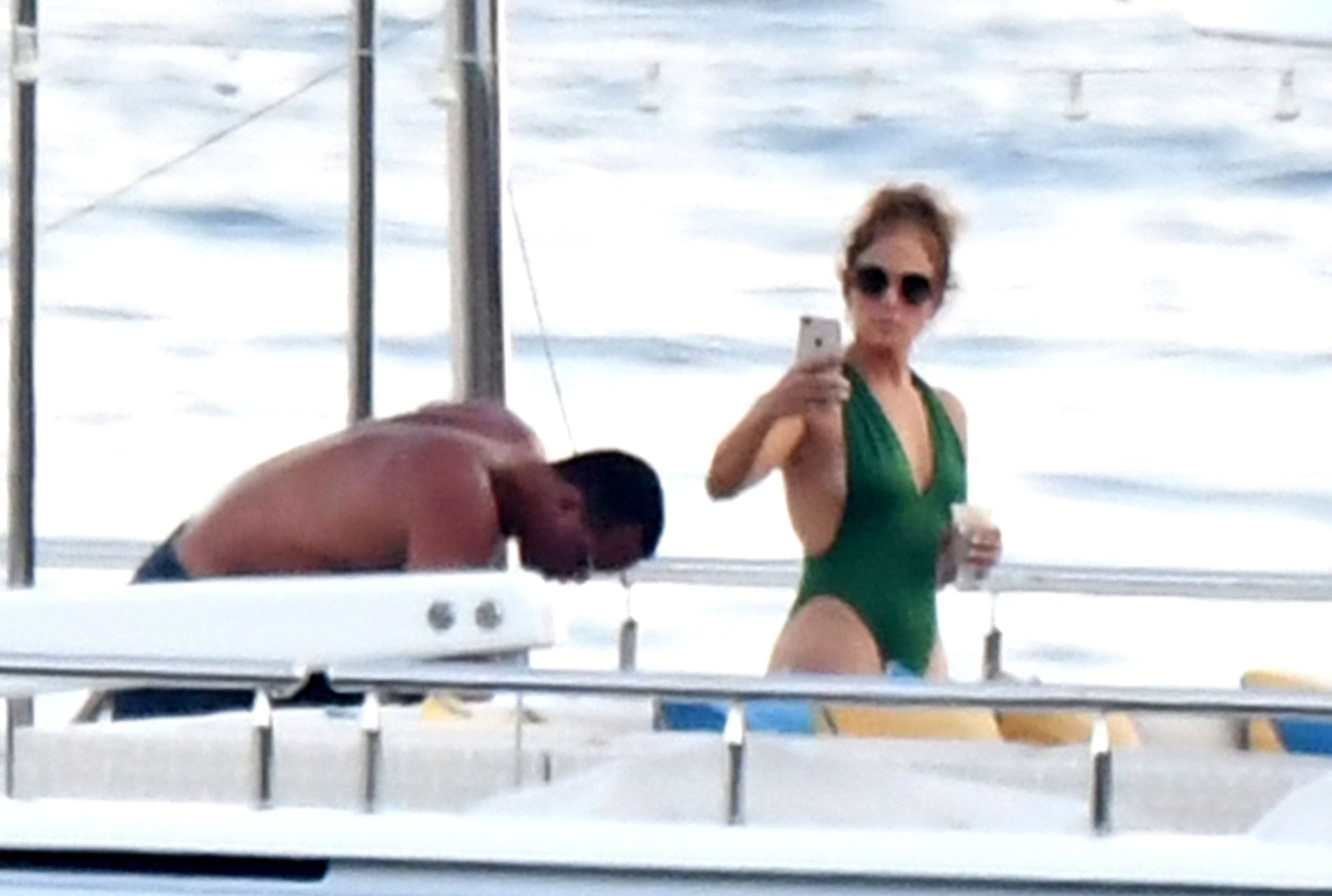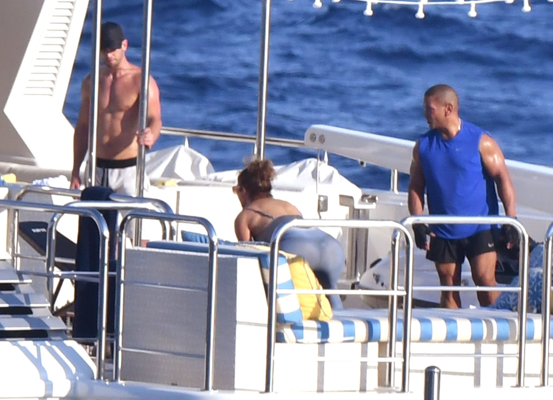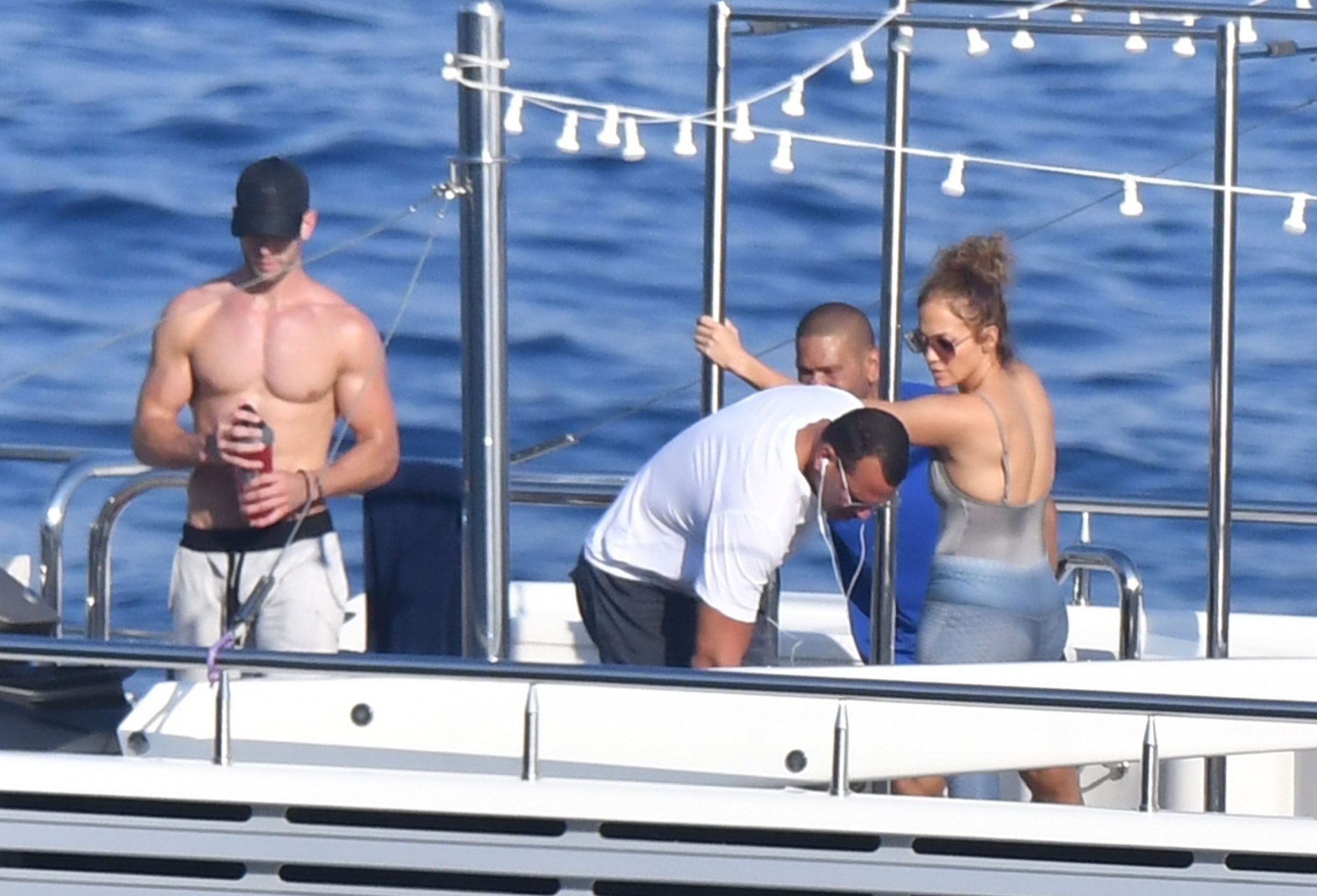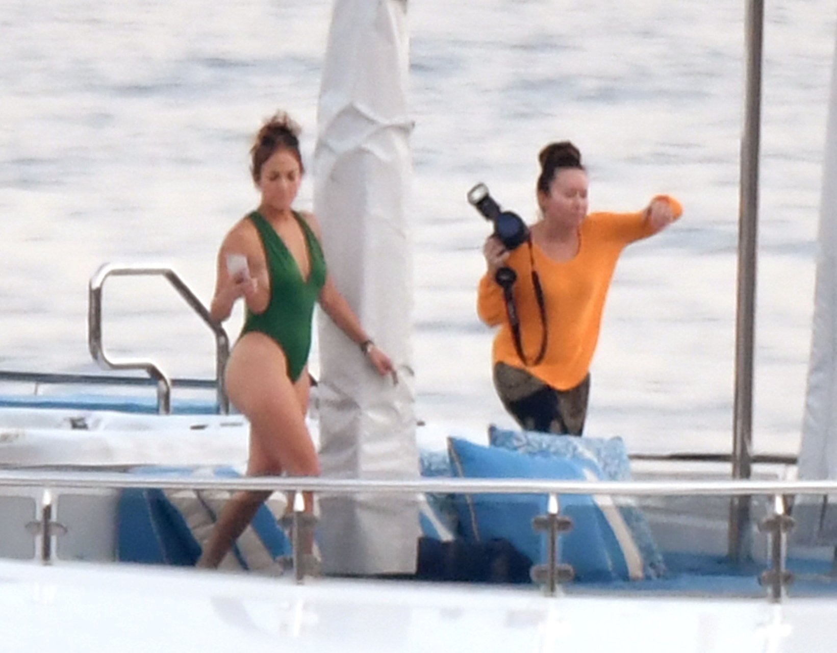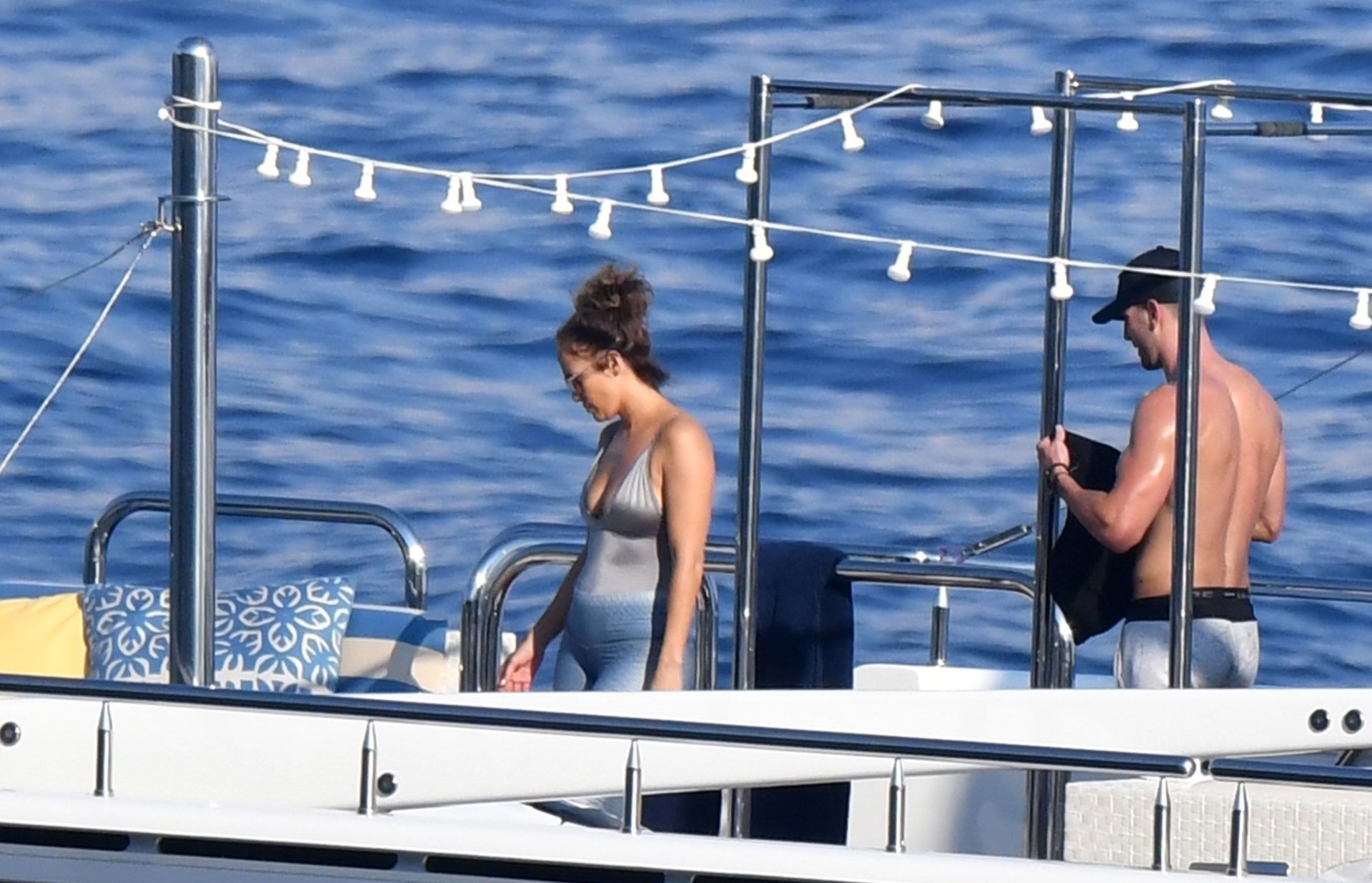 Дженнифер выглядела стильно в тёмных солнцезащитных очках и зелёном цельном купальнике, демонстрируя пышное декольте, пока занималась подтягиваниями вместе со своим менеджером и музыкальным продюсером Бенни Мединой. Алекс был замечен прыгающим с яхты и плывущим, а Джей-Ло снимала это на телефон.