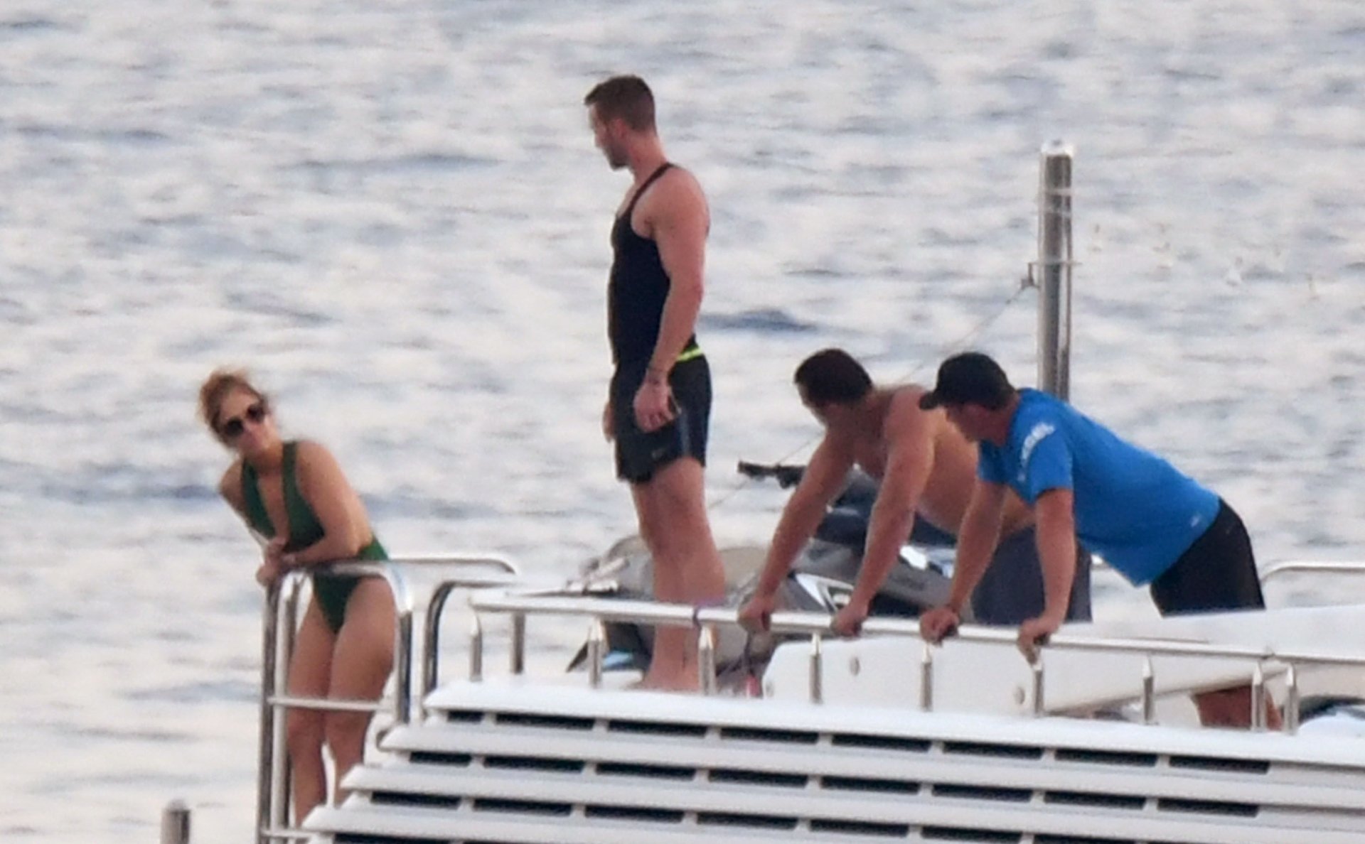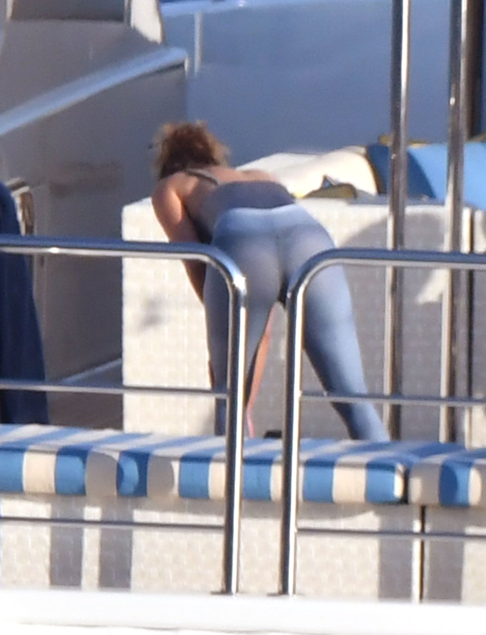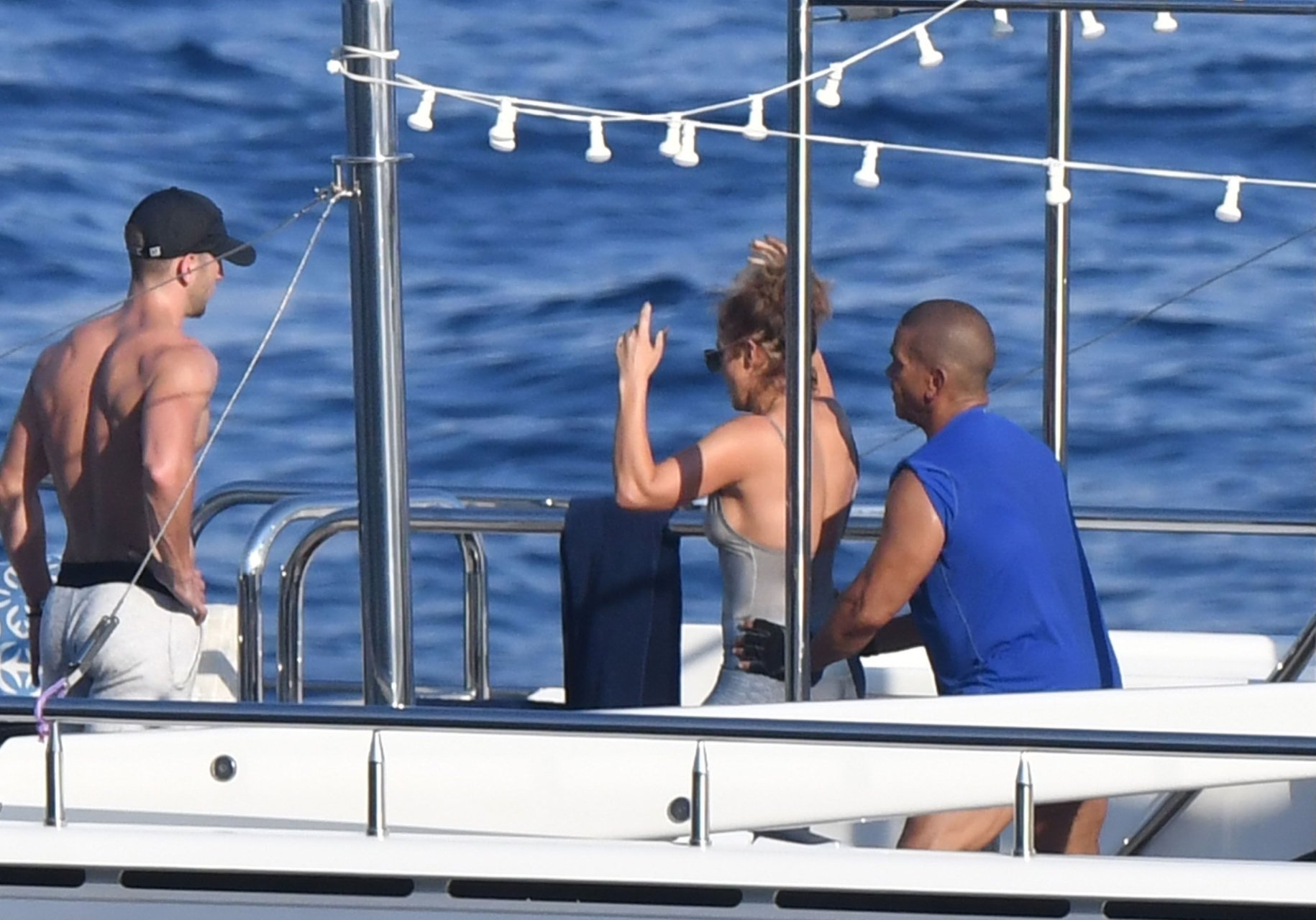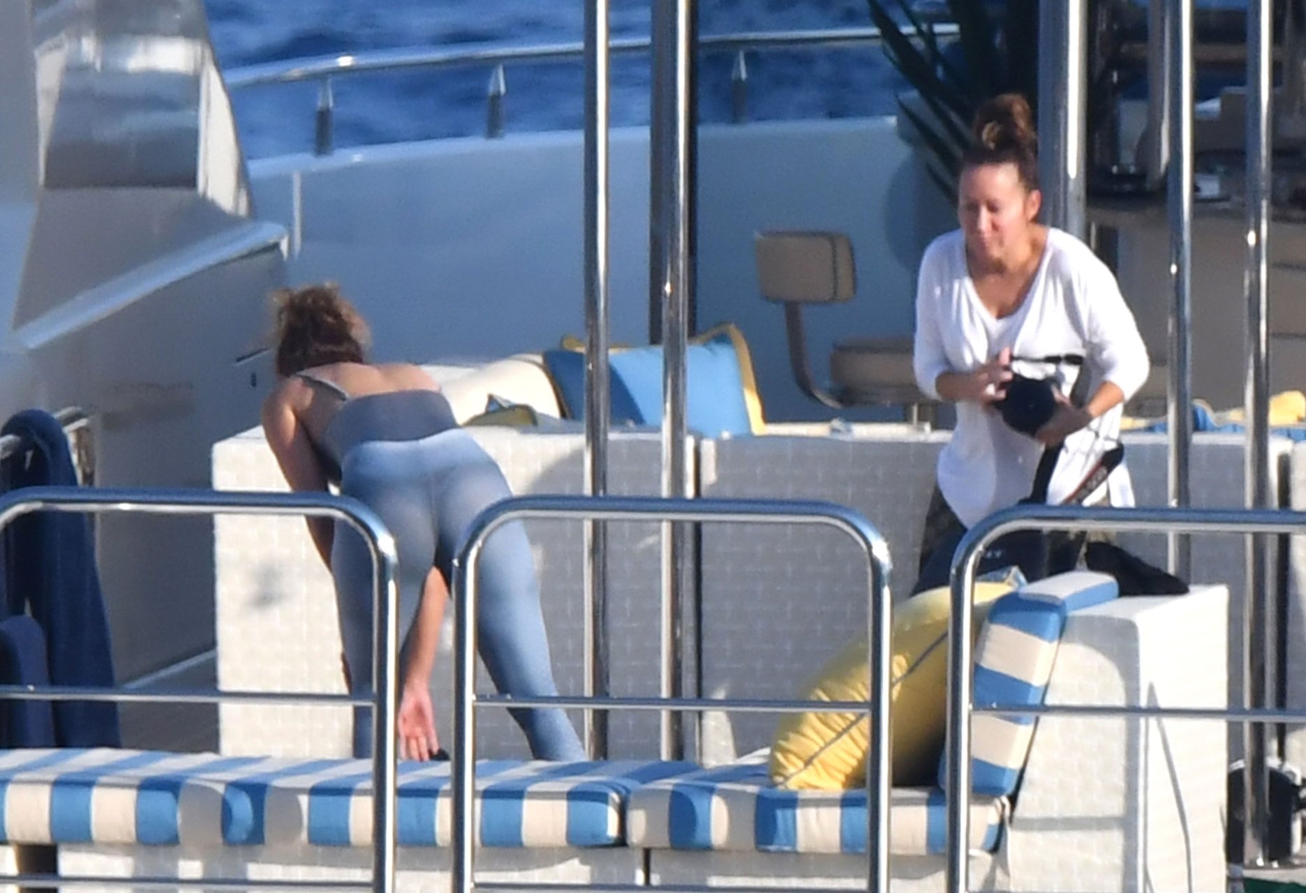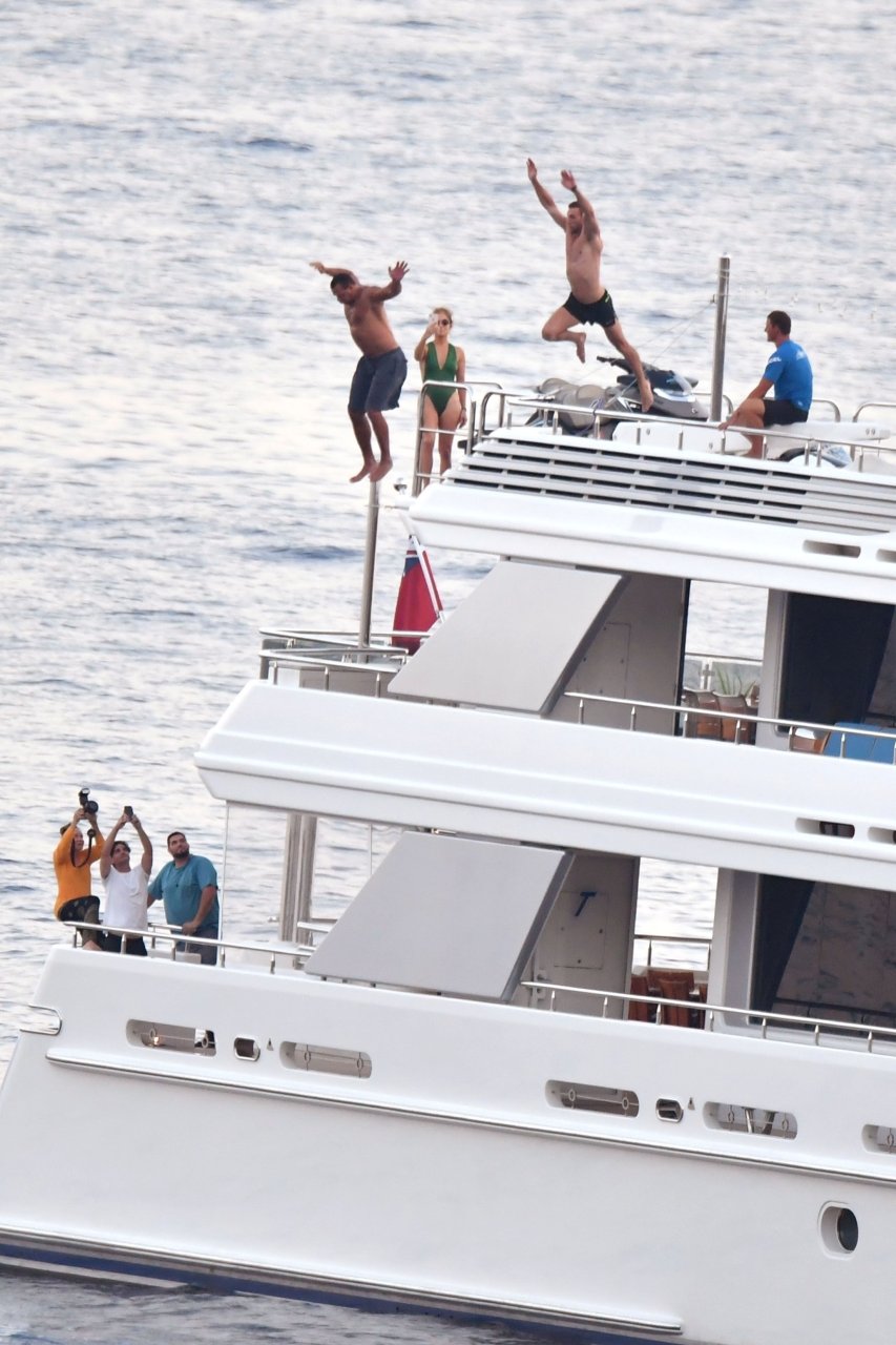 Дженнифер выглядела стильно в тёмных солнцезащитных очках и зелёном цельном купальнике, демонстрируя пышное декольте, пока занималась подтягиваниями вместе со своим менеджером и музыкальным продюсером Бенни Мединой. Алекс был замечен прыгающим с яхты и плывущим, а Джей-Ло снимала это на телефон.