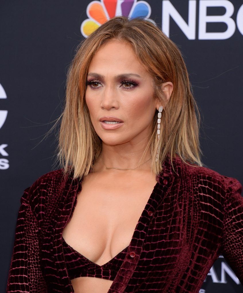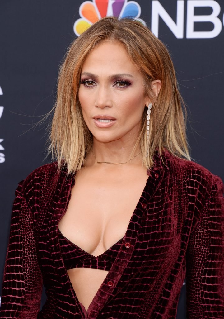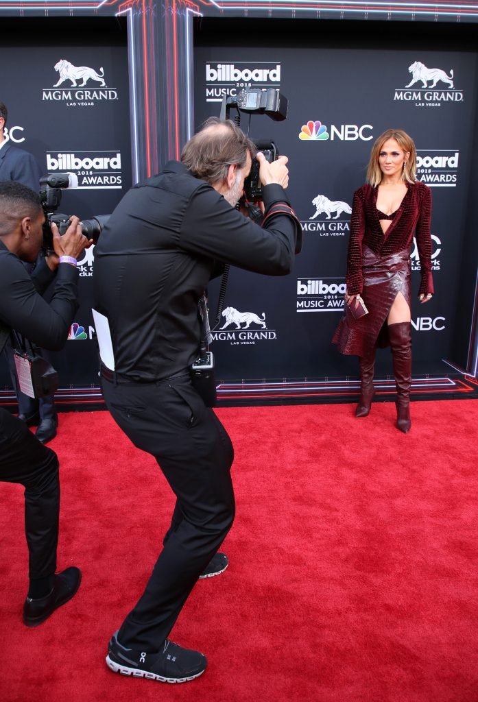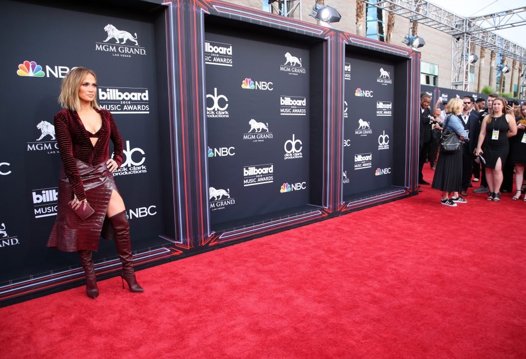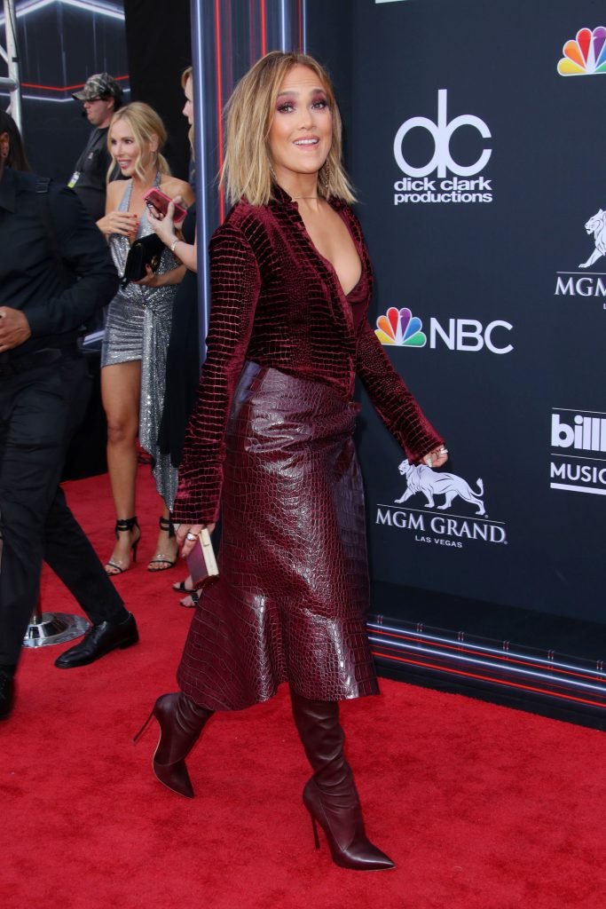 Постаревшая Дженнифер Лопес продемонстрировала своё декольте на церемонии Billboard Music Awards в Лас-Вегасе, 20.05.2018. Кстати, Дженнифер Лопес (48) пришла на красную дорожку одна. Для мероприятия певица выбрала платье от Роберто Кавалли с кожаными вставками и высокими сапогами.