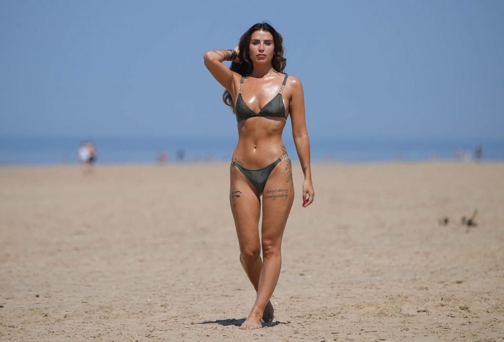 Звезда шоу “Ex On The Beach” Дженни Томпсон была замечена на пляже в Англии, где температура воздуха достигала ошеломляющих 29 градусов по Цельсию, 27.06.2018. Ее сопровождала лучшая подруга и напарница Зои Персивал, и они наслаждались английским солнцем.