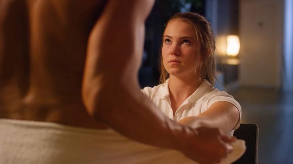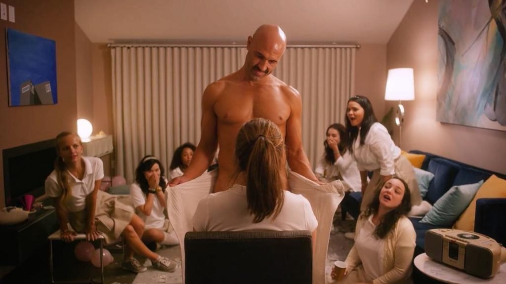 Смотрите сексуальную сцену с Джесс Габор из “Горячее кресло” (2017), где вы можете увидеть, как она дрочит член лысого мужчины перед множеством девушек, сидящих вокруг! Вся сцена немного неловкая, но затем этот парень кончает ей на лицо, и она показывает Кармеле Зумбадо и другим девушкам, как они кончают на её руки.