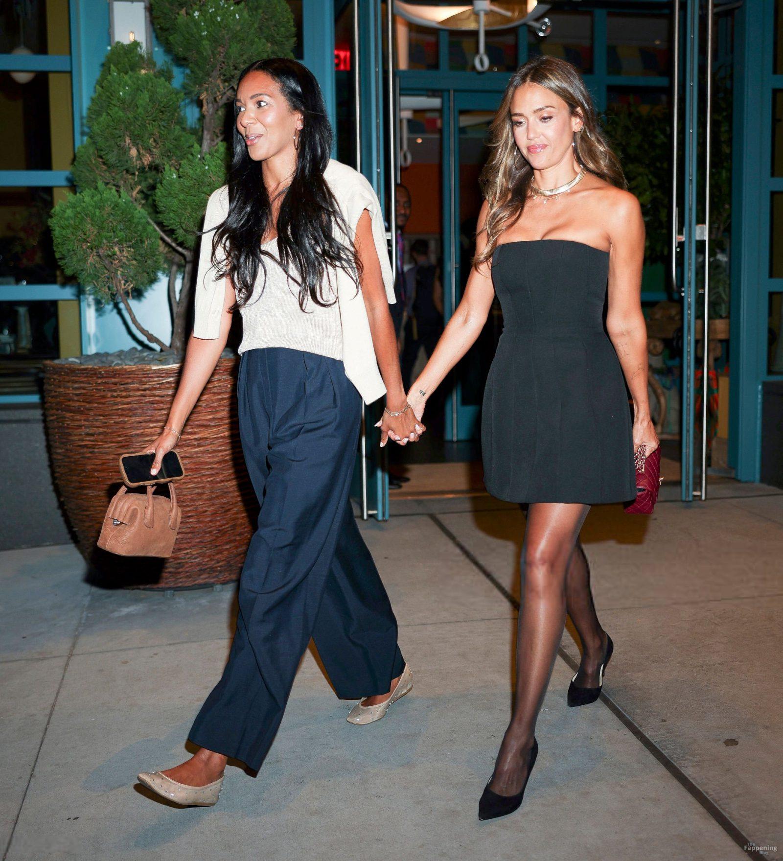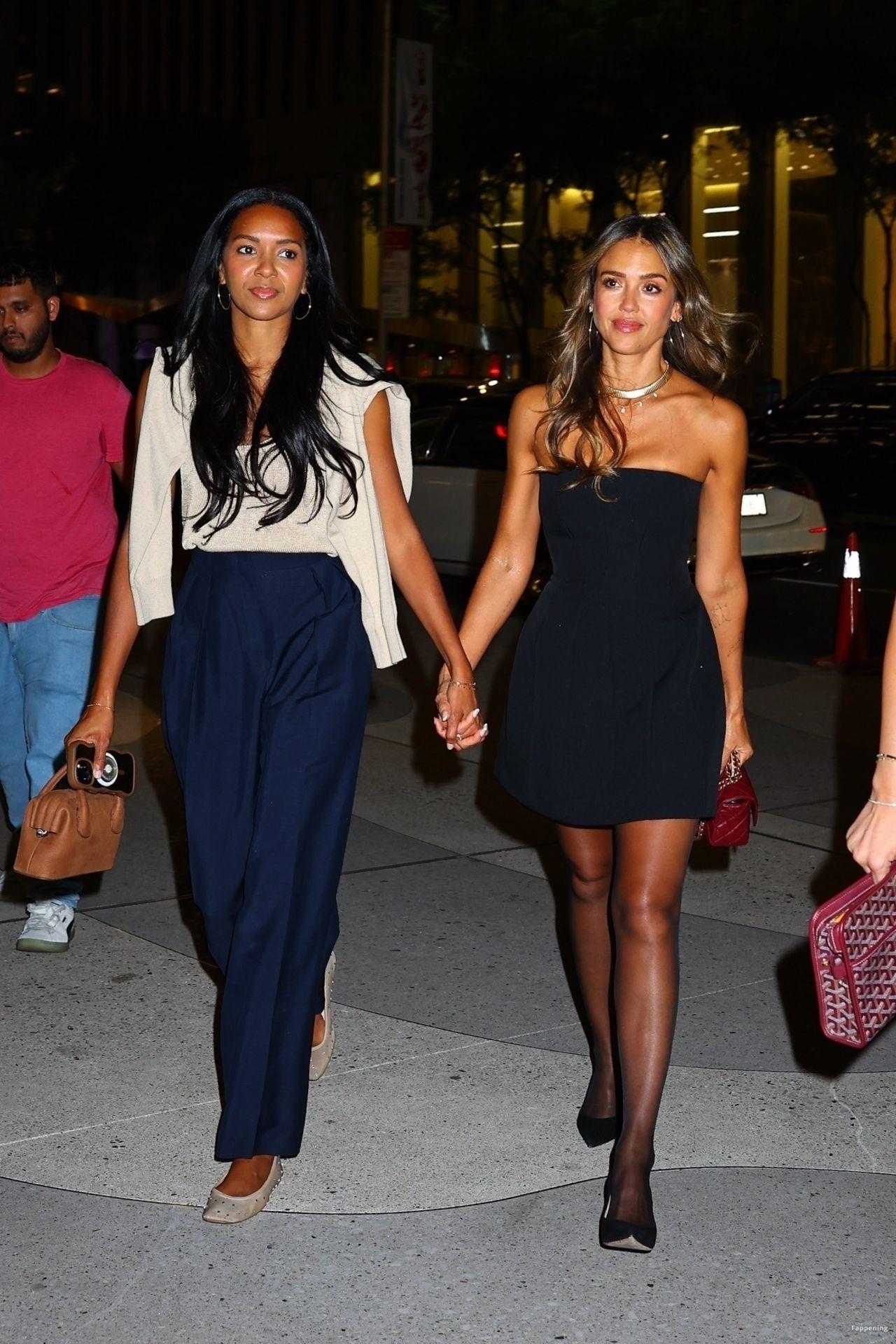 Джессика Альба и Лиззи Мэтис вышли в город на ужин в Нью-Йорке, сделав паузу в пресс-туре нового шоу «Честные ремонты». Джессика Альба в эффектном черном платье без бретелек, прозрачных колготках и на шпильках, демонстрируя безупречные ноги.