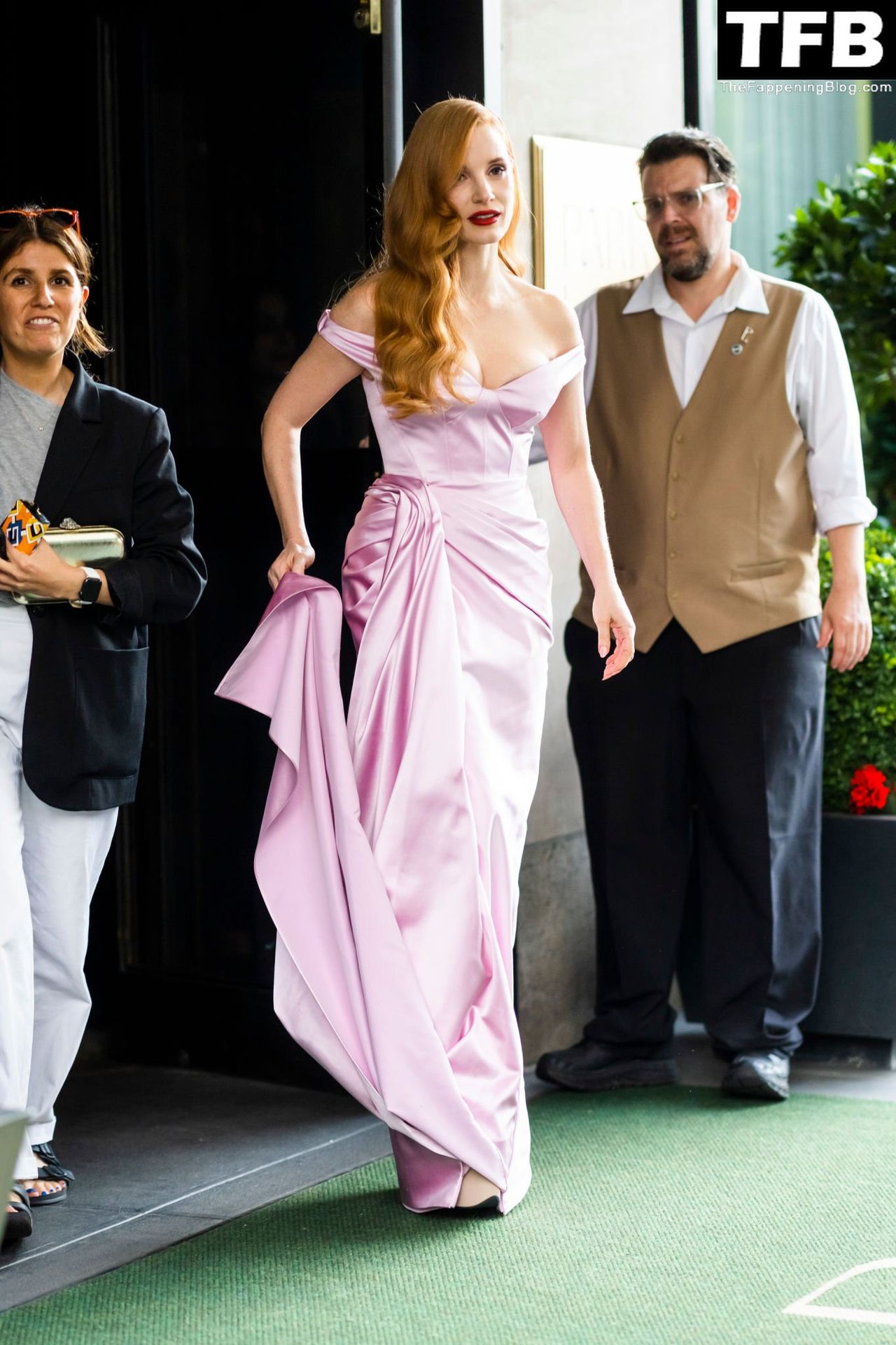 45-летняя недавняя обладательница Оскара вышла на красную дорожку перед церемонией награждения, где она будет выступать на сцене. Джессика известна своей любовью к розовому цвету и была сфотографирована в другом шикарном платье того же цвета на показе и обсуждении HBO Scenes From a Marriage в прошлом месяце.