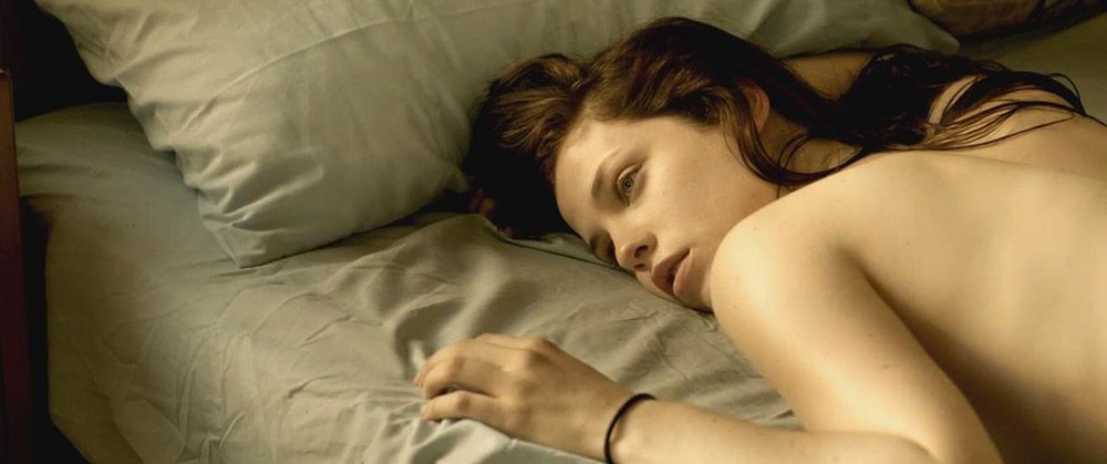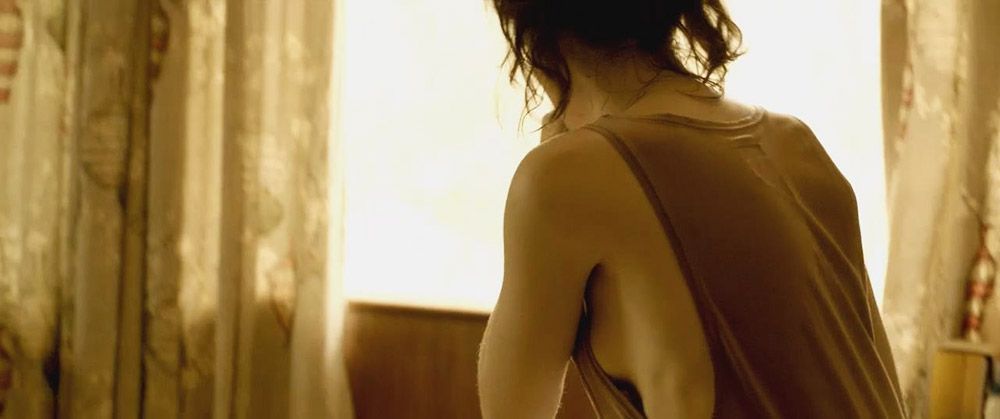 Затем снова сцена секса с голой Джессикой Де Гоу. Она находится под парнем, они занимаются сексом на кровати. Его тело прижато к ее, поэтому мы почти не видим ее груди, хотя и близко.