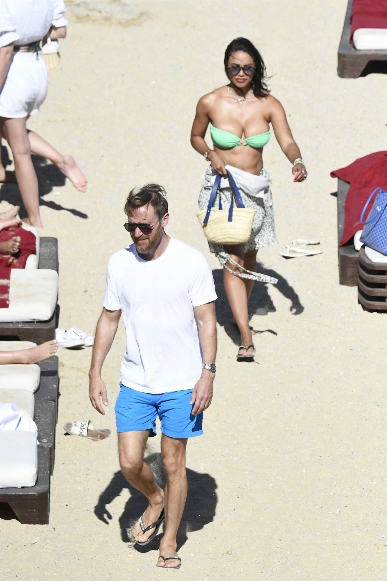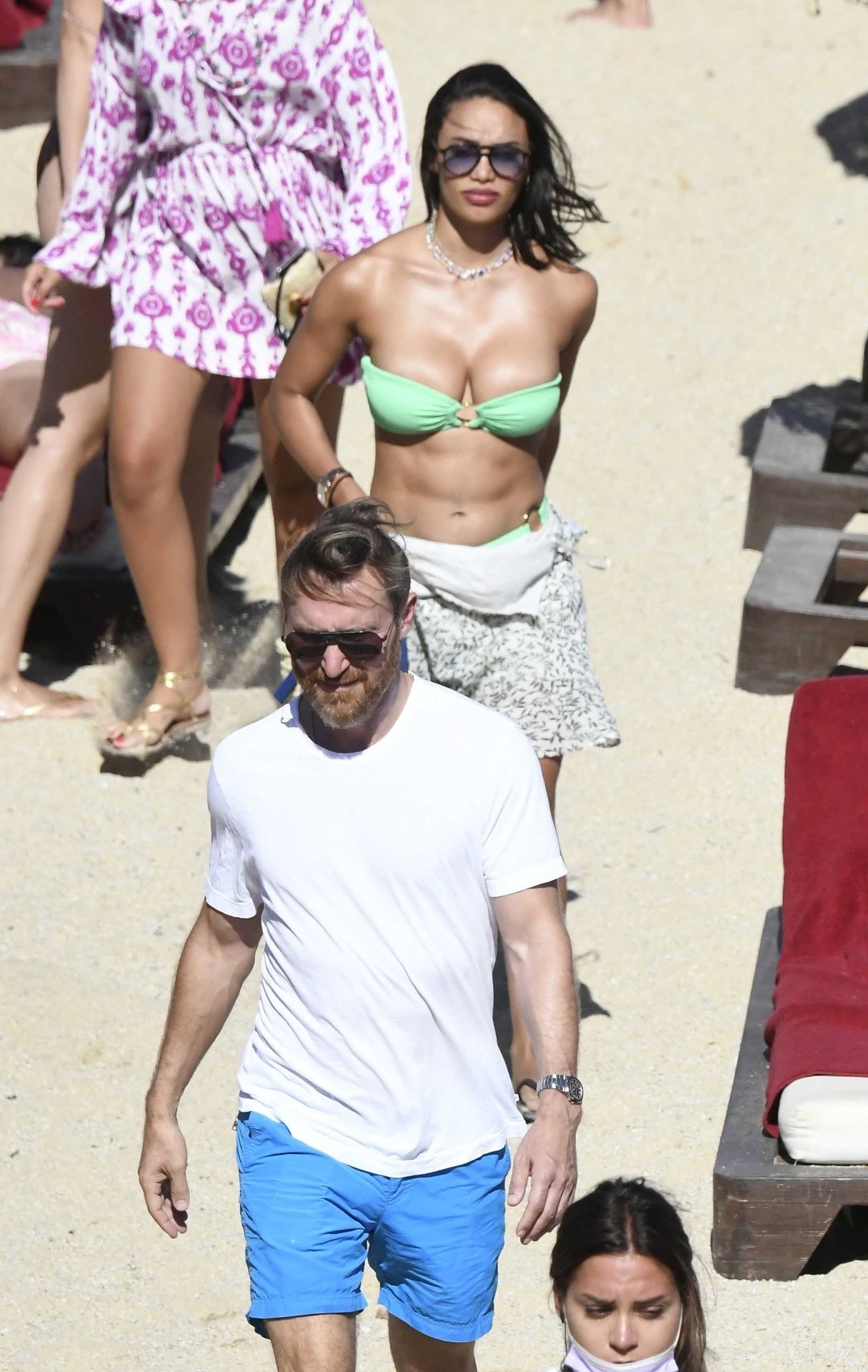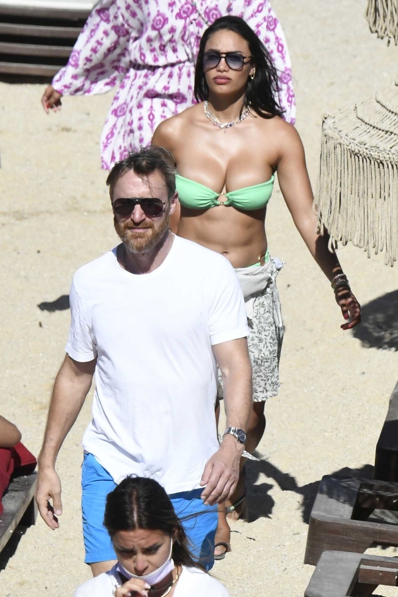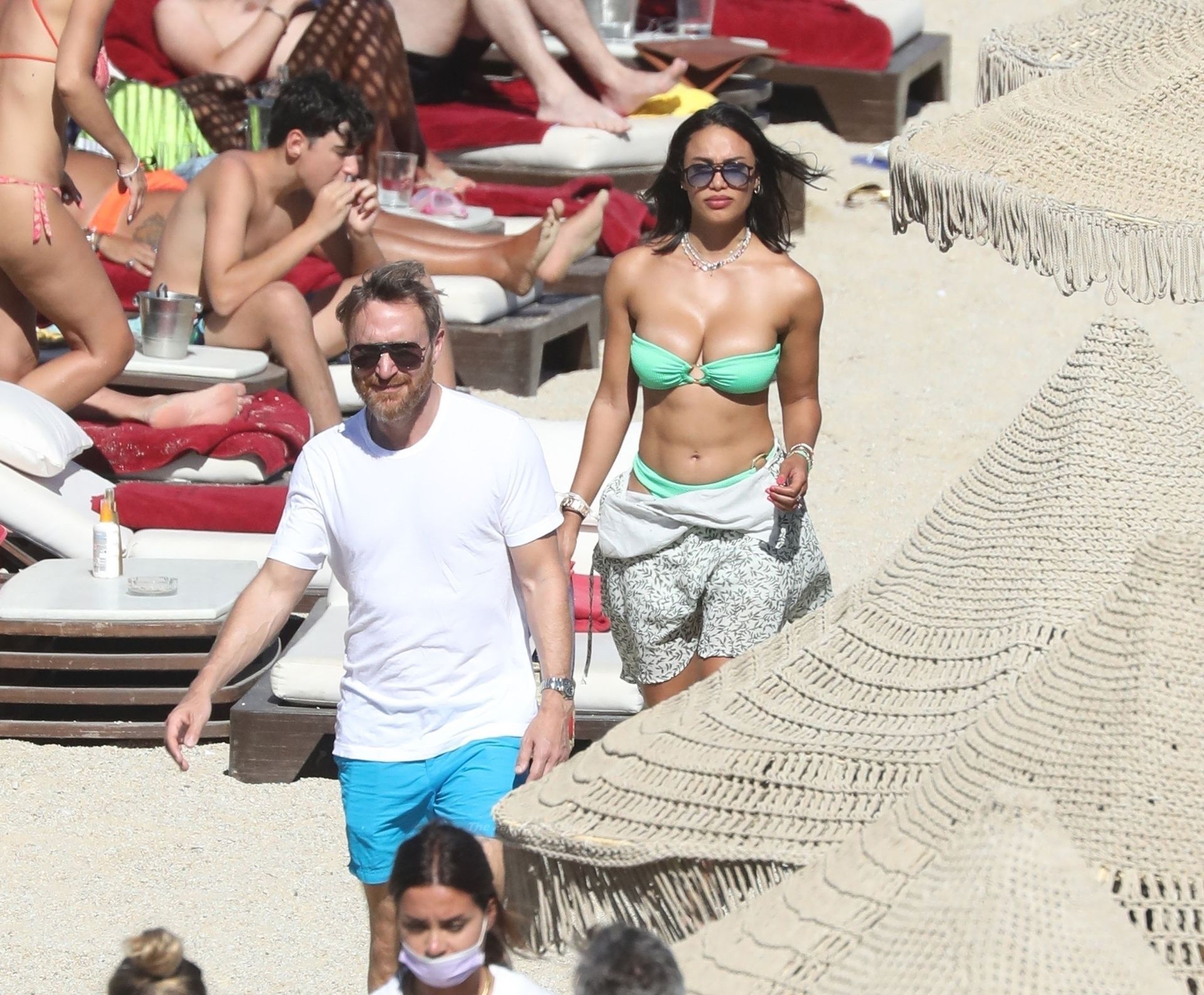 53-летний французский DJ, музыкальный продюсер и автор песен Дэвид Гетта и его девушка, 28-летняя актриса и модель кубинского происхождения Джессика Ледон, заставляют пульс биться чаще страстными объятиями, пока пара наслаждается летним солнцем на Миконосе, 08/08/2021.