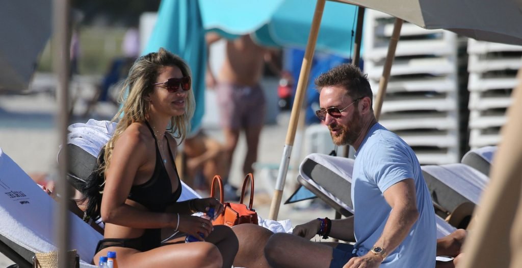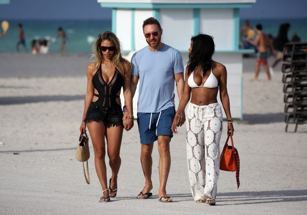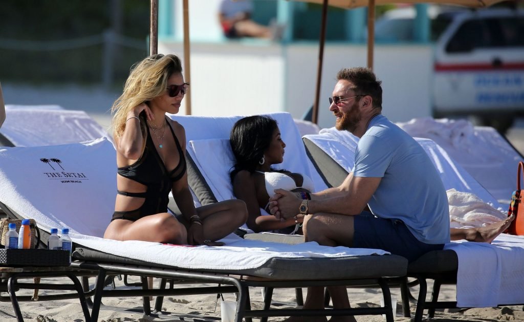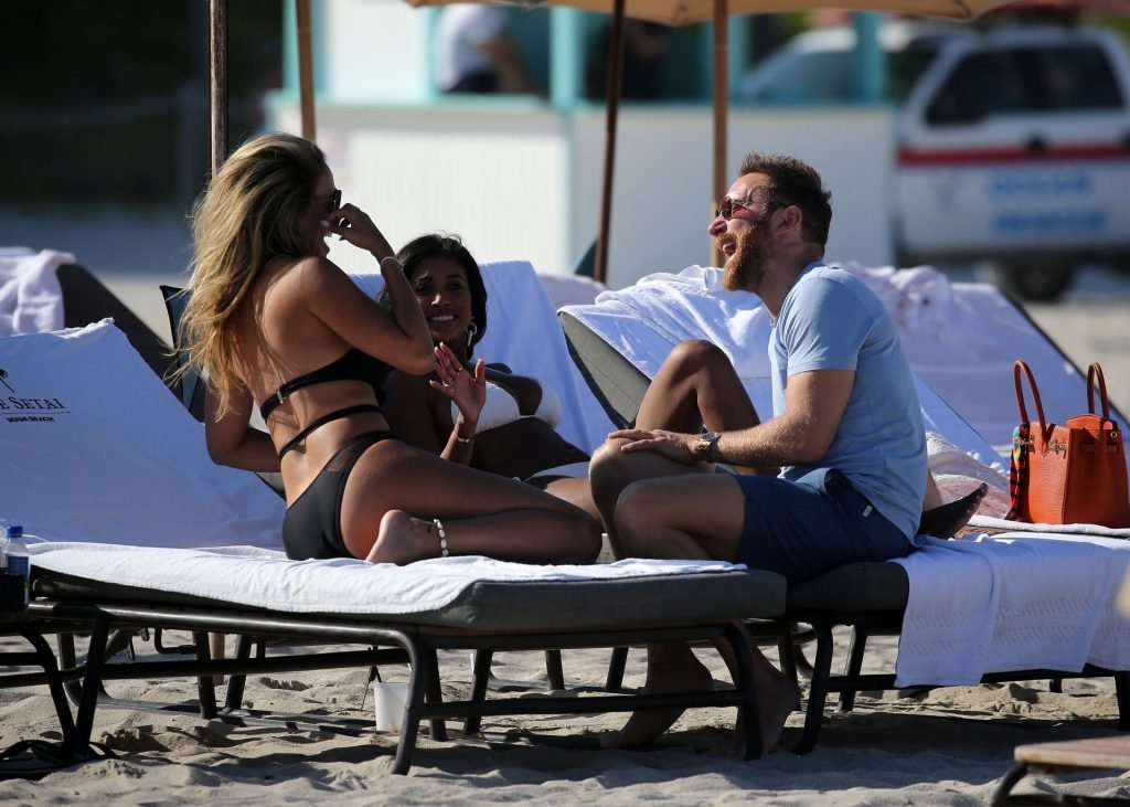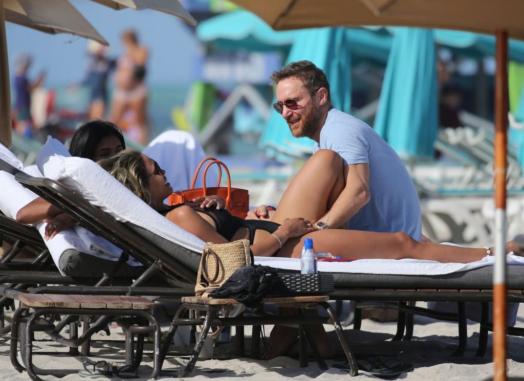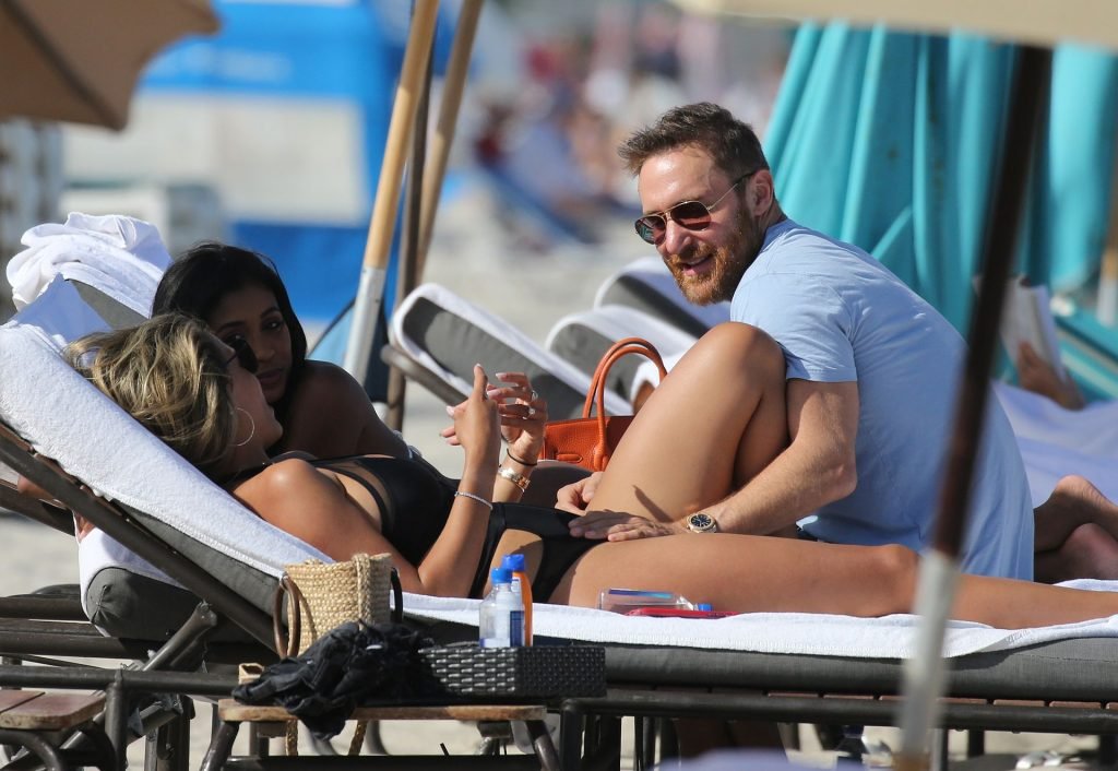 Всемирно известный диджей Дэвид Гетта не может оторвать руки от своей девушки Джессики Ледон на пляже в Майами, 30.03.2019.