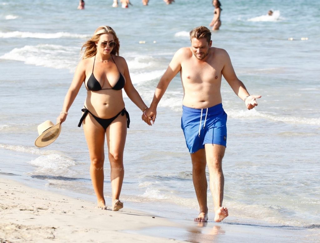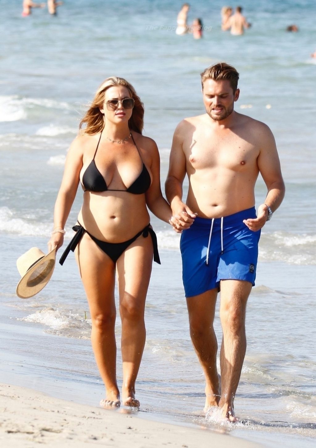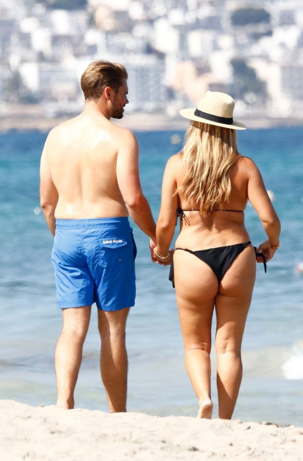 Пара из немецкого телешоу «Холостяк» Джессика Пашка и её парень Йоханнес Халлер выглядят влюблёнными, наслаждаясь прогулкой по пляжу на Ибице, 07/03/2021.