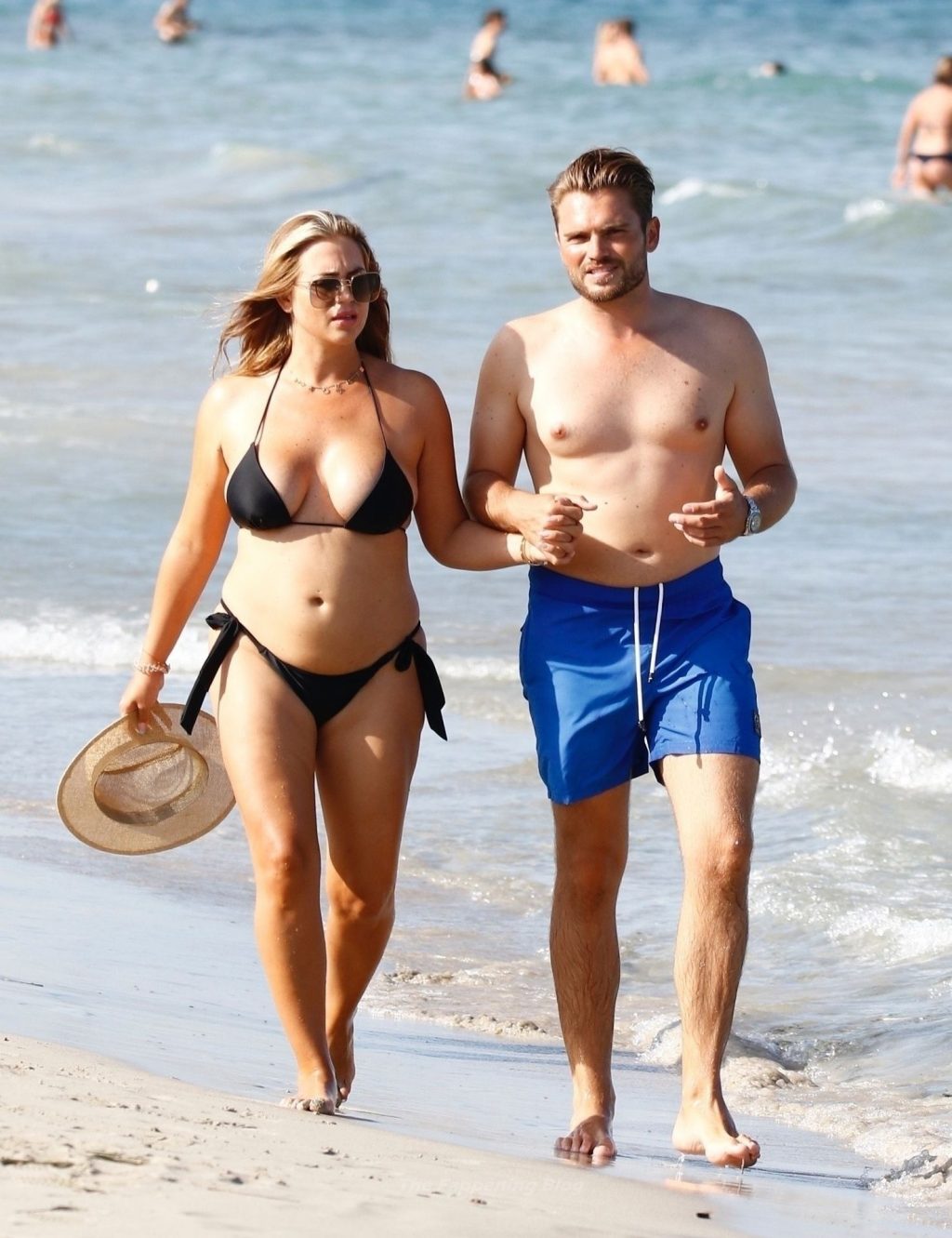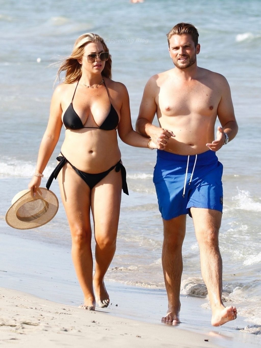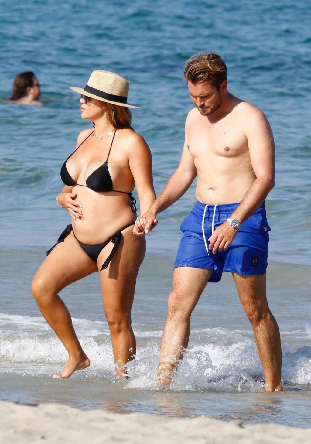 Пара из немецкого телешоу «Холостяк» Джессика Пашка и её парень Йоханнес Халлер выглядят влюблёнными, наслаждаясь прогулкой по пляжу на Ибице, 07/03/2021.