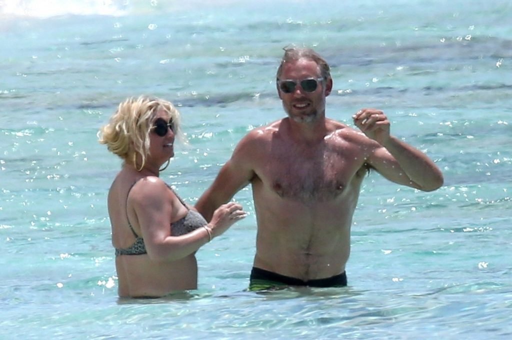 Джессика Энн Симпсон и её муж Эрик Джонсон наслаждаются днем на пляже на Багамах со своим другом, 27.04.2018. 37-летняя Джессика загорает в леопардовом двухпредметном купальнике, в то время как Эрик демонстрирует свою подтянутую фигуру, занимаясь паддлбордингом.