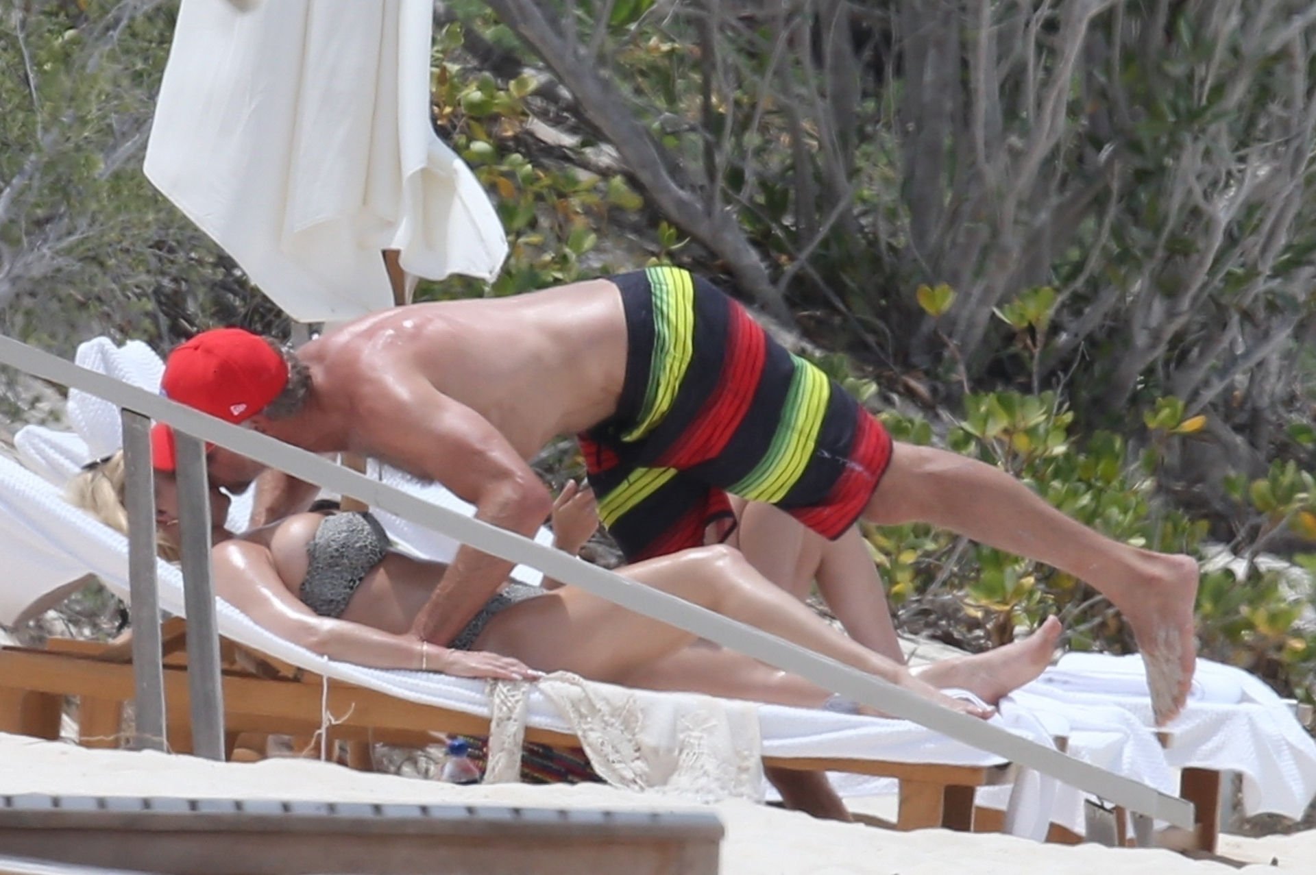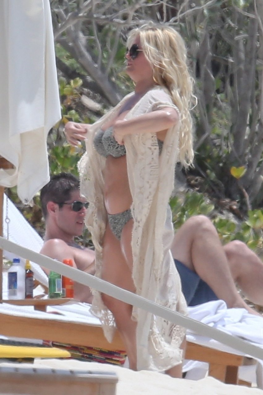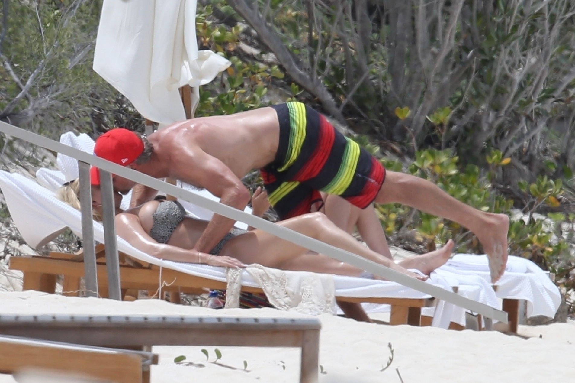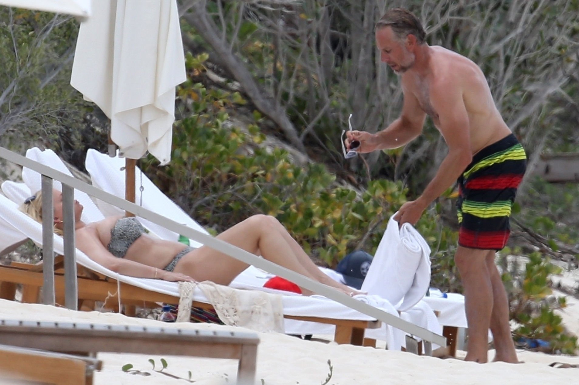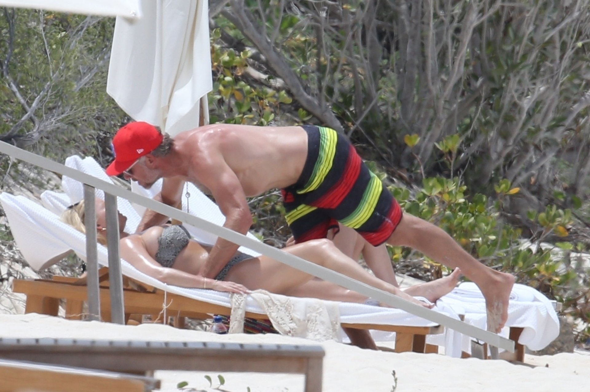 Джессика Энн Симпсон и её муж Эрик Джонсон наслаждаются днем на пляже на Багамах со своим другом, 27.04.2018. 37-летняя Джессика загорает в леопардовом двухпредметном купальнике, в то время как Эрик демонстрирует свою подтянутую фигуру, занимаясь паддлбордингом.