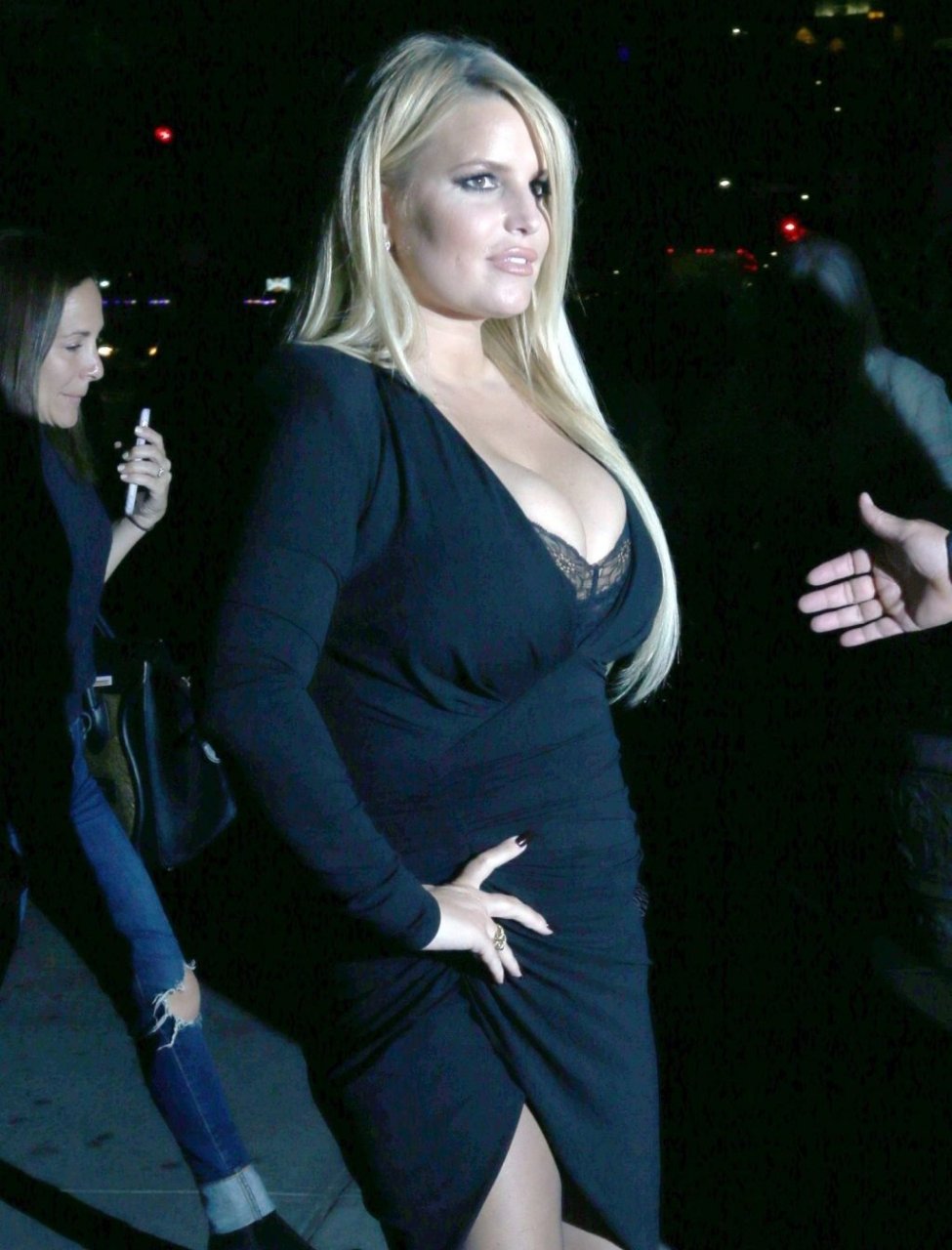Американская актриса/певица/телеведущая Джессика Симпсон демонстрирует пышные формы в платье с глубоким вырезом, звезда показывает недавнее похудение в Нью-Йорке, 25.09.2019. У неё случился небольшой казус с нарядом в откровенном платье по пути обратно в отель после ужина
