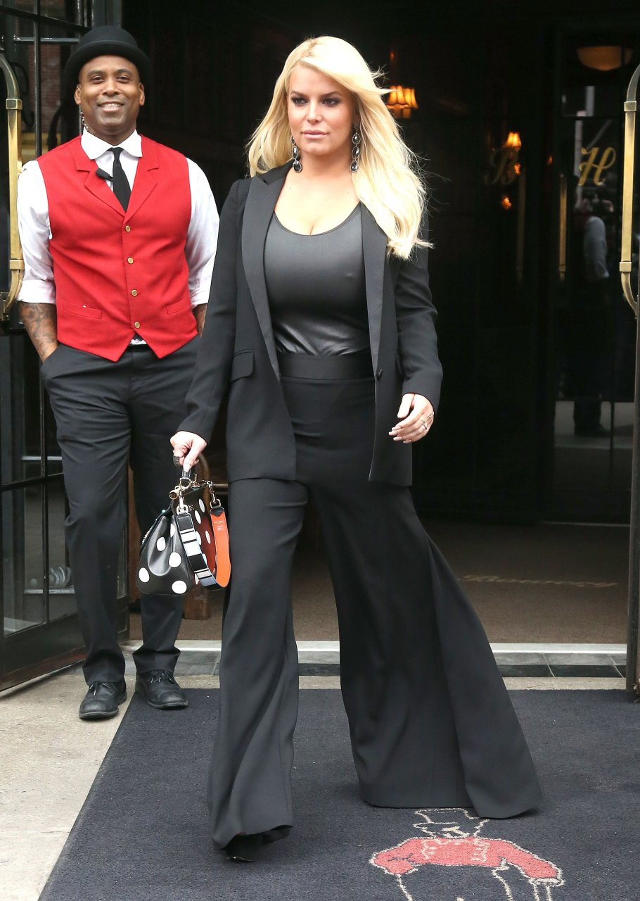 Без бюстгальтера Джессика Симпсон в черном топе в Нью-Йорке, 20.04.17. Джессика Симпсон — американская певица и автор песен, актриса, персонаж реалити-шоу и дизайнер моды. Возраст — 36 лет (10 июля 1980).