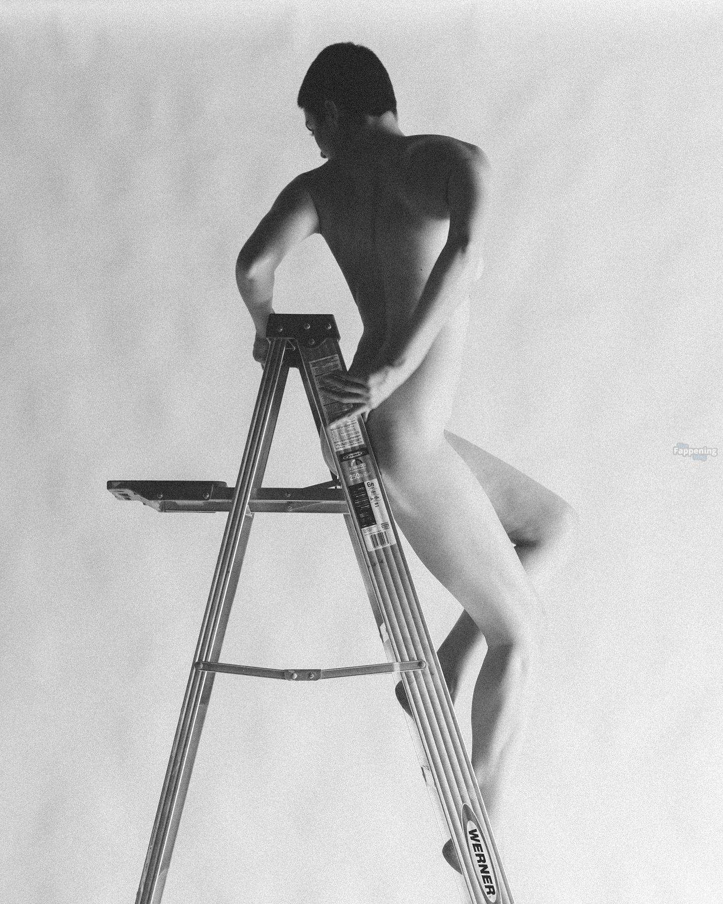 Американская модель Джессика Уолл демонстрирует свою голую попу на черно-белых фотографиях ниже.