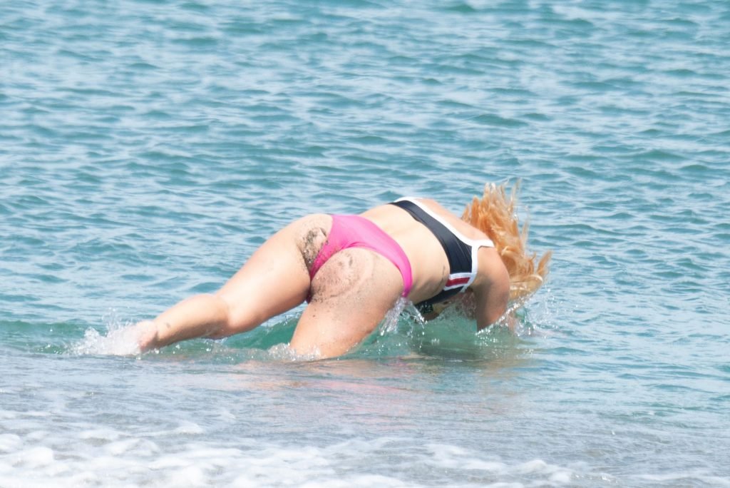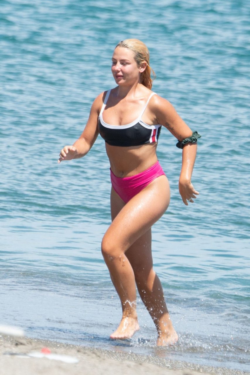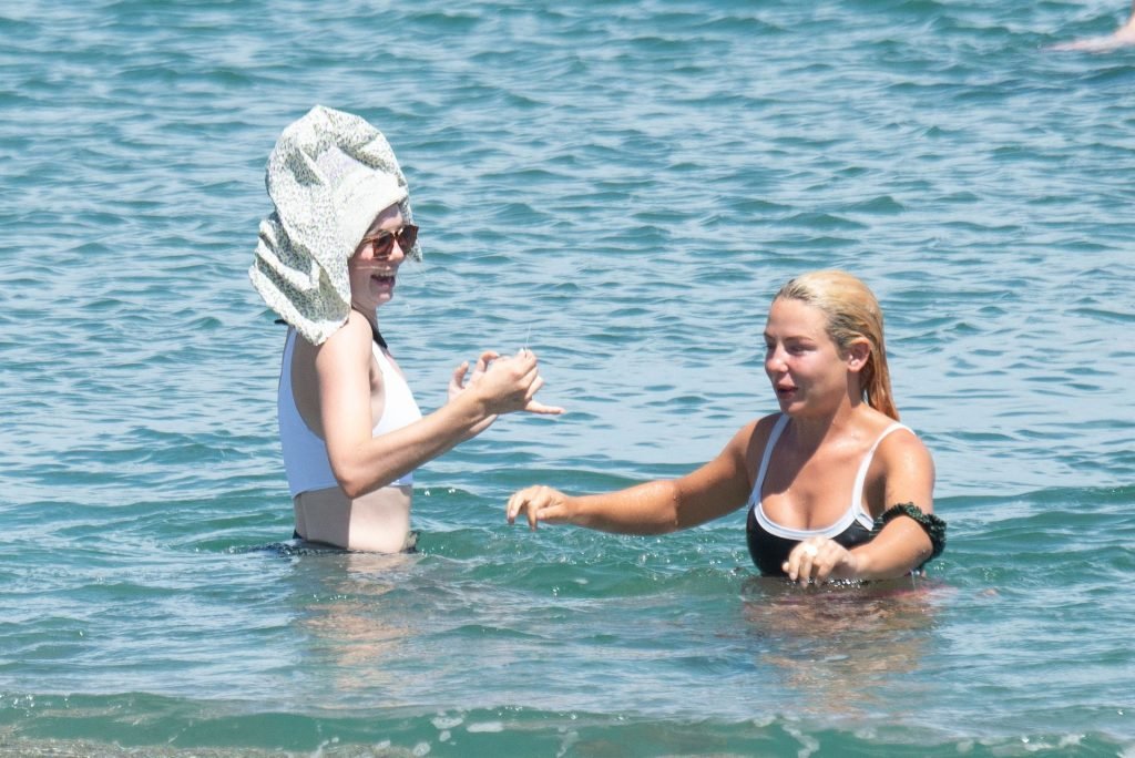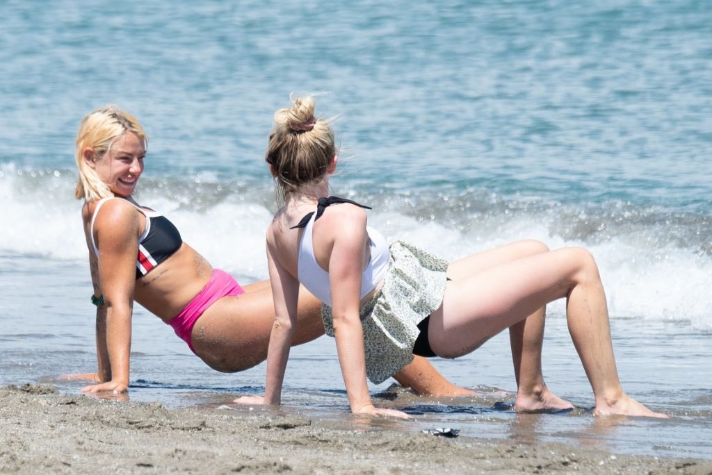 Джессика Энн Вудли и Джорджия Тоффоло весело проводят день на пляже в Сотогранде, Кадис, 26.07.2019.