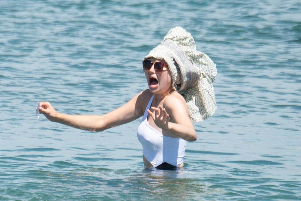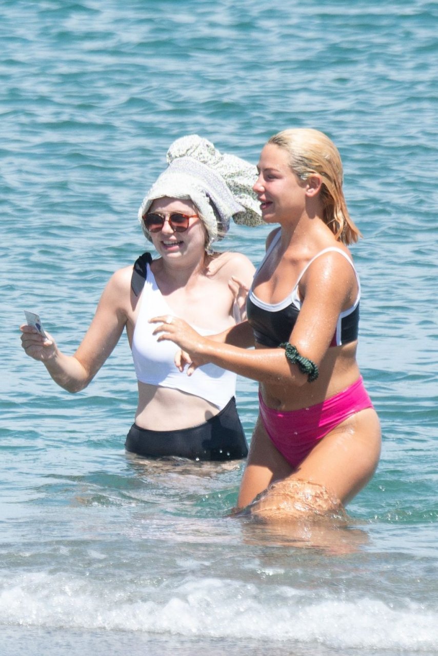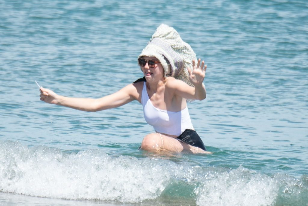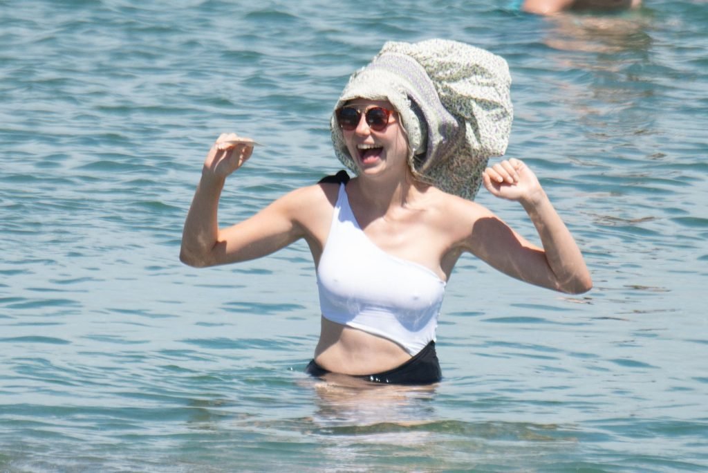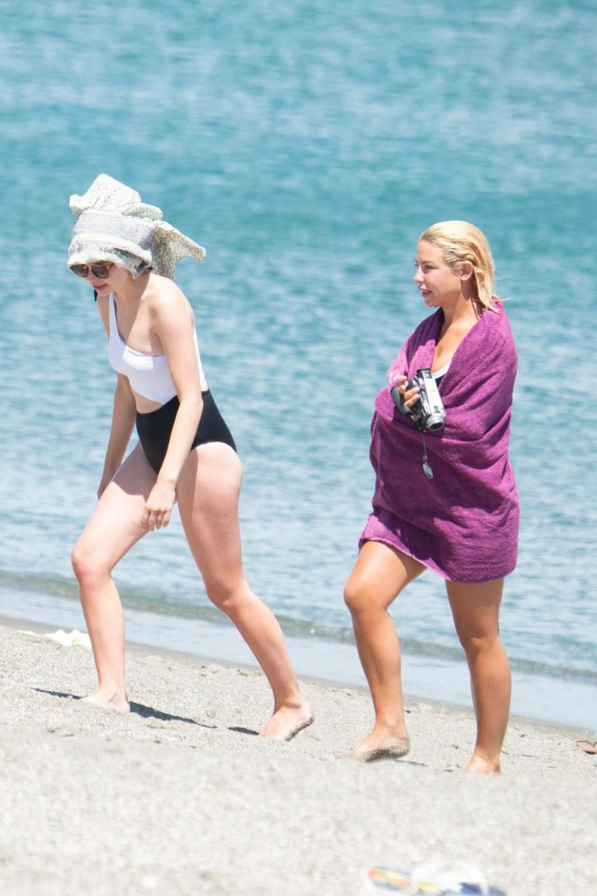 Джессика Энн Вудли и Джорджия Тоффоло весело проводят день на пляже в Сотогранде, Кадис, 26.07.2019.