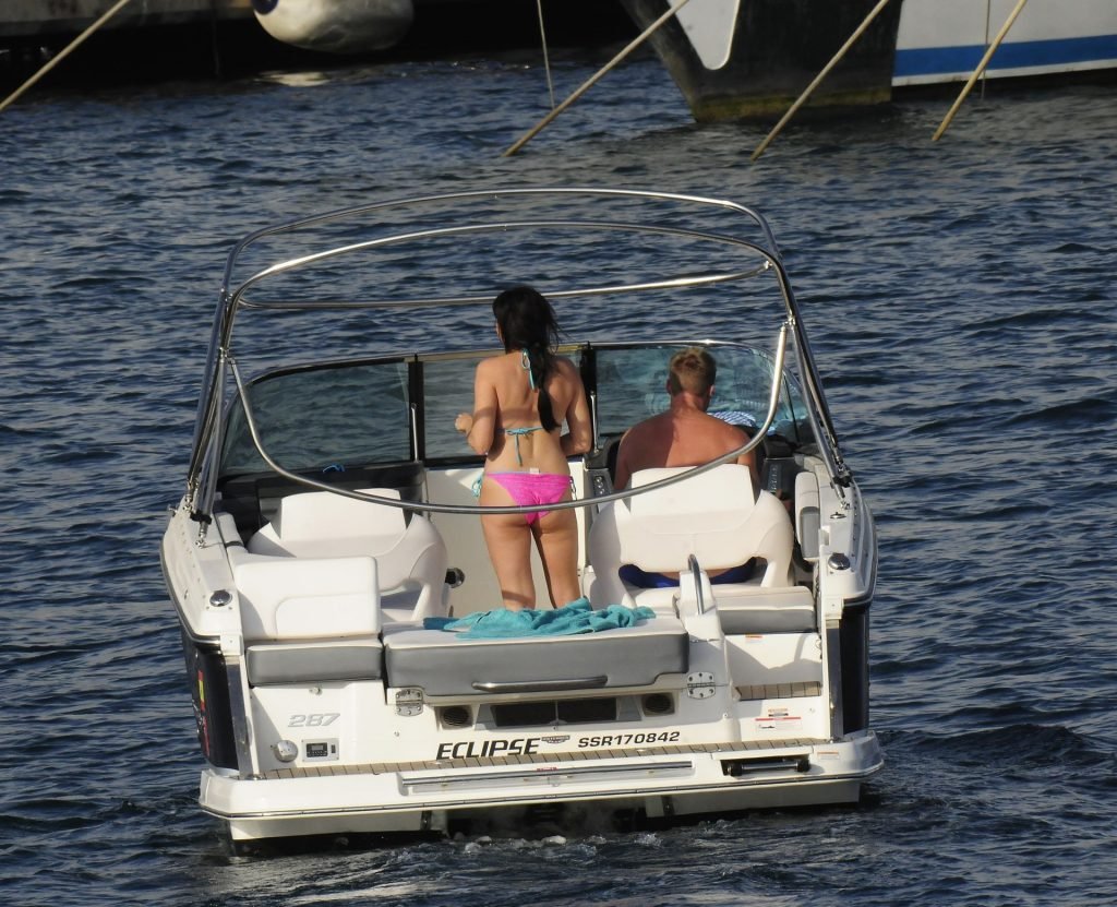 Звезда шоу TOWIE Джессика Райт отправляется на яхту со своим парнем Уильямом Ли-Кемпом во время отпуска на Майорке, Испания, 17.09.2019. Джесс была замечена в розовом бикини на лодке со своим возлюбленным.