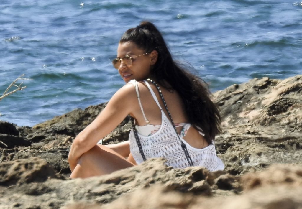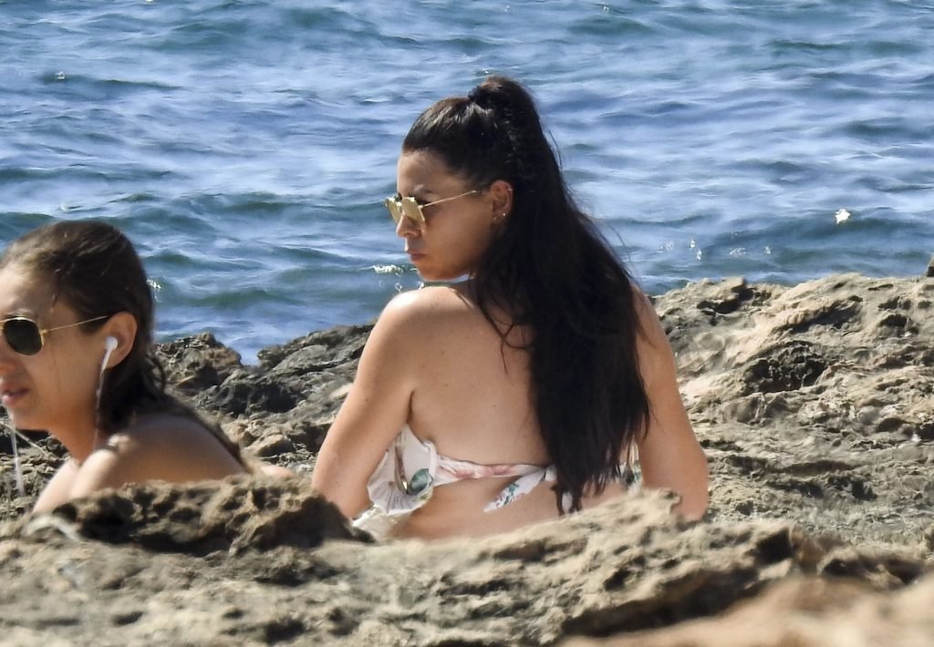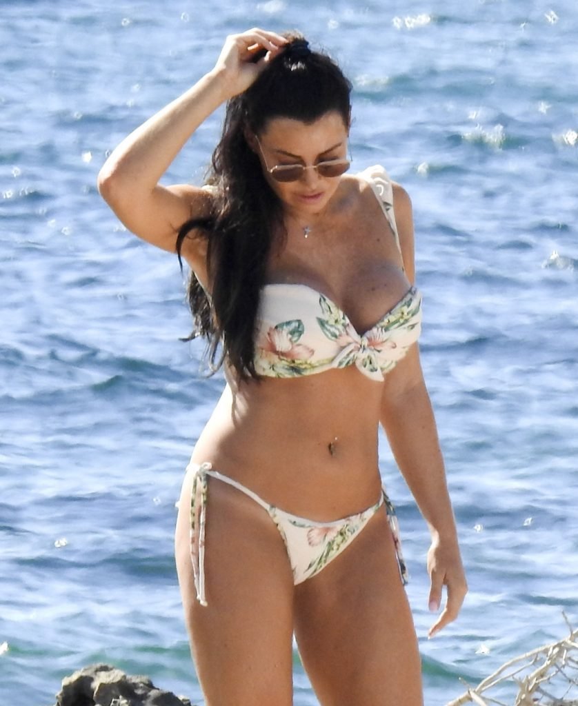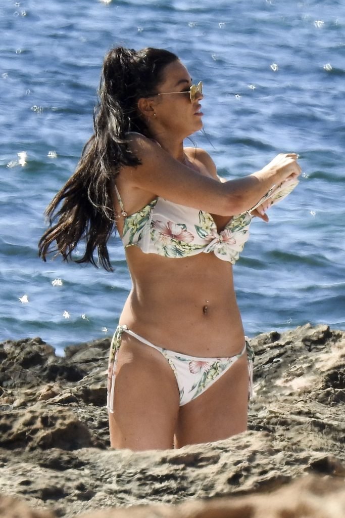 Джессика Райт демонстрирует свою загорелую фигуру пляжного тела и выглядела сногсшибательно в цветочном бикини, проводя день на пляже во время отпуска на Ибице, 07/02/2018. Сексуальная звезда TOWIE, которая недавно рассталась с бойфрендом из Strictly Come Dancing Джованни Пернице, была в компании подруги, и они вместе отдыхали на каменистых пляжах, находя что-то забавное в своих телефонах.