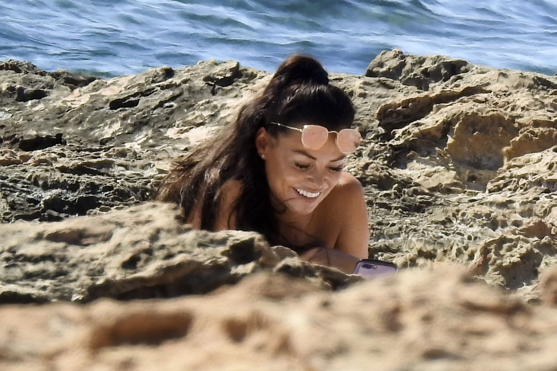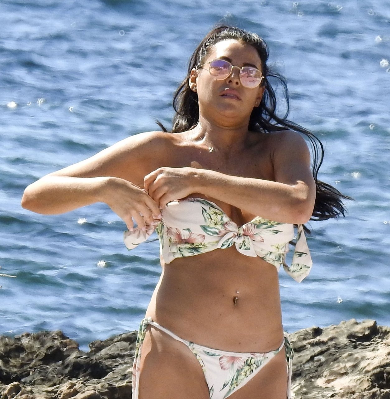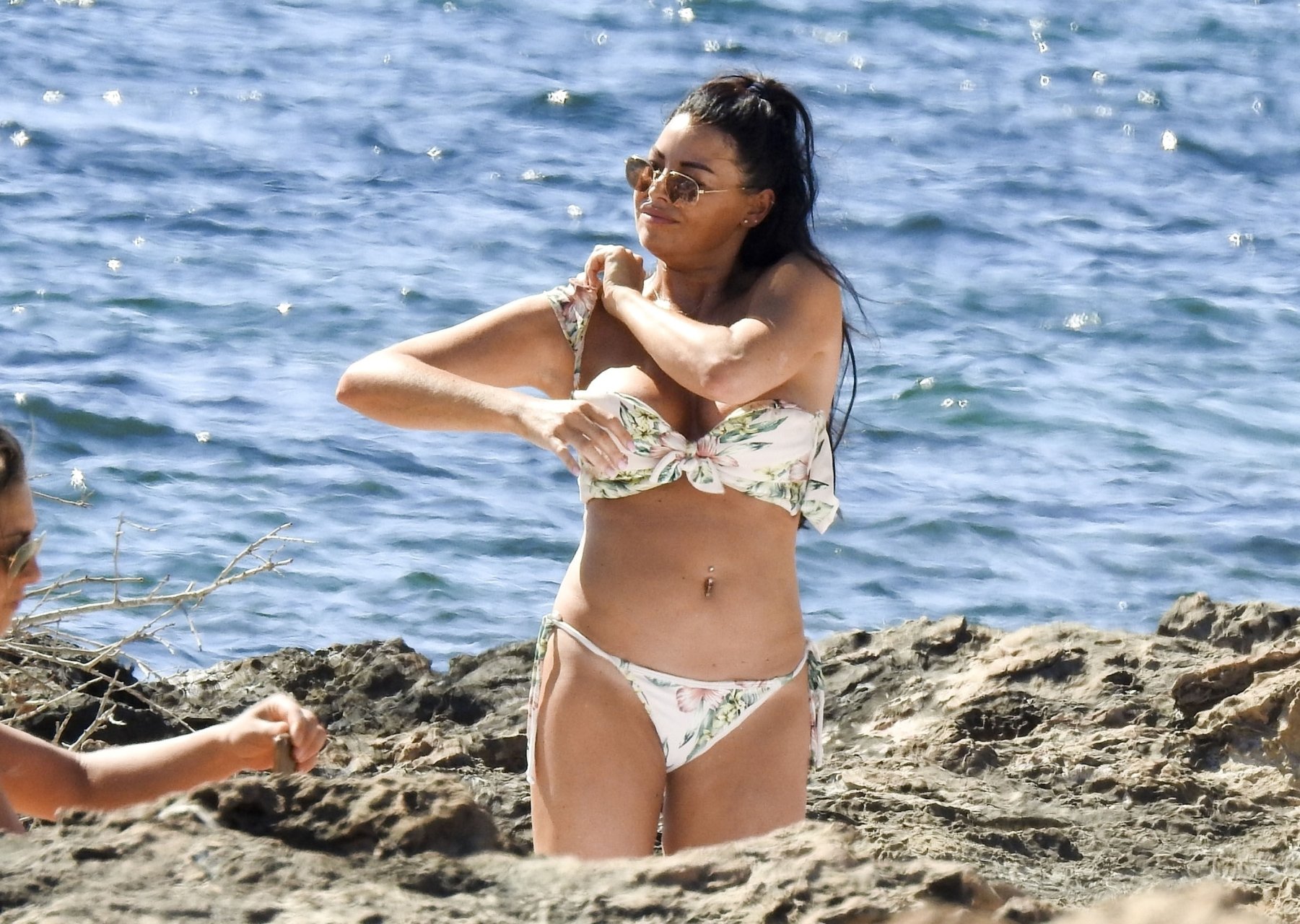 Джессика Райт демонстрирует свою загорелую фигуру пляжного тела и выглядела сногсшибательно в цветочном бикини, проводя день на пляже во время отпуска на Ибице, 07/02/2018. Сексуальная звезда TOWIE, которая недавно рассталась с бойфрендом из Strictly Come Dancing Джованни Пернице, была в компании подруги, и они вместе отдыхали на каменистых пляжах, находя что-то забавное в своих телефонах.
