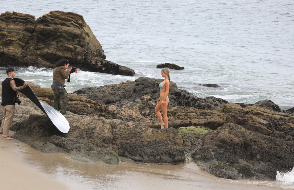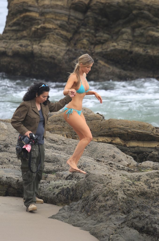 Модель и актриса Джоанна Крупа (39) оставляет свое яркое обручальное кольцо дома, но демонстрирует свое тело в бикини во время фотосессии в День матери в Малибу с Фэй Саду и Малачи Баналес, 13.05.2018.